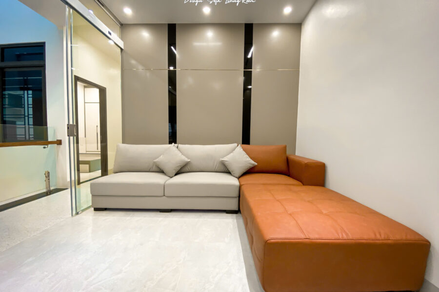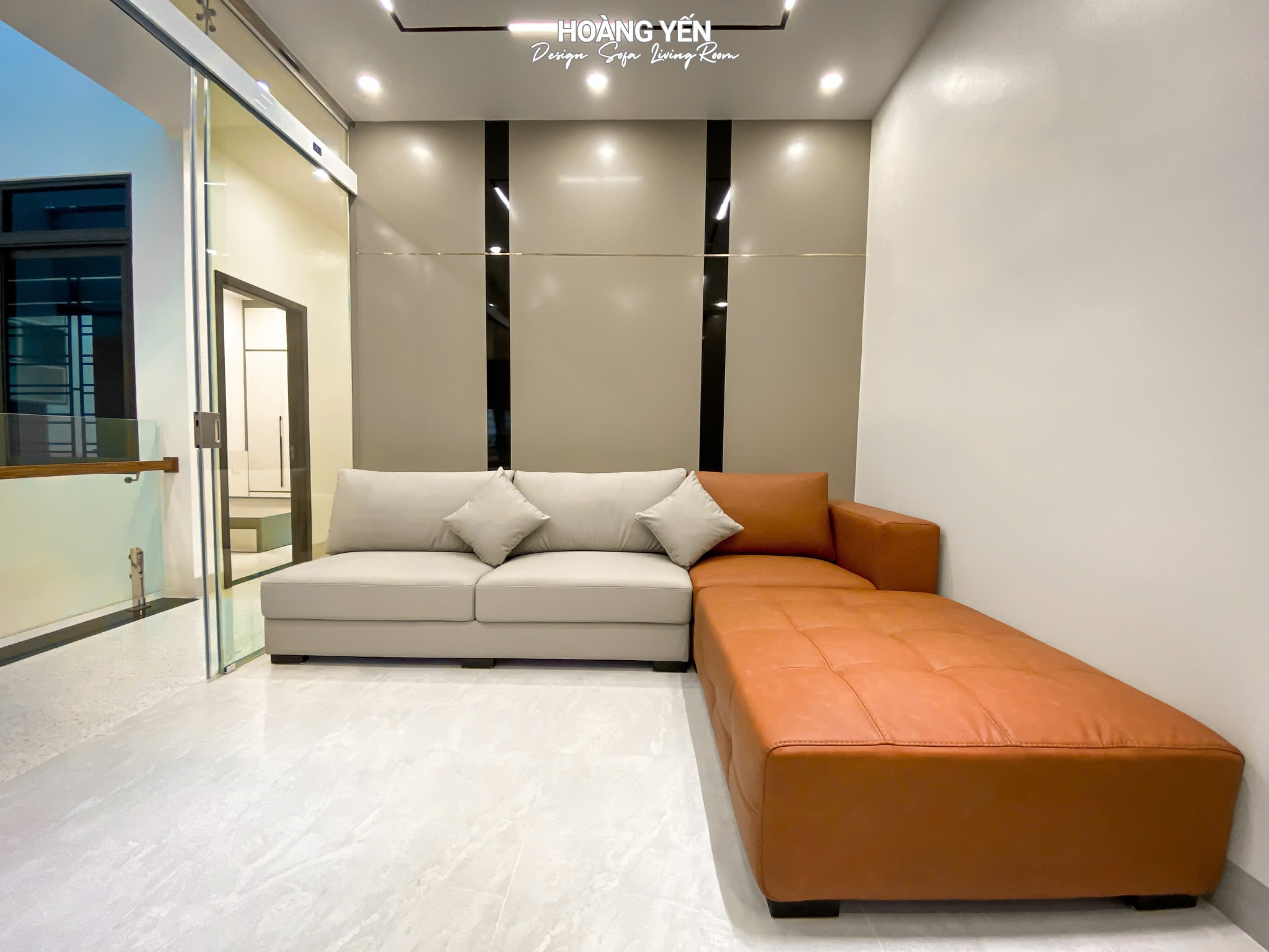Sofa màu kem sáng nhẹ nhàng, thanh lịch, màu cam đất mang đến cảm giác ấm áp.