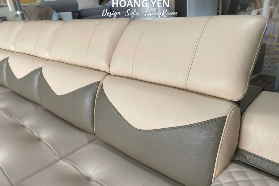 Màu kem giúp sofa trông thoáng, nhẹ và thanh lịch, trong khi xám rêu giúp che vết bẩn tốt, giữ cho sofa bền màu và sạch sẽ lâu.