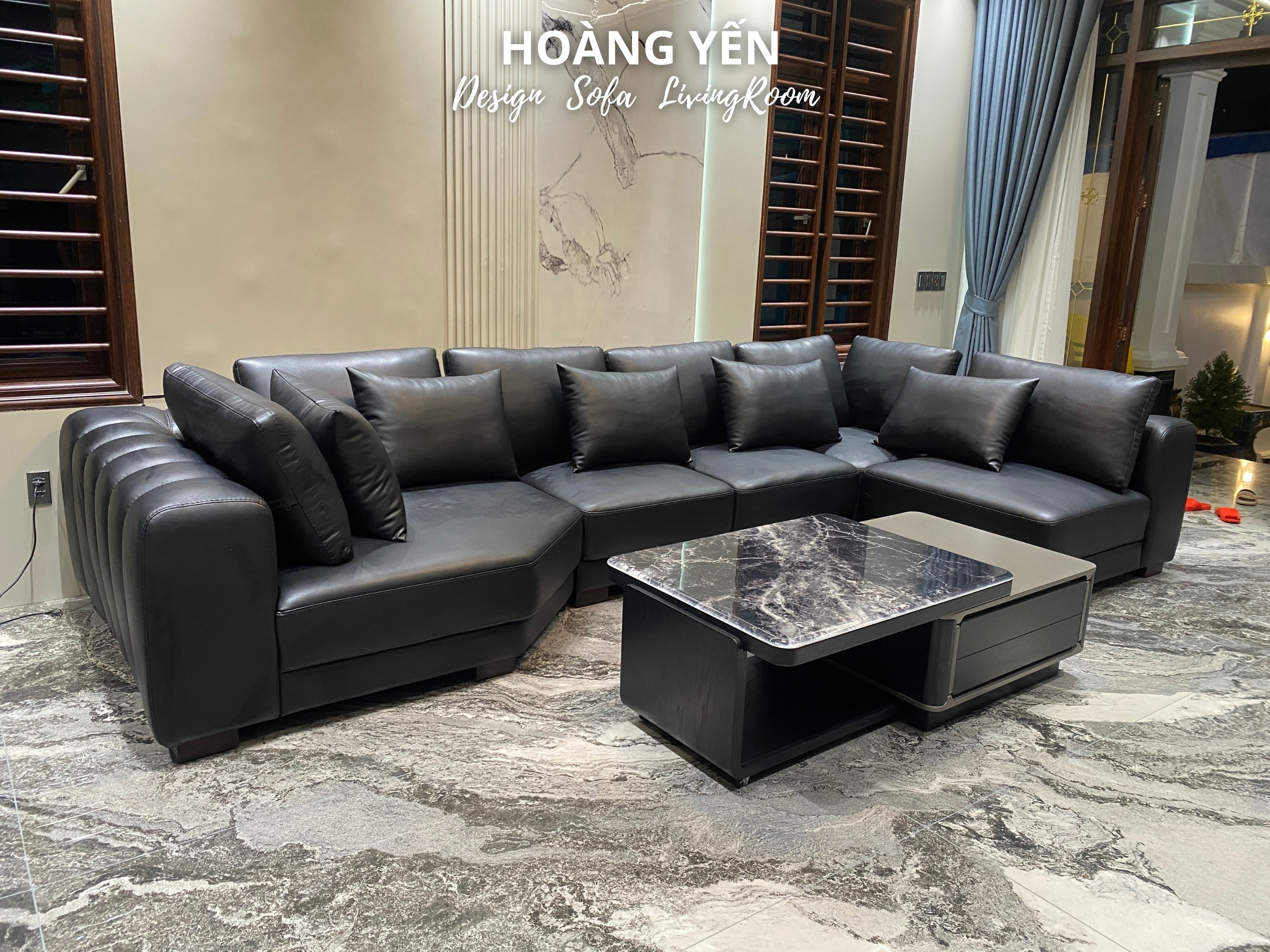 Sofa da đẹp HY430 với kích thước 4.1*2*1.4m, sử dụng da NANO có giá 42.900.000.