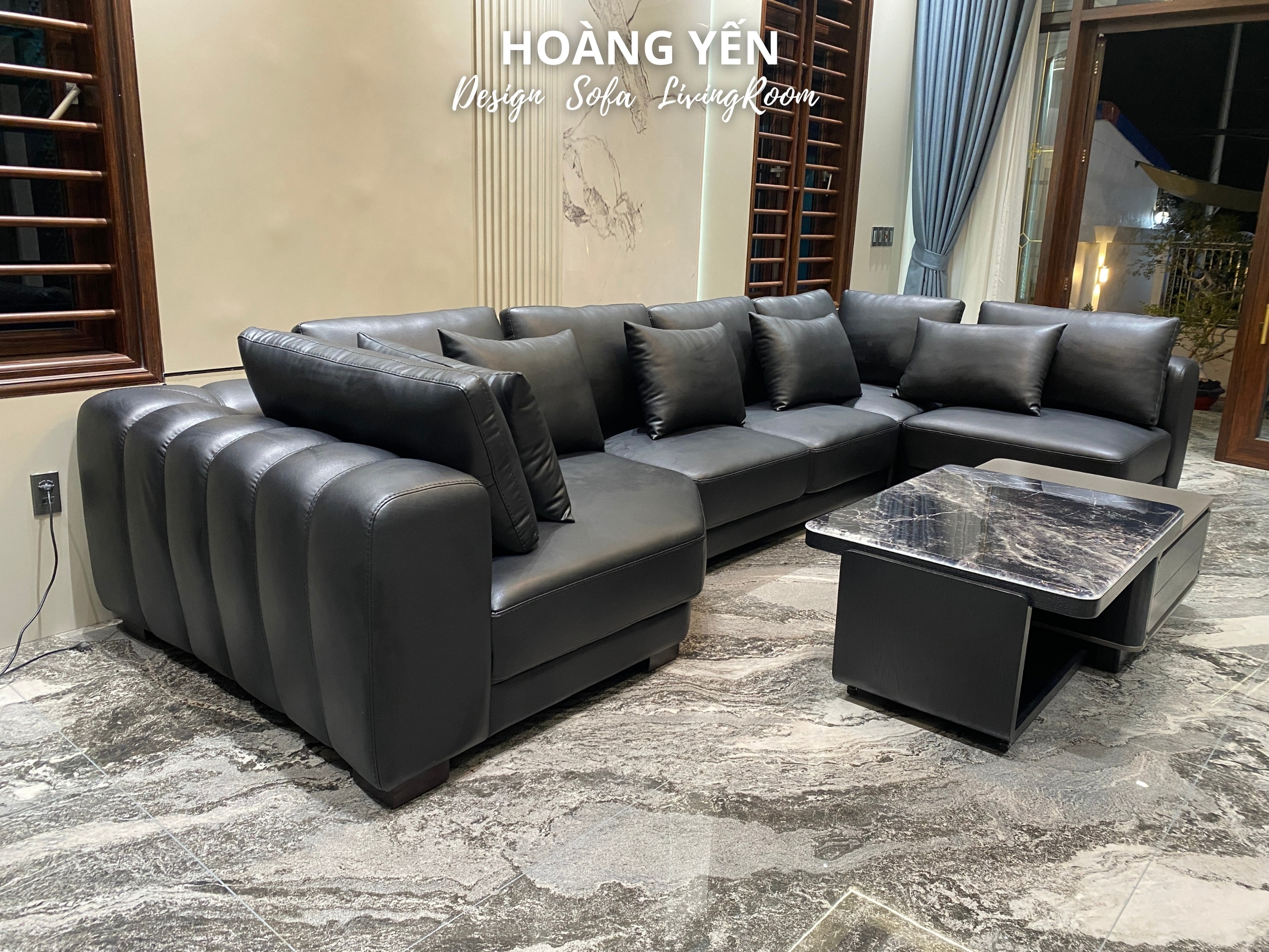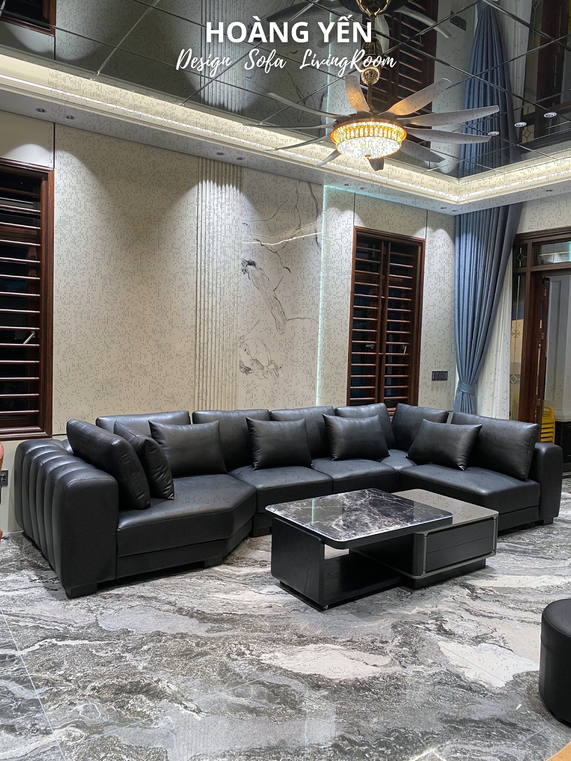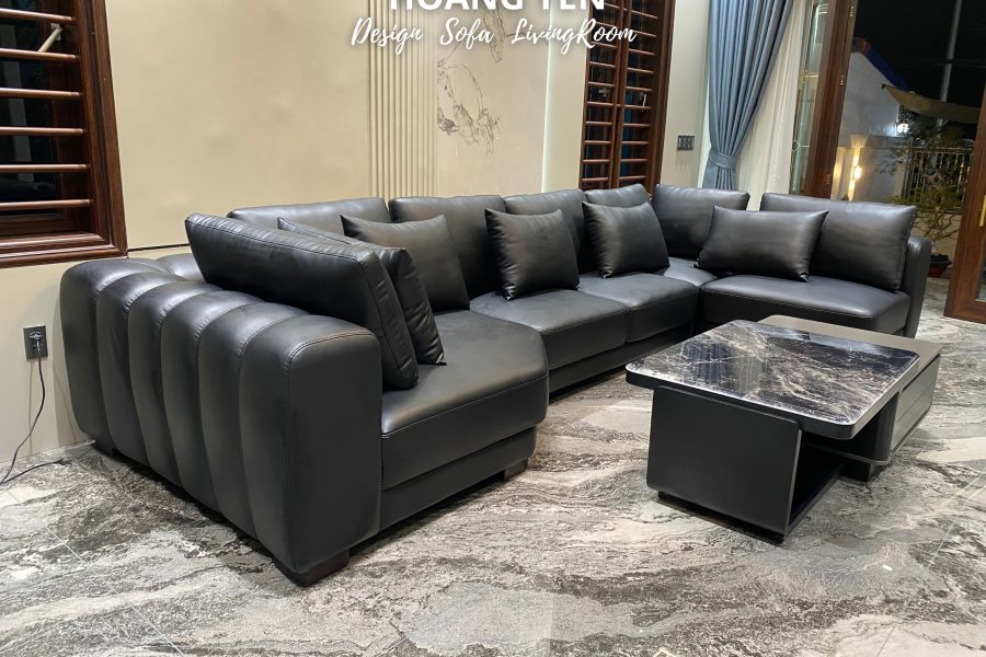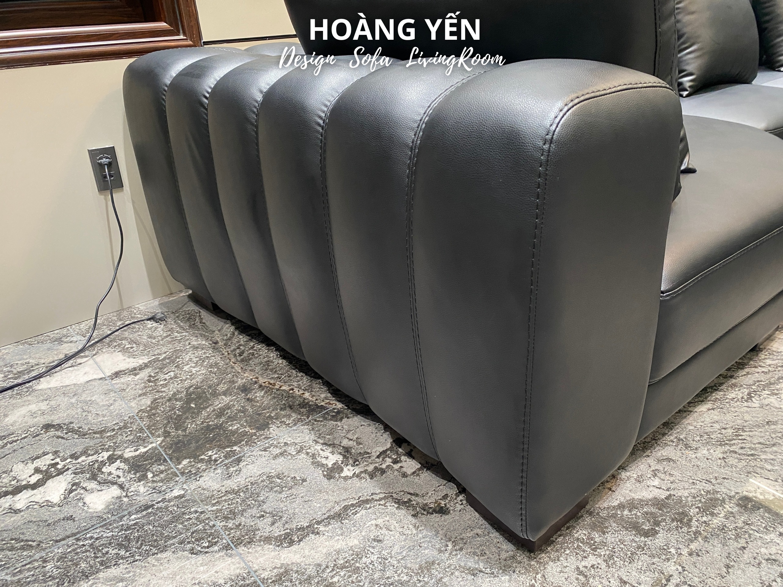 Sofa da góc L SHY430 là sự choáng ngợp trước kích thước khổng lồ và sắc ghi tối huyền bí.