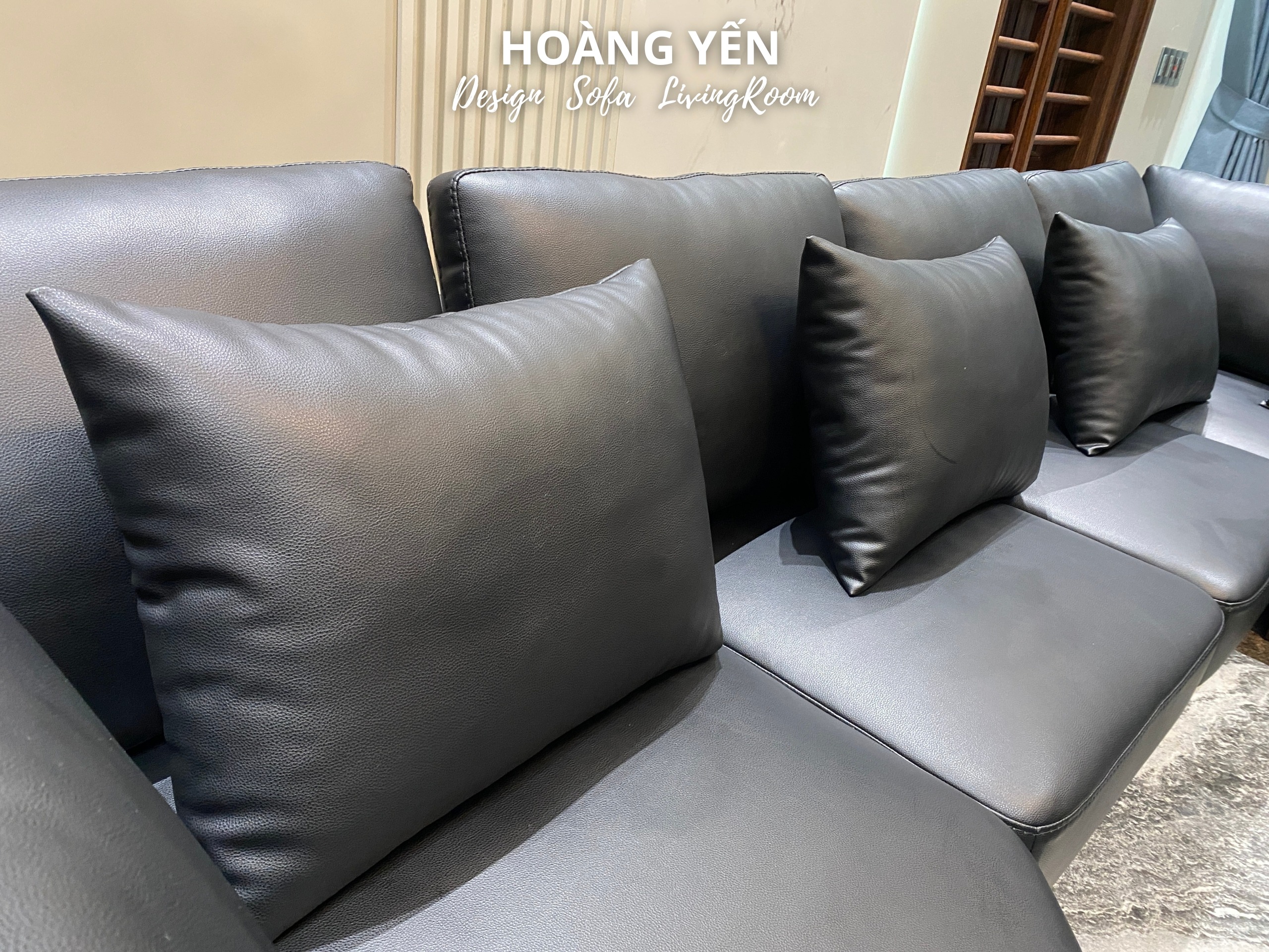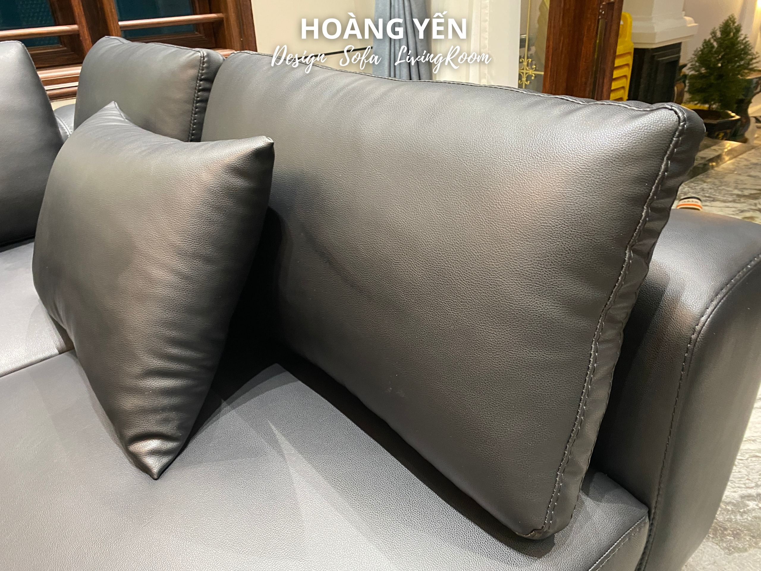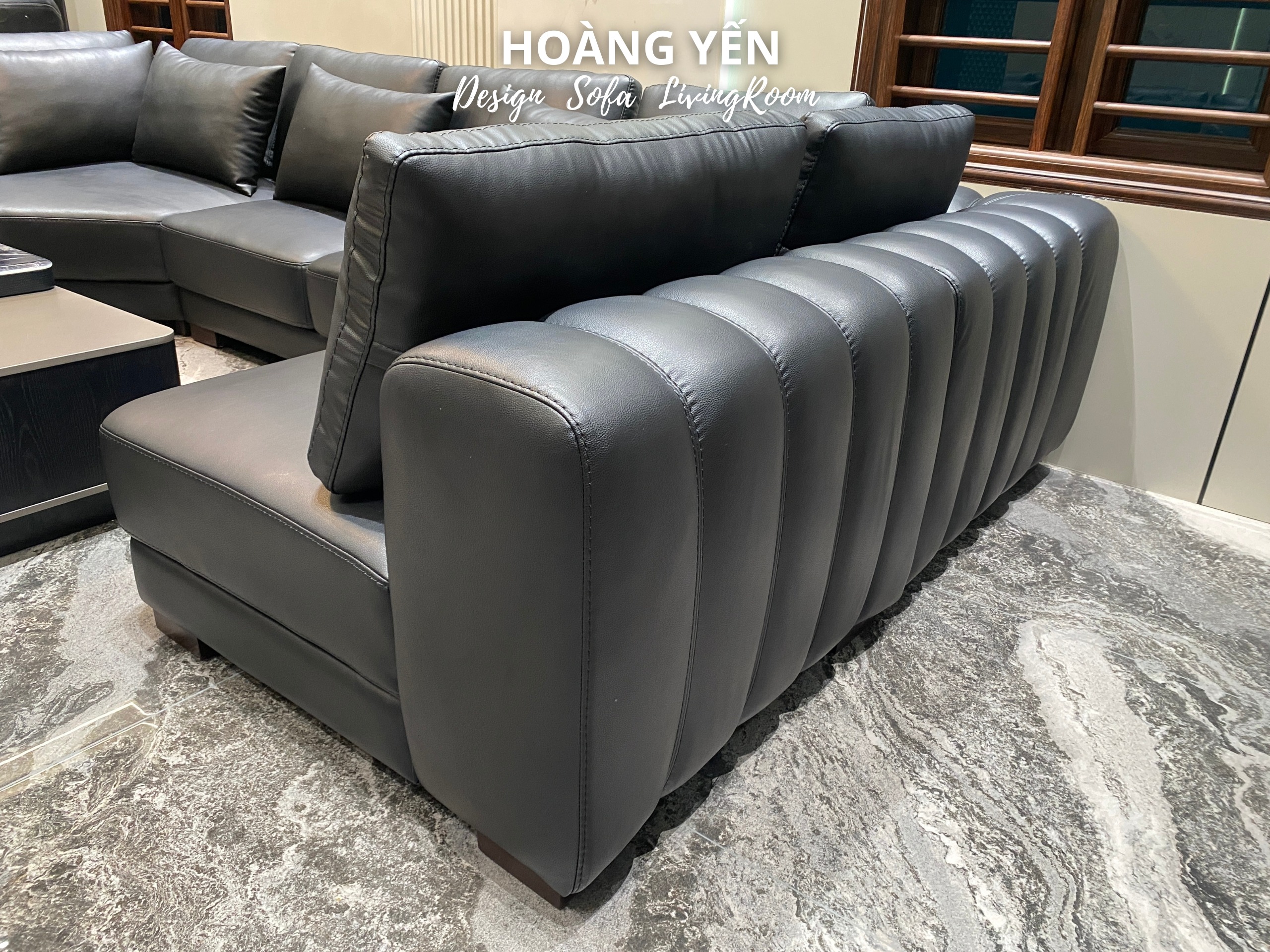 Sofa da góc L SHY430 là sự choáng ngợp trước kích thước khổng lồ và sắc ghi tối huyền bí.
