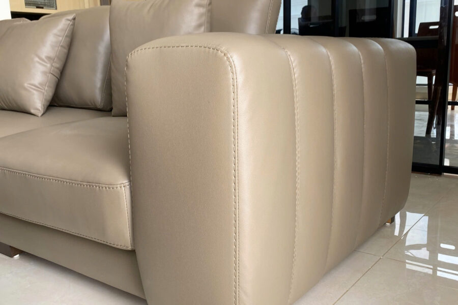 Sofa sử dụng dòng da có khả năng chống bám bụi, chống thấm nước và chống xước nhẹ.