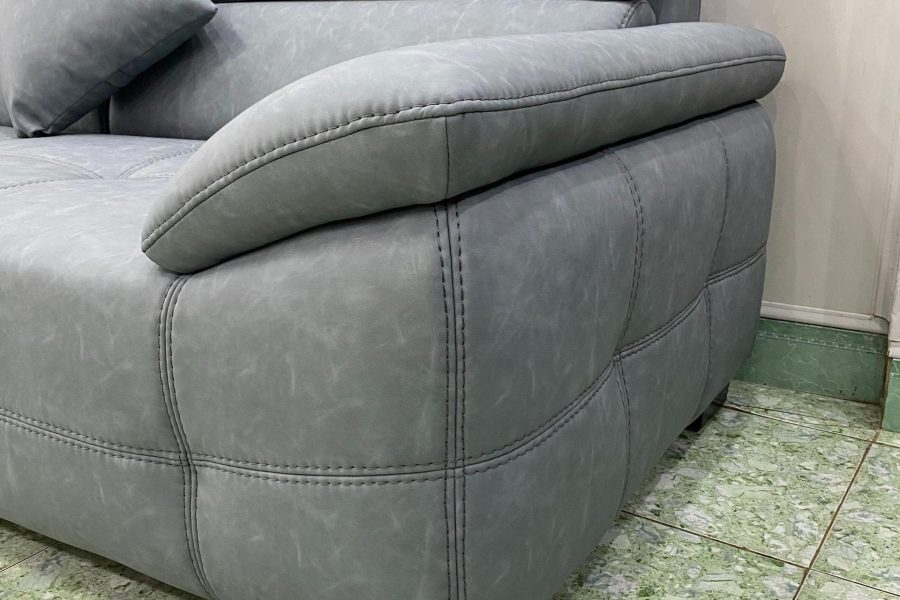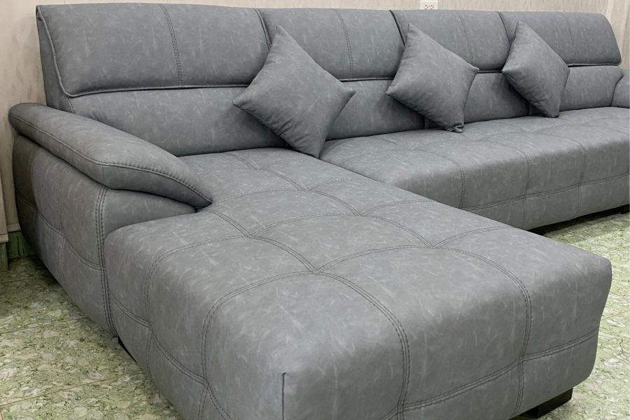 Bề mặt da có hiệu ứng vân loang nhẹ giúp sofa góc lớn trông mềm mại và tự nhiên hơn.