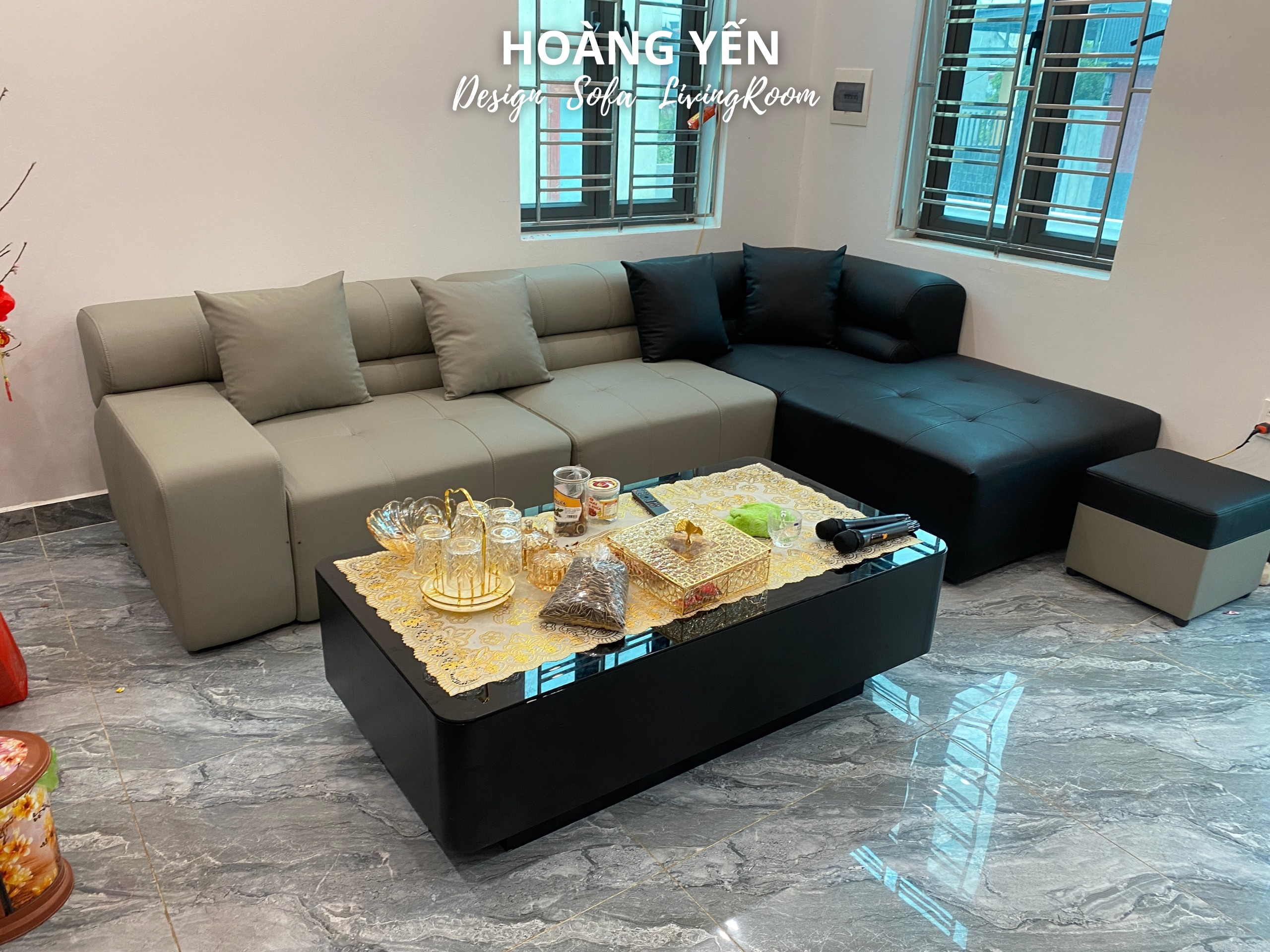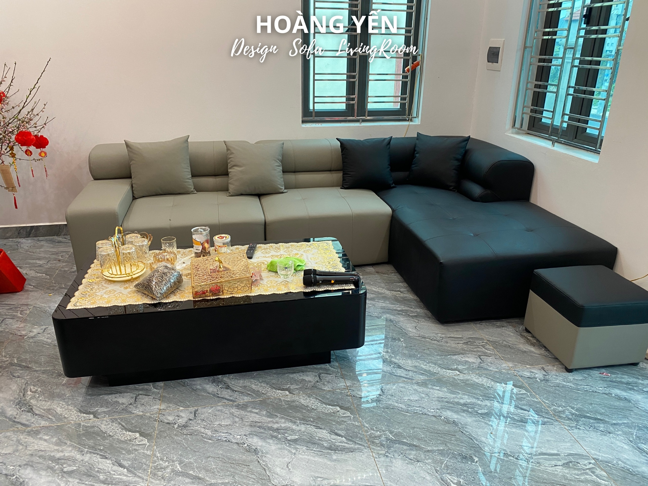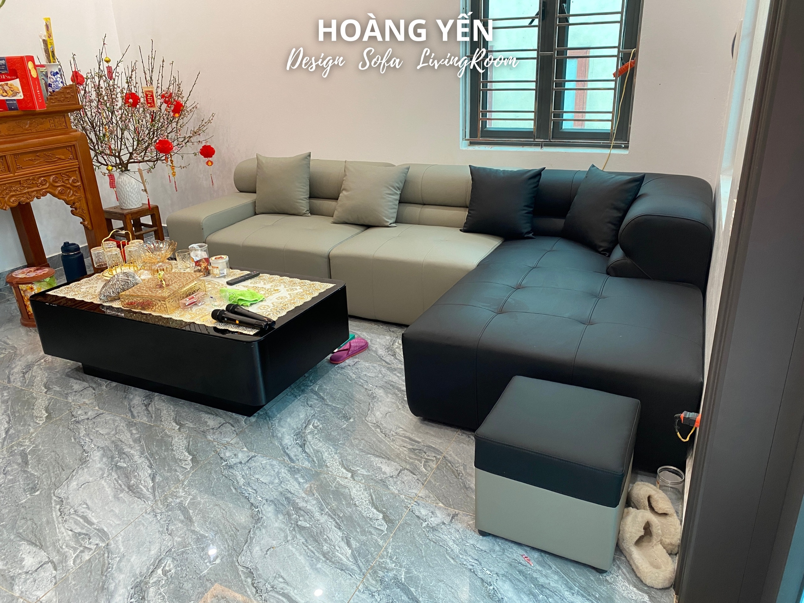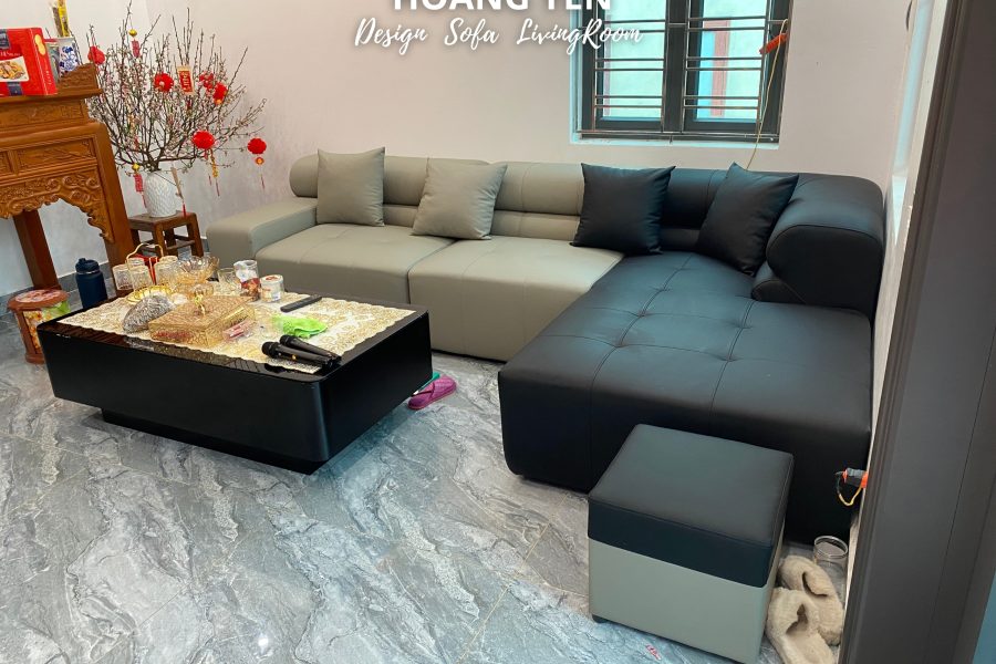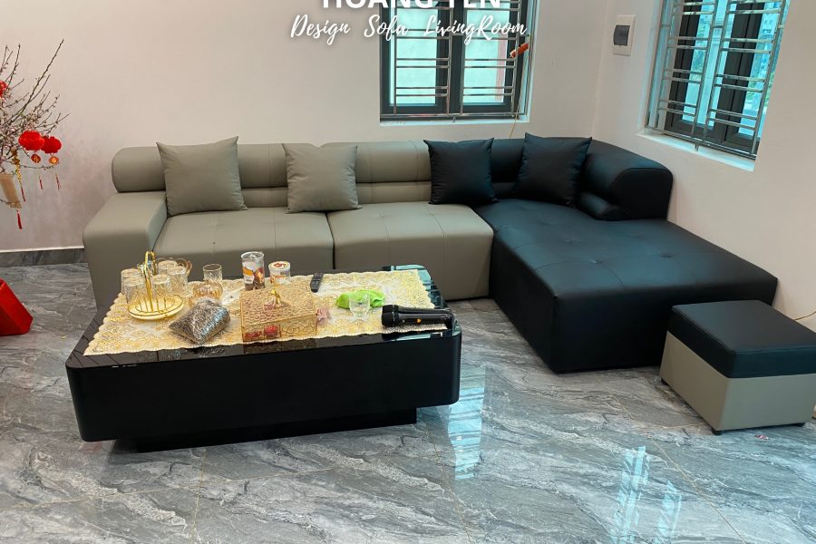 Sofa da góc L SHY462 ghi đen mở rộng không gian sinh hoạt chung cho cả nhà.