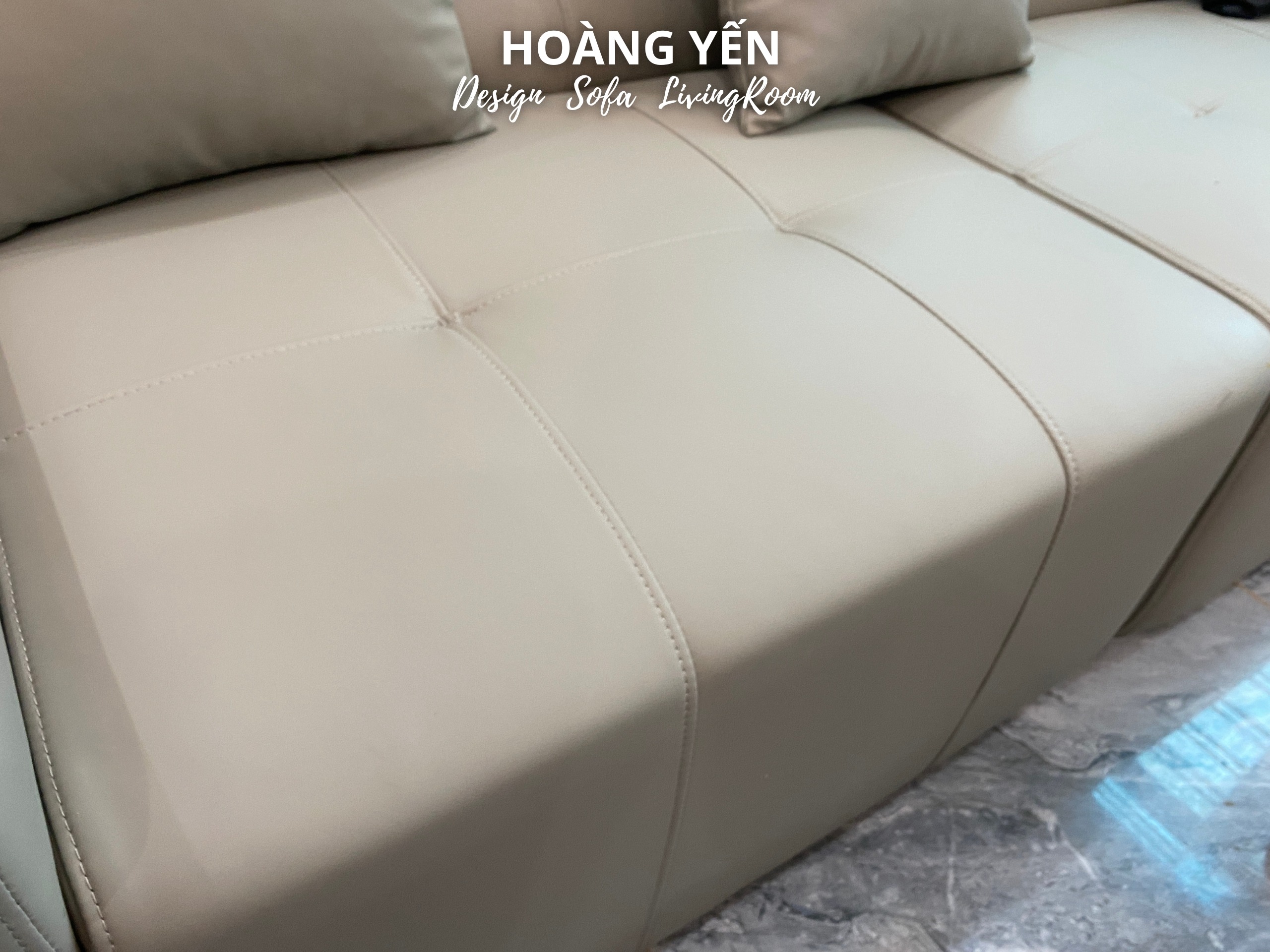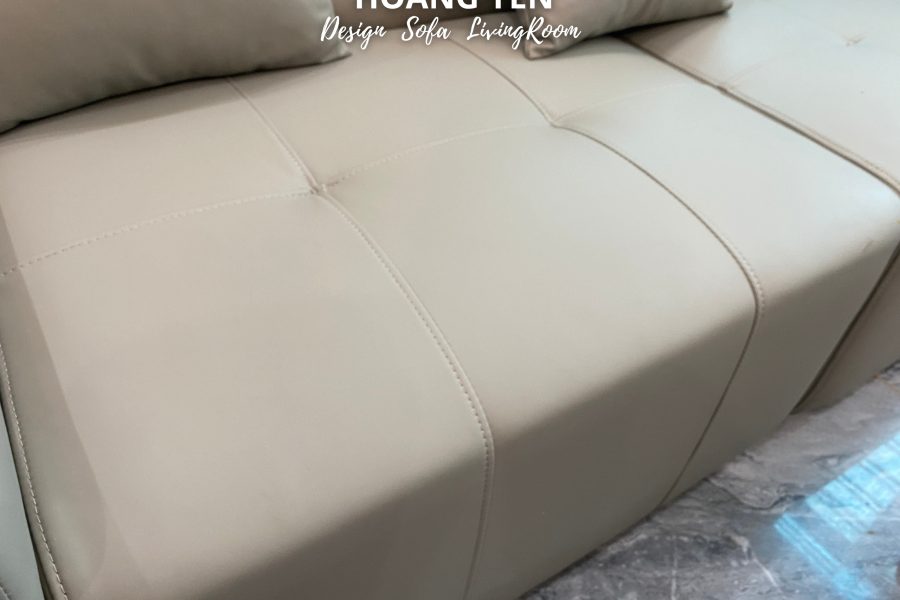 Mặt đệm sofa góc đàn hồi, được may nhấn lõm tạo thành các ô, giúp cố định form da và chống nhăn hiệu quả.