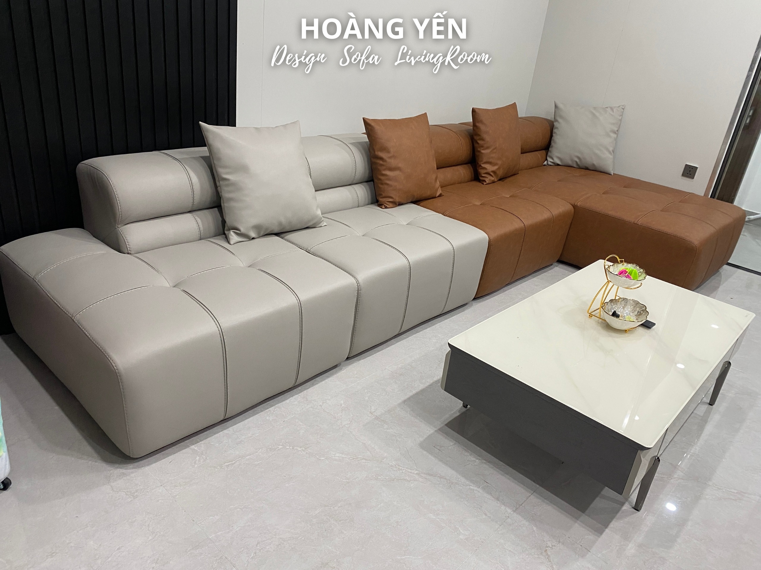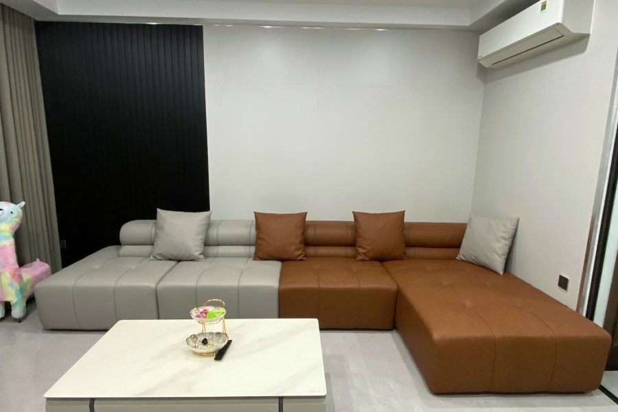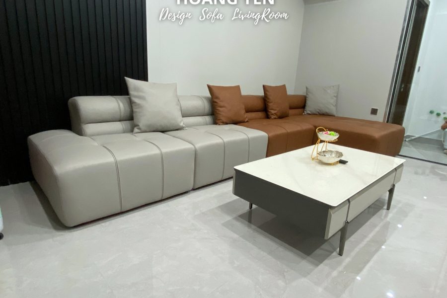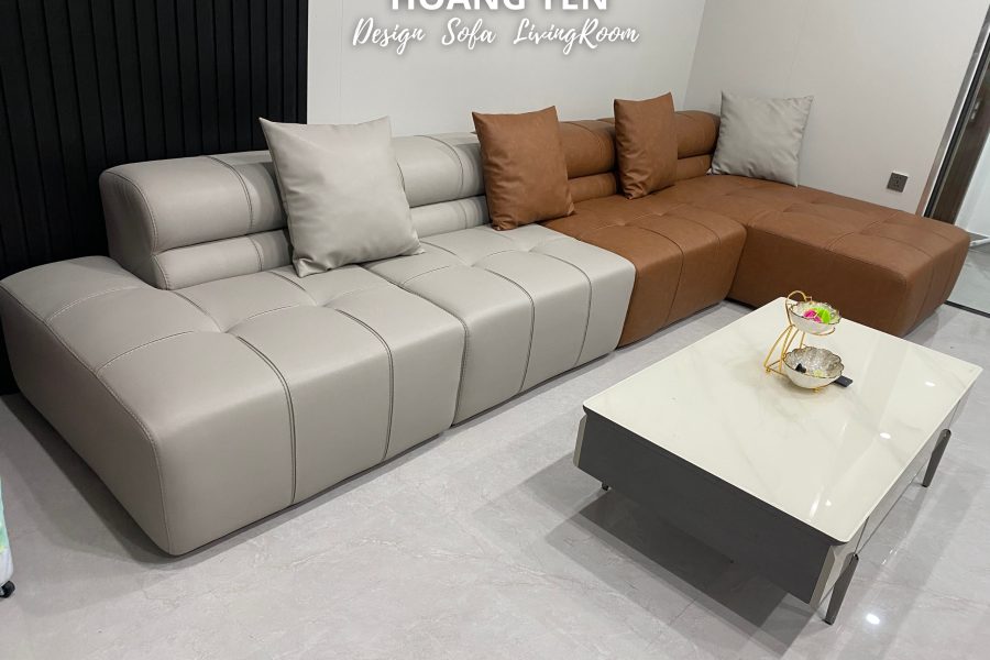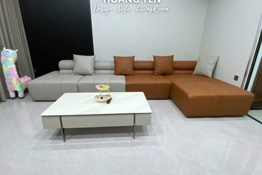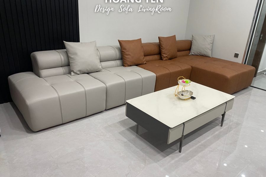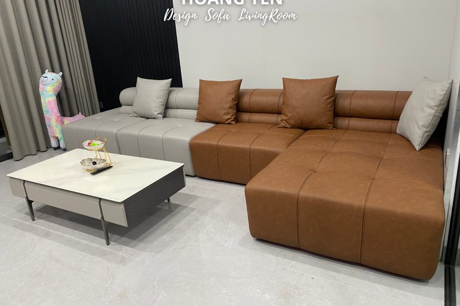 Sofa da góc L kết hợp 2 tone tương phản tạo điểm nhấn phá cách.