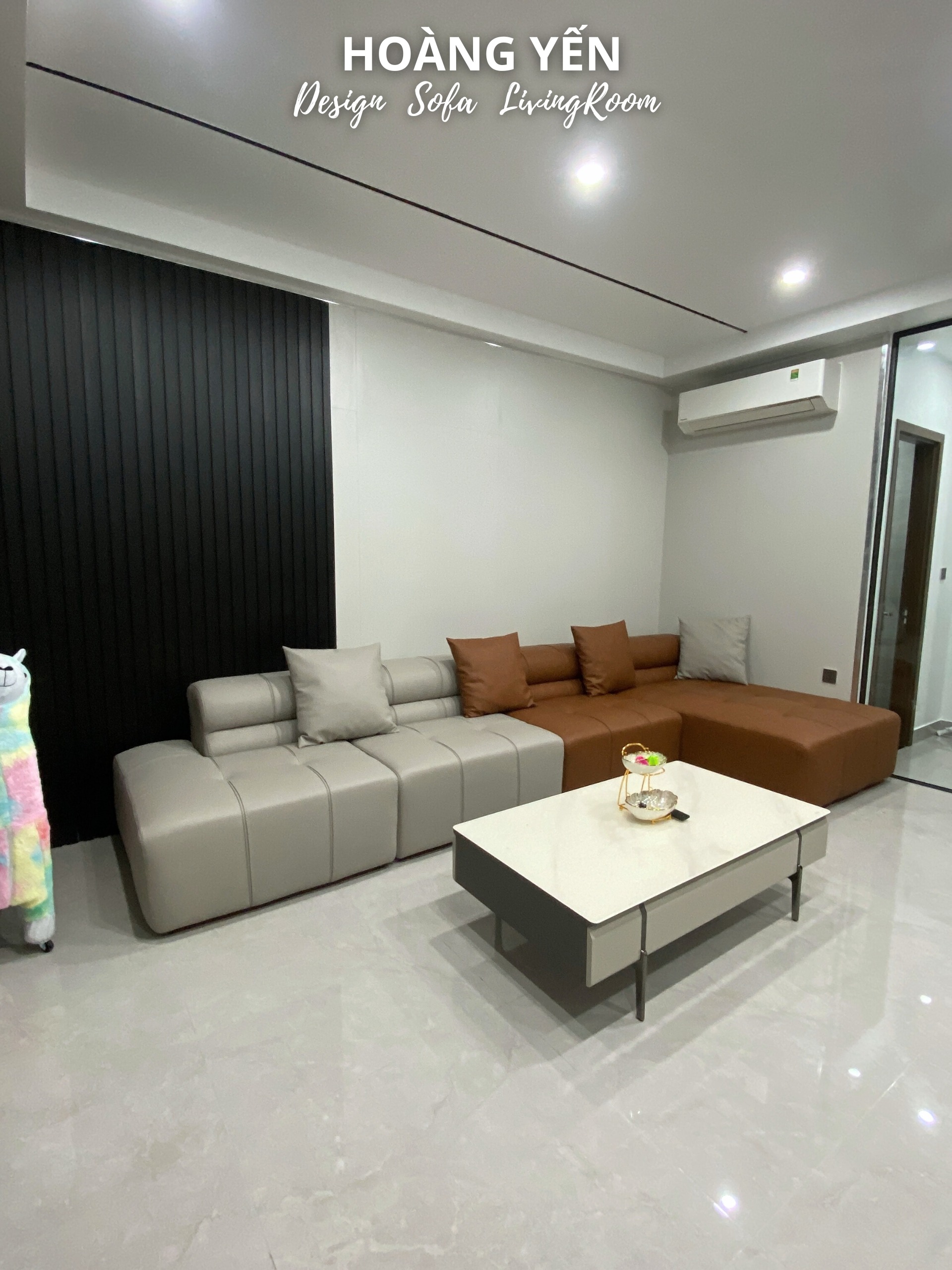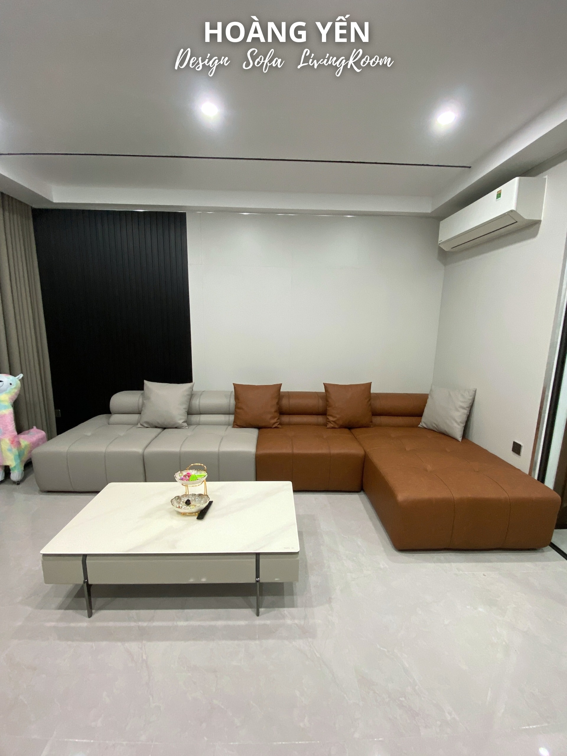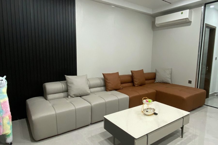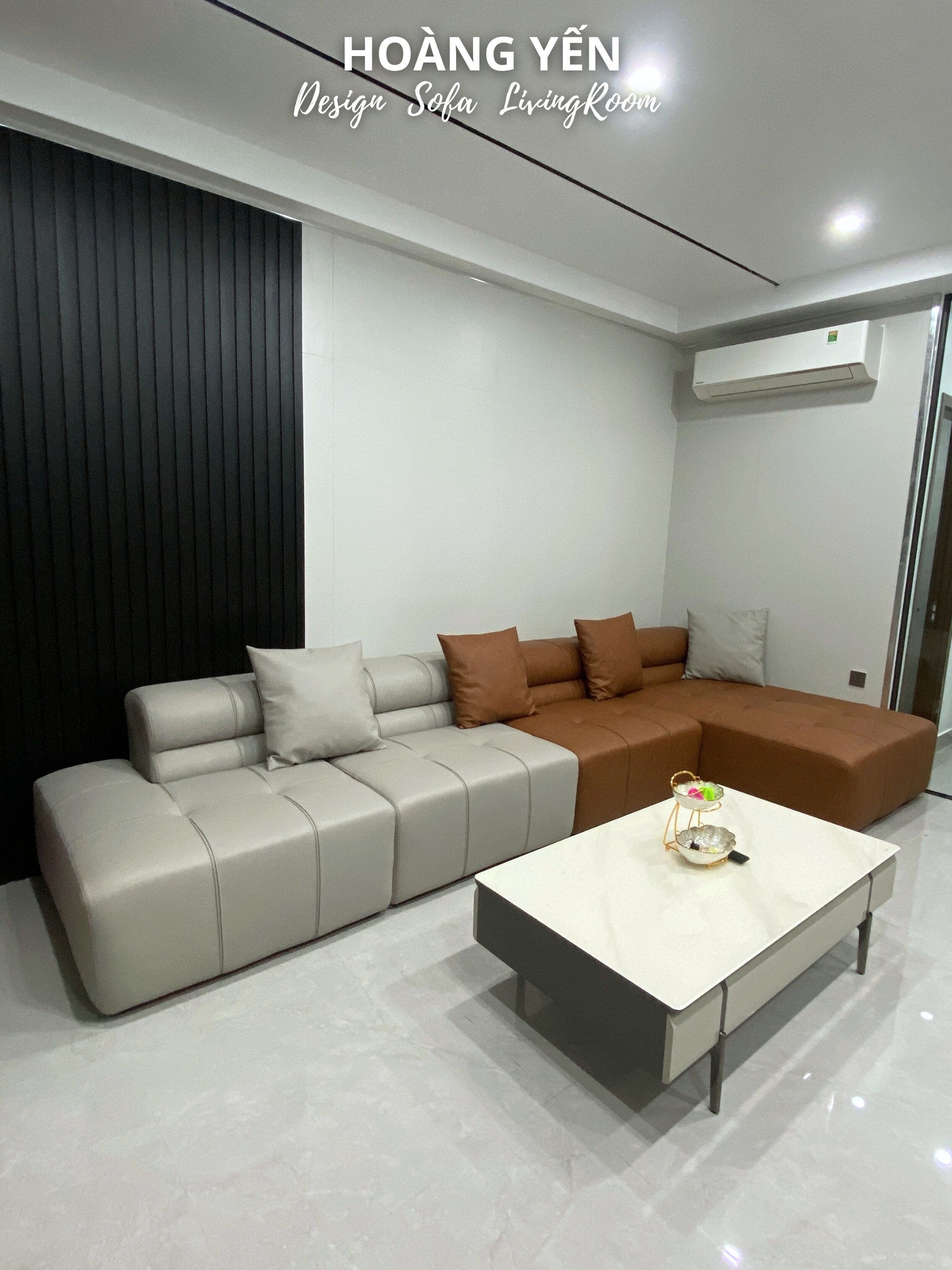 Sofa da góc L kết hợp 2 tone tương phản tạo điểm nhấn phá cách.