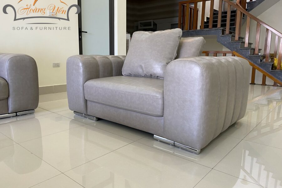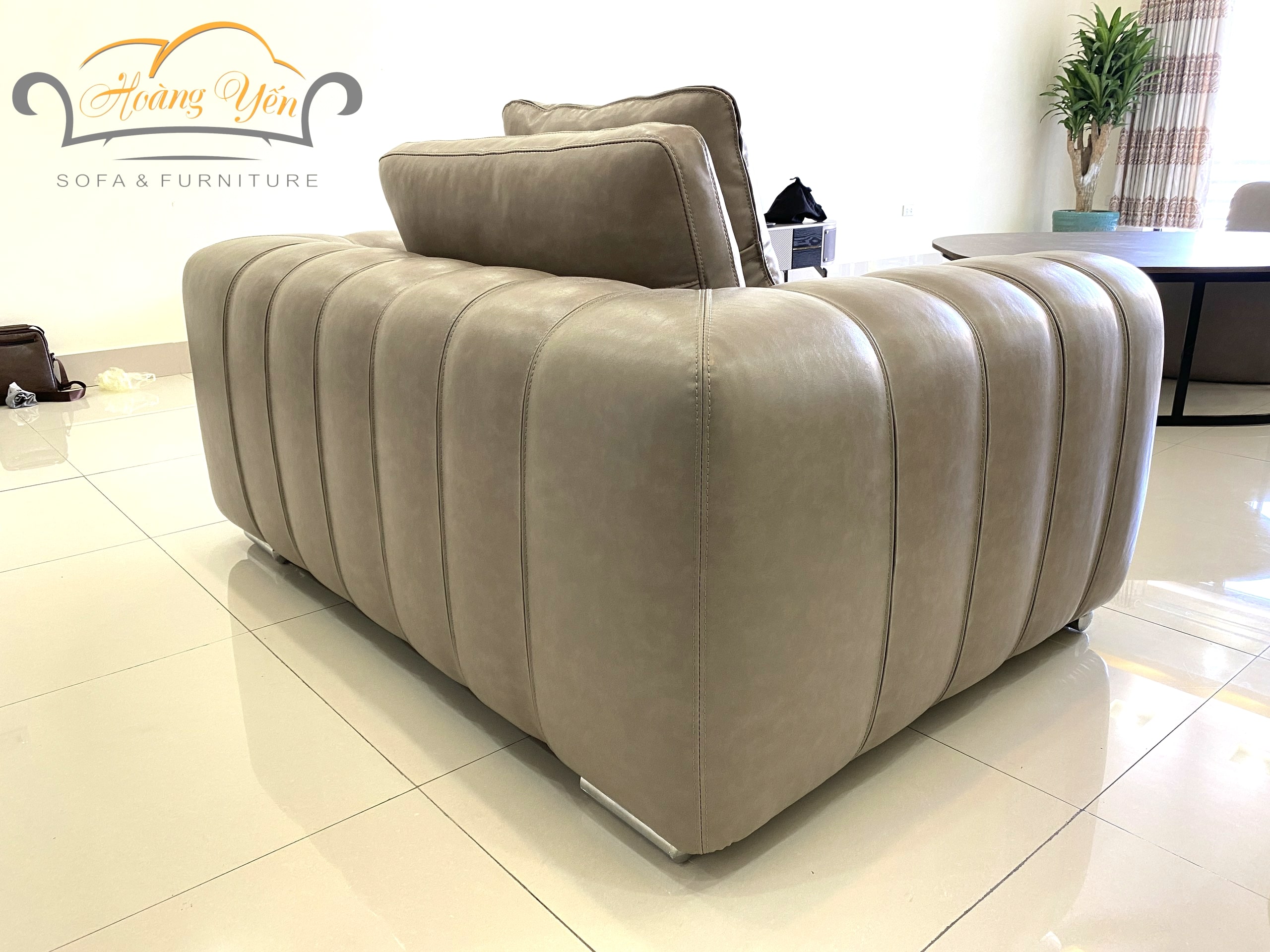Sofa da có sắc độ xám be rất nhẹ, tạo cảm giác ấm vừa và sang tinh tế.