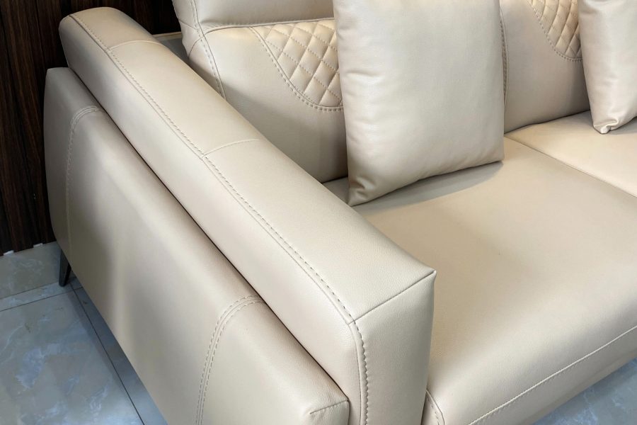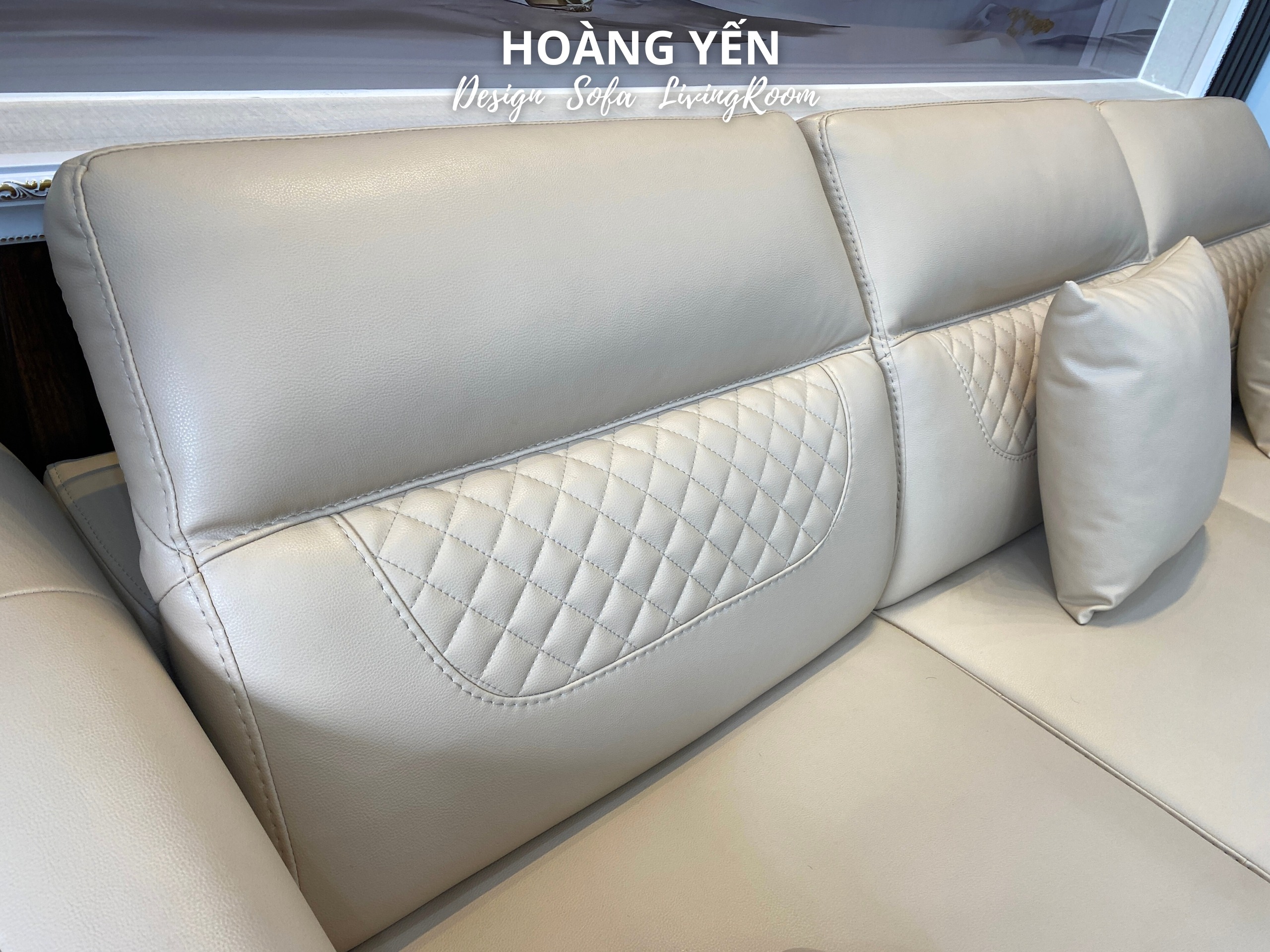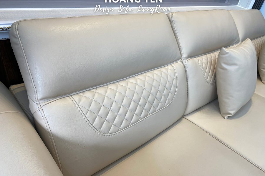 Sofa màu sáng giúp bắt sáng tốt, làm nổi bật các đường nét may nhấn nhá trên bề mặt da.