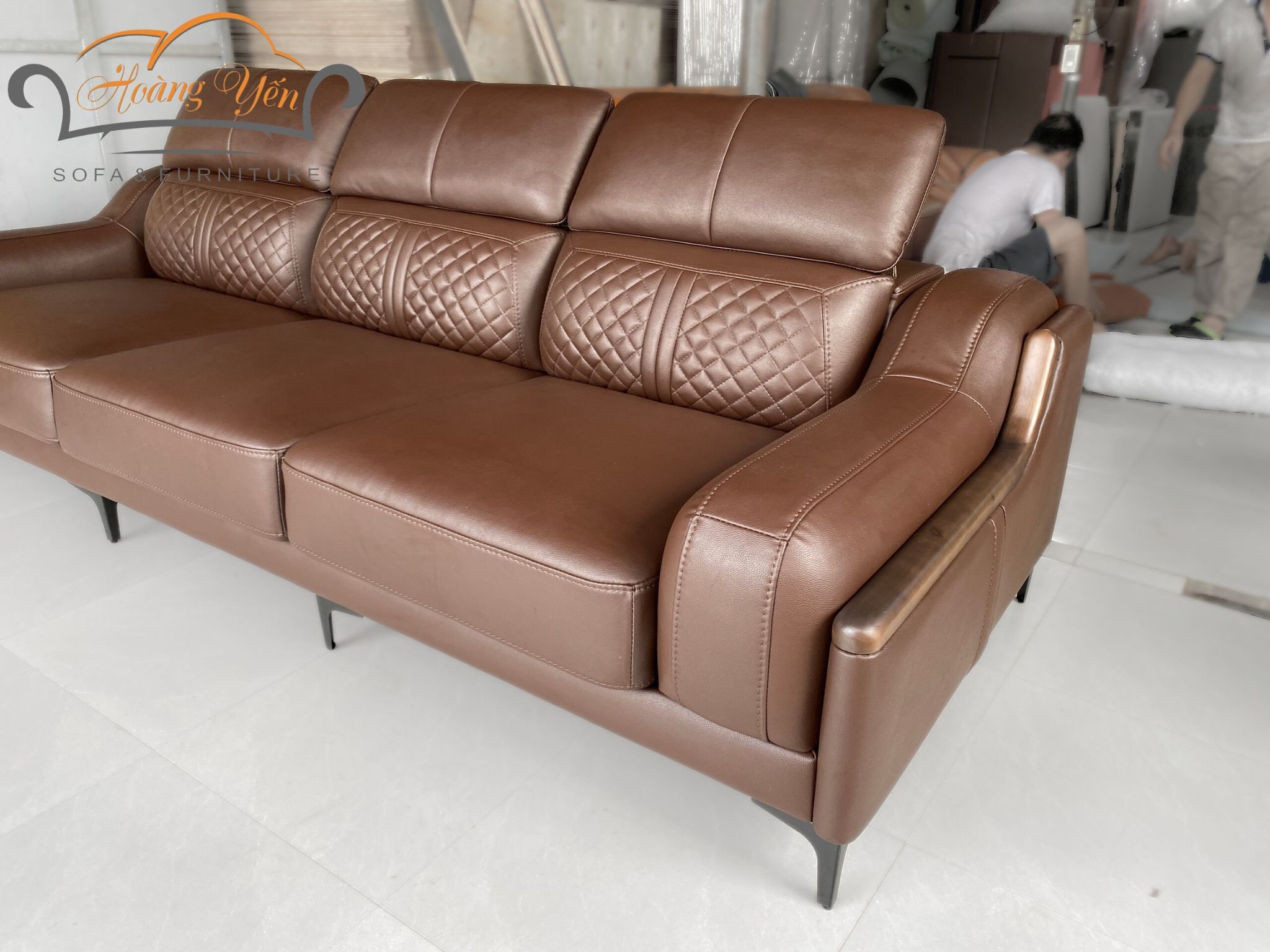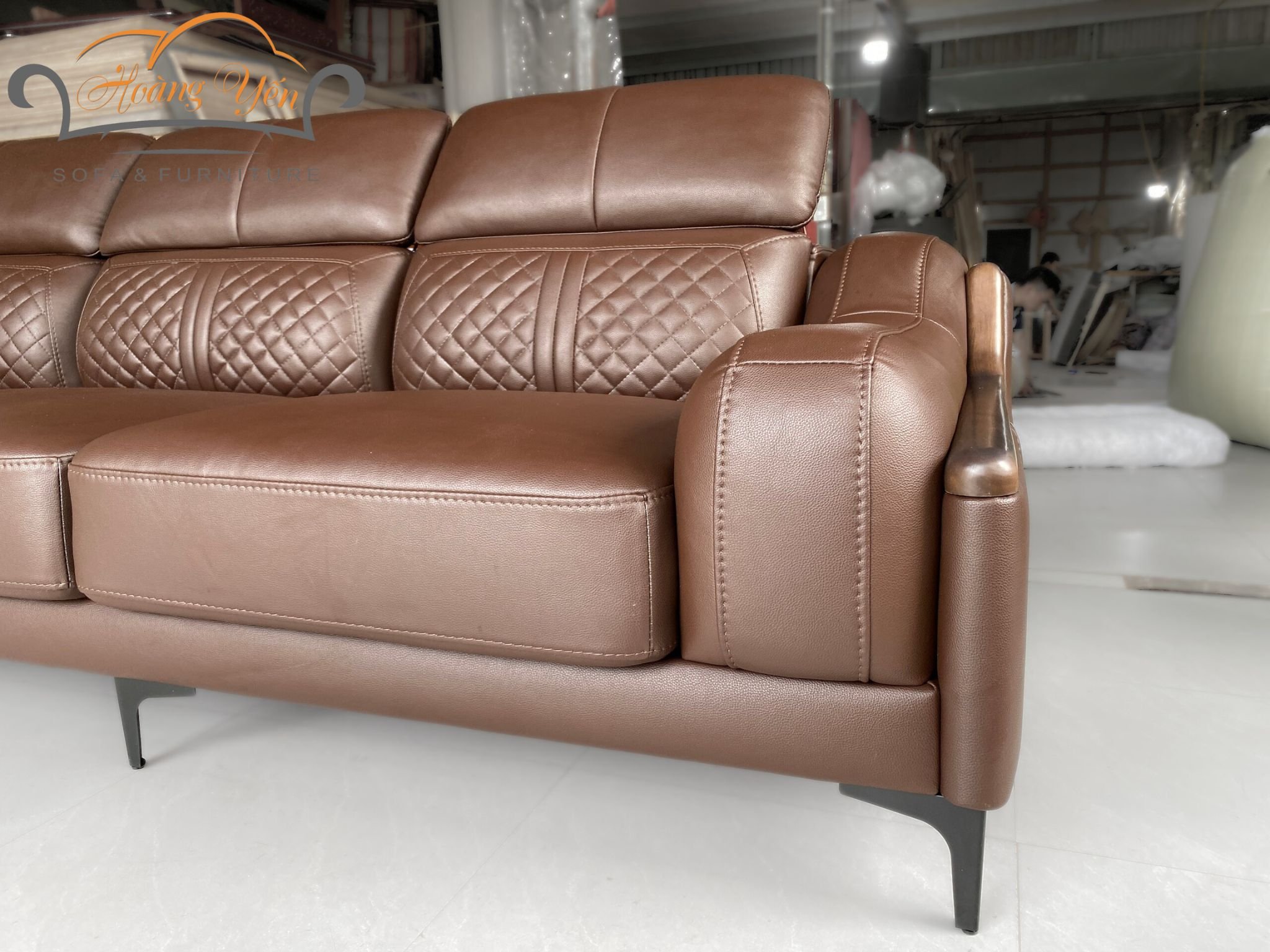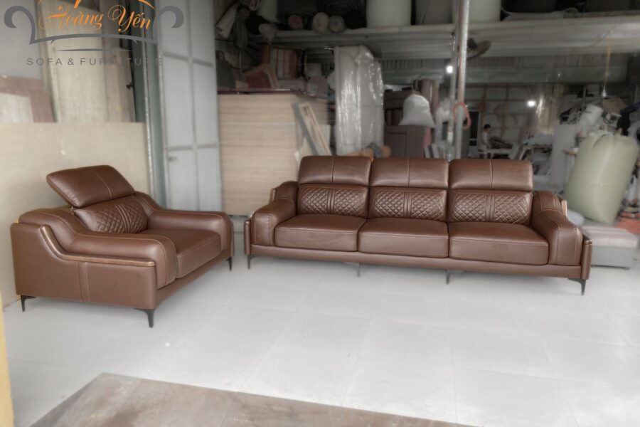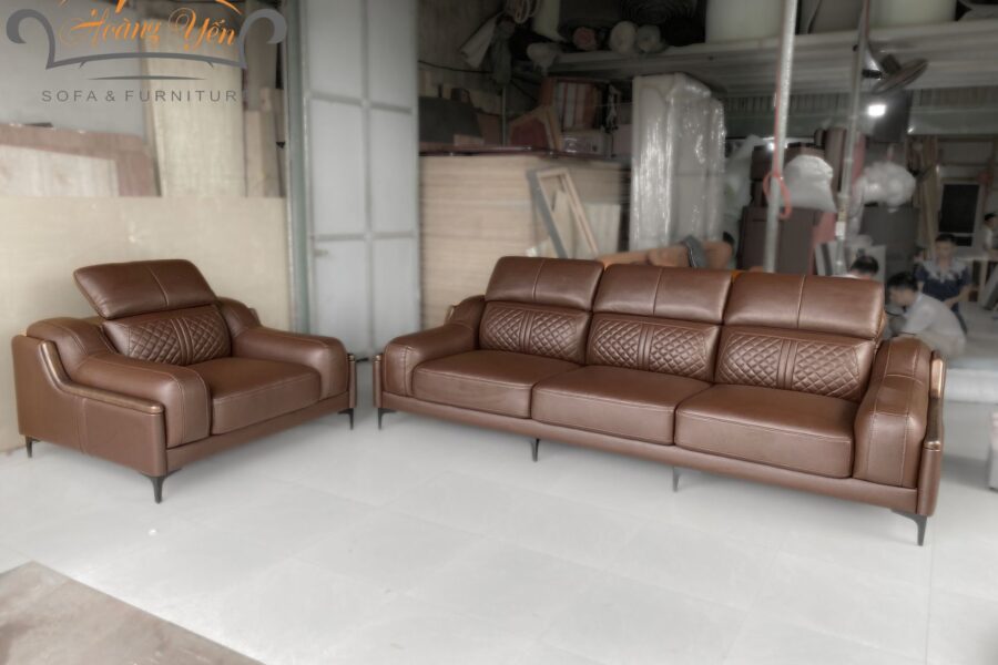 – Bề mặt da sofa phòng khách SHY369 màu nâu:
