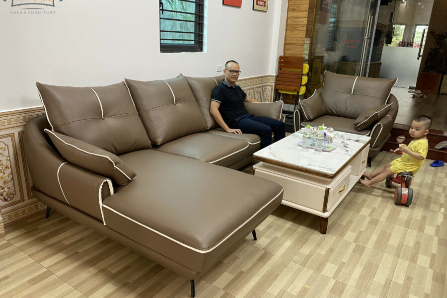 Sofa da phòng khách SHY375 thiết kế hiện đại, thanh lịch và thoải mái.
