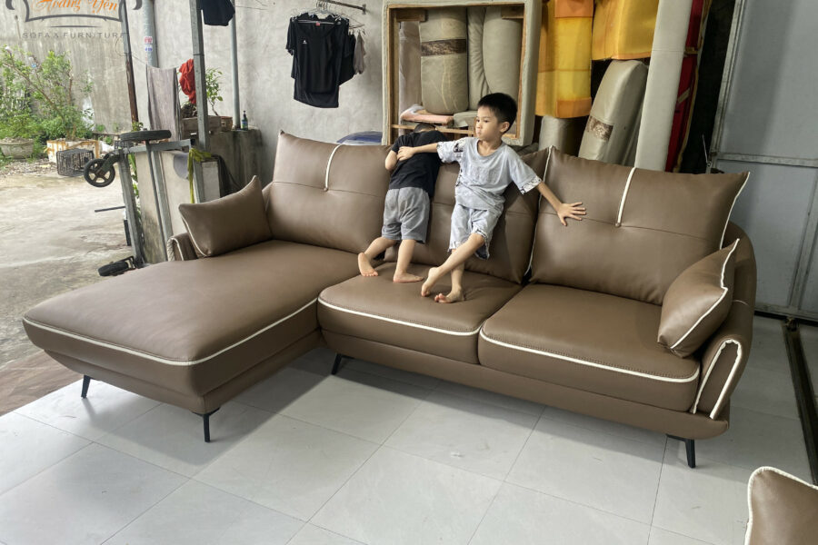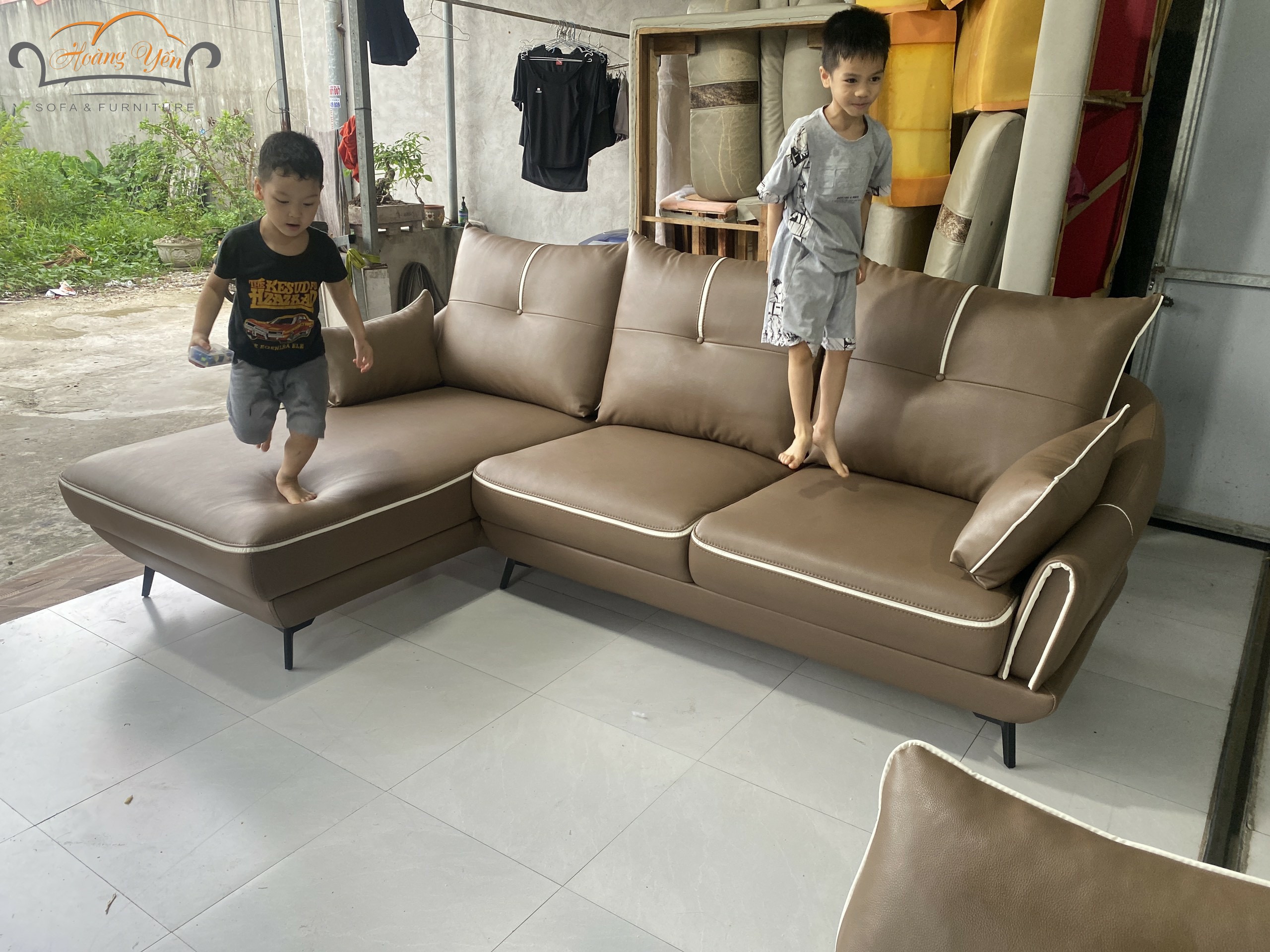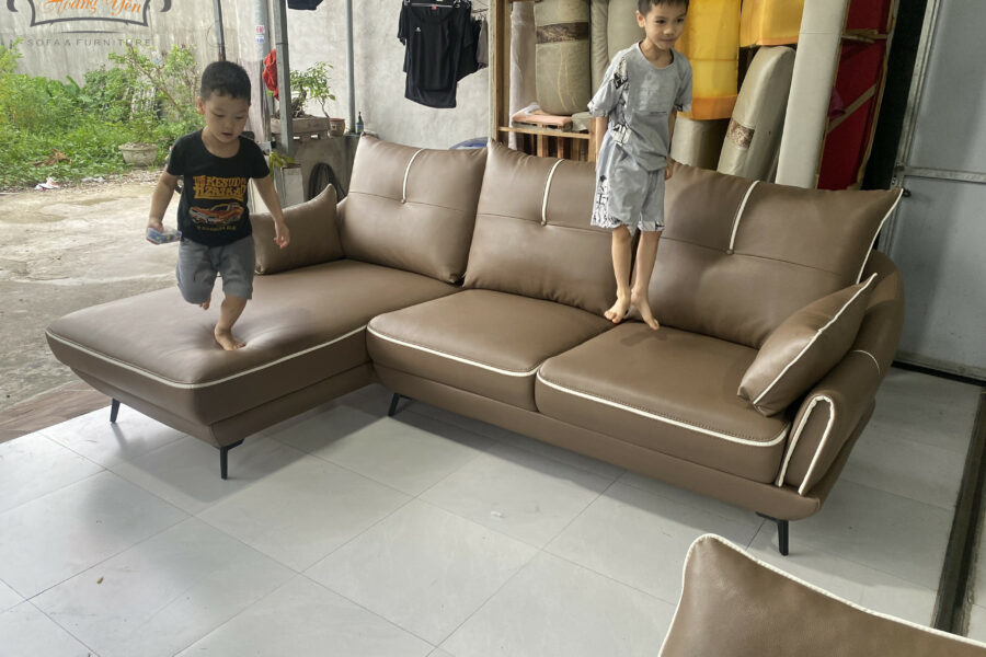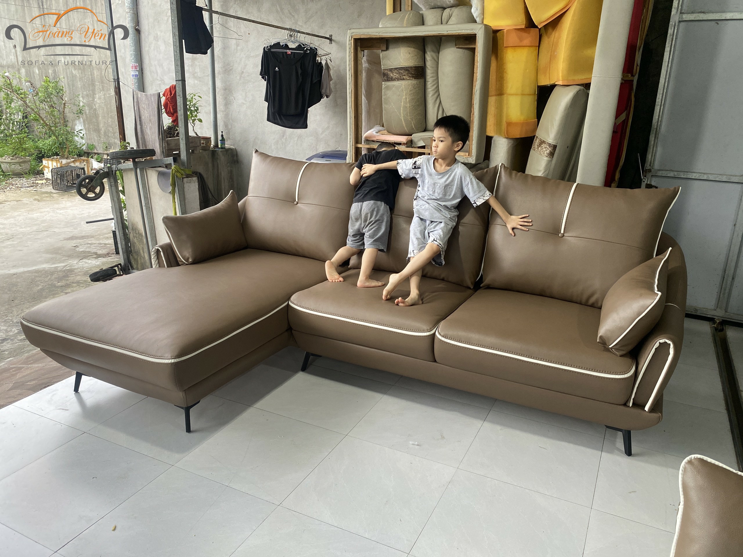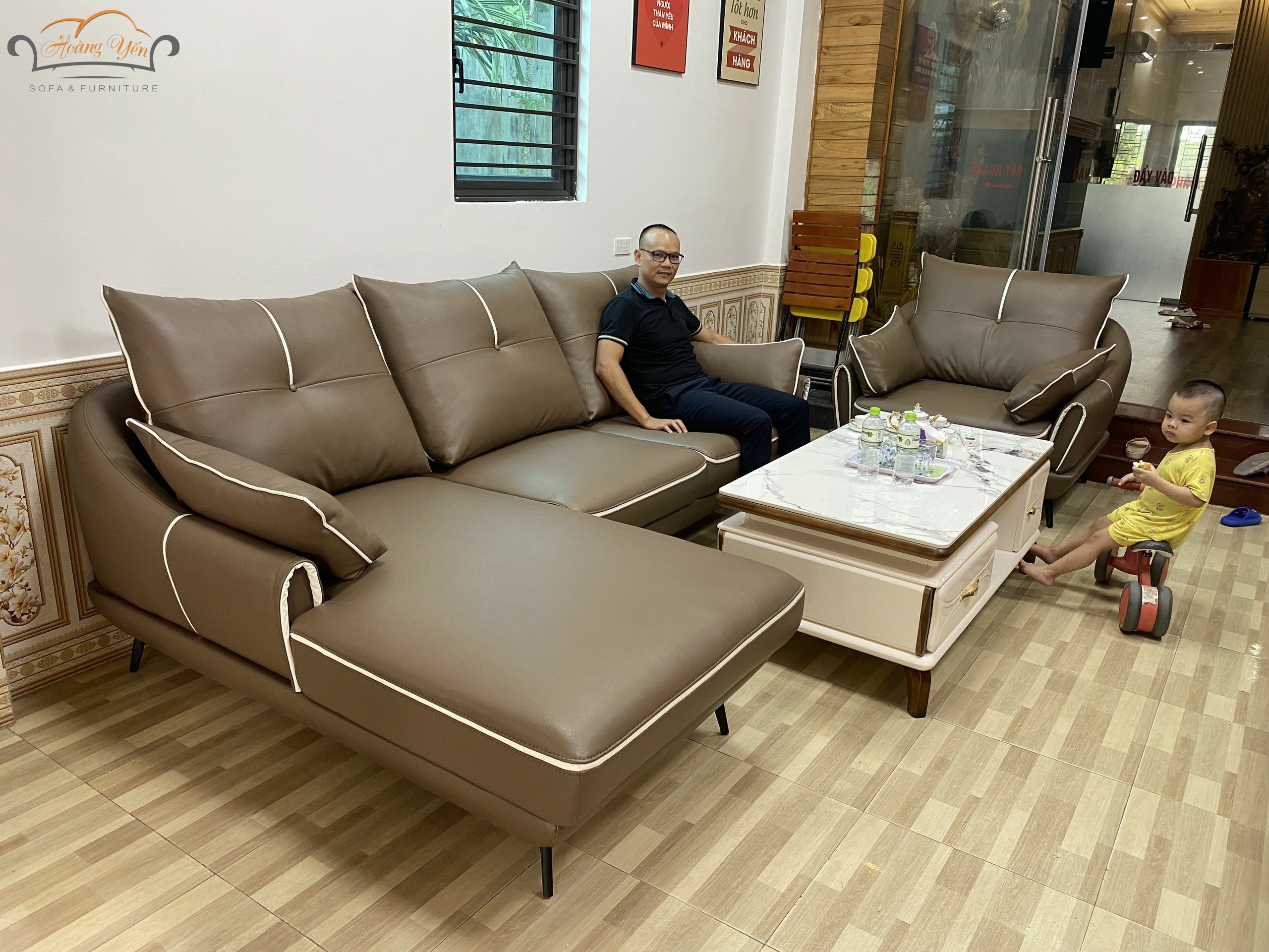 HY375 với kích thước góc L 2.7m*1.8m, văng đơn 1.3m, được làm bằng dòng da cao cấp NANO có giá là 33.500.000.