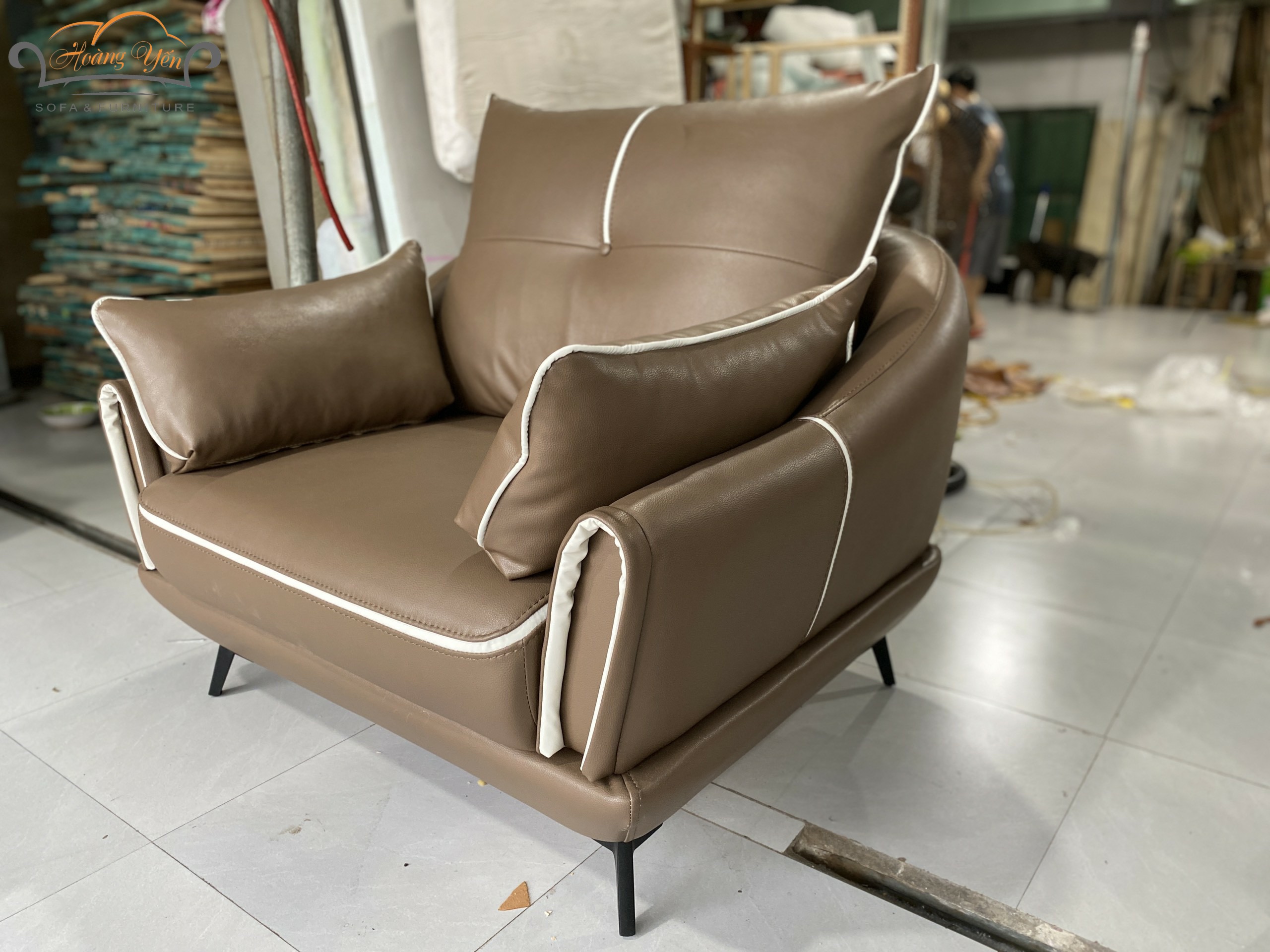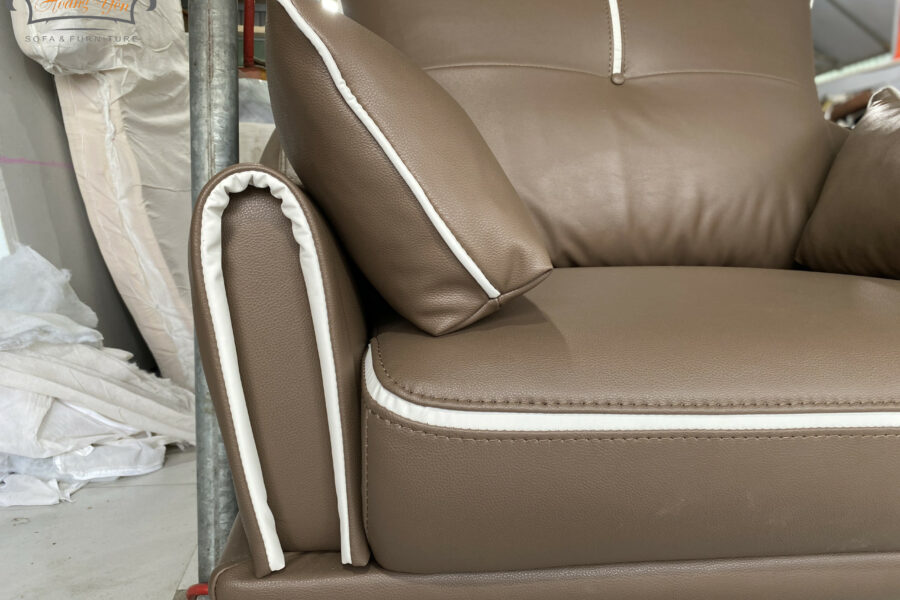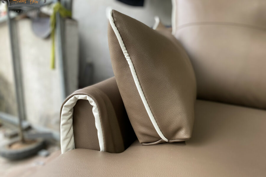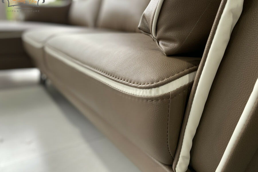 Các đường viền chỉ nổi màu trắng, tạo điểm nhấn tinh tế và làm nổi bật hình khối sofa.