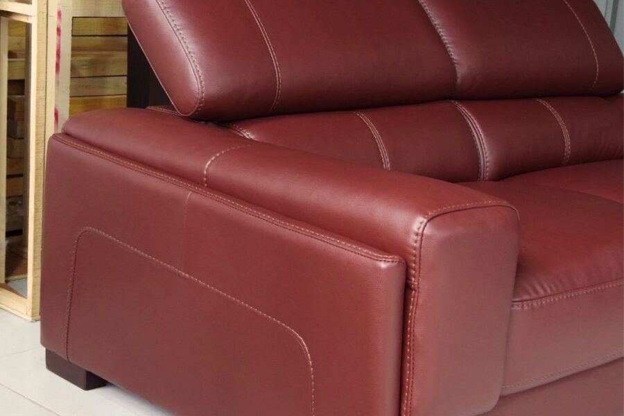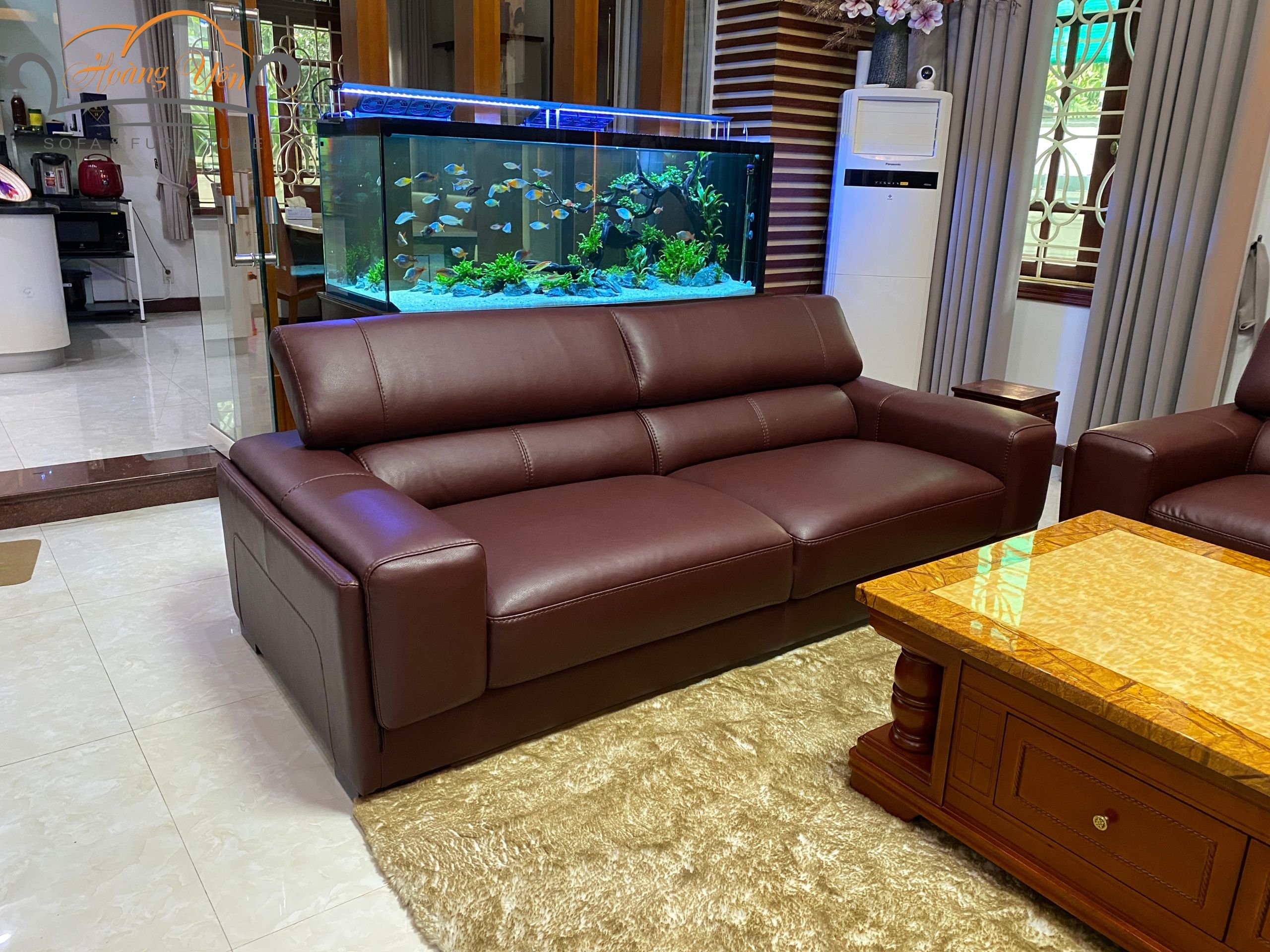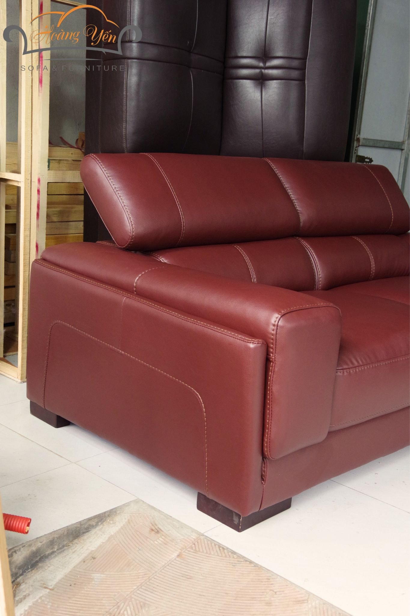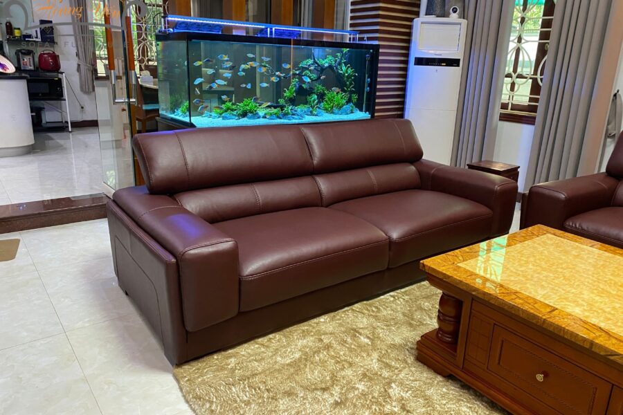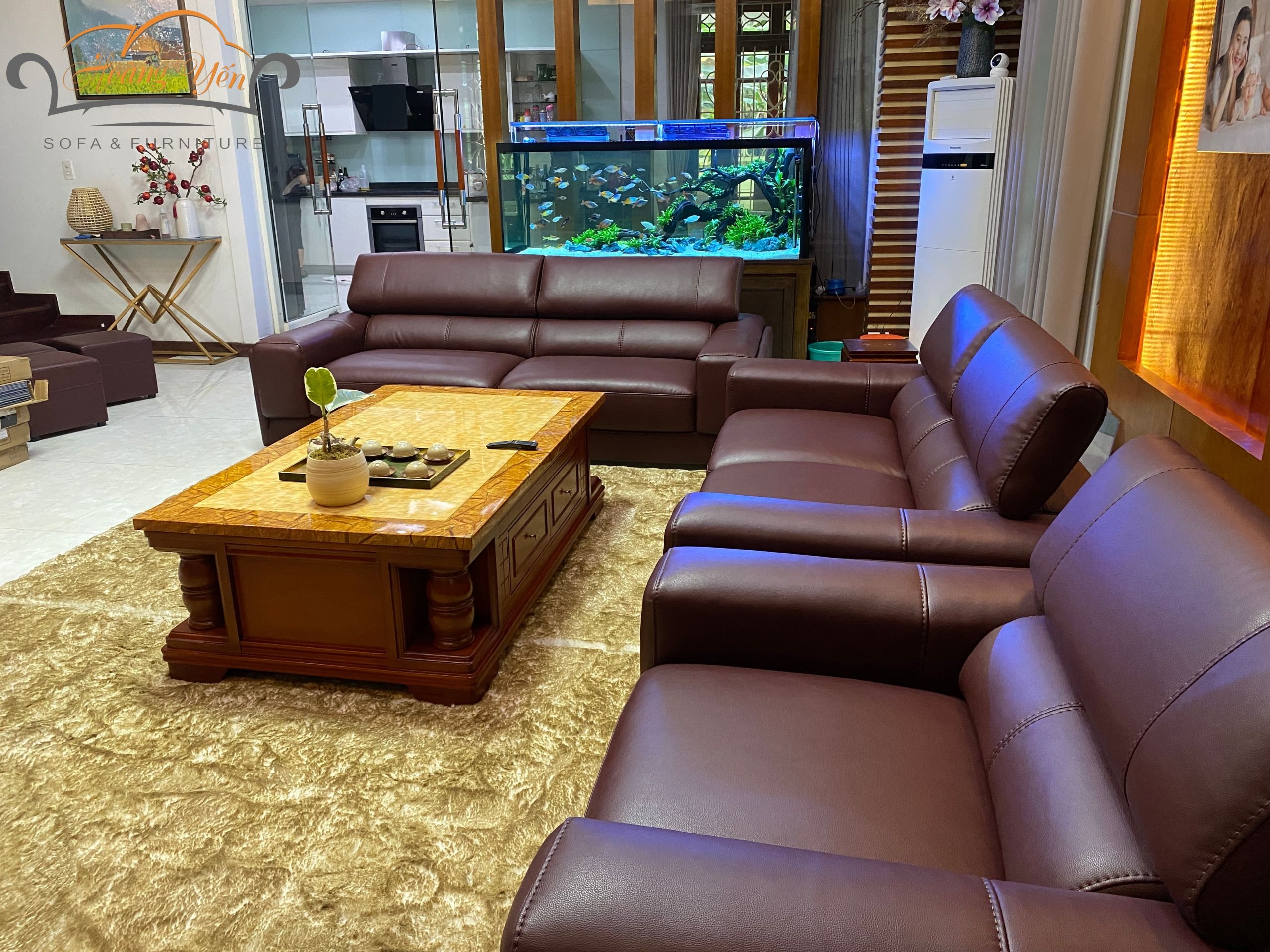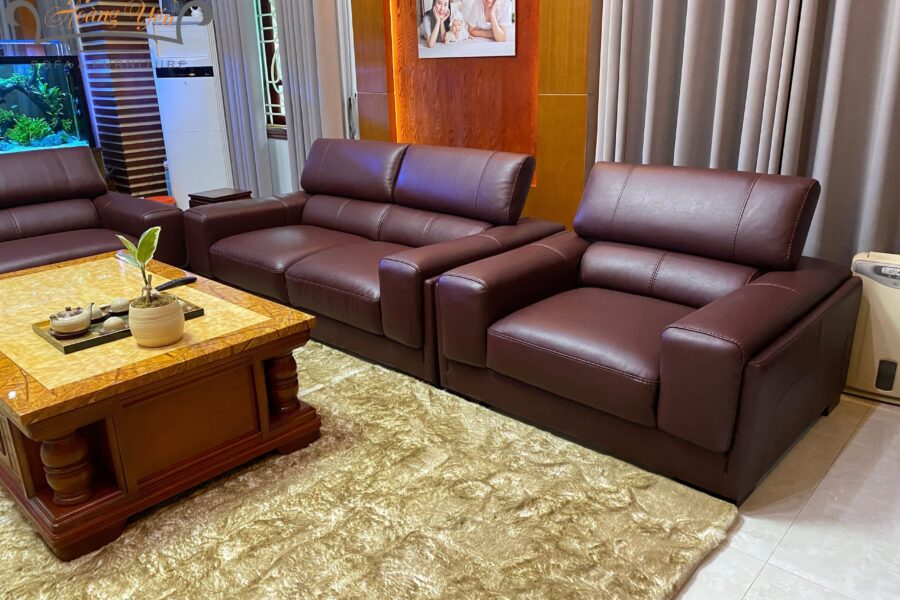 Sofa da phòng khách SHY389 màu rượu vang đậm, sang trọng, ấm áp và dễ phối với nội thất gỗ.