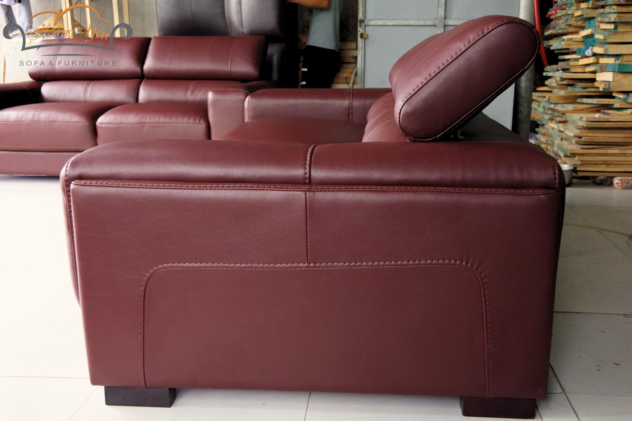 Sofa da phòng khách SHY389 màu rượu vang đậm, sang trọng, ấm áp và dễ phối với nội thất gỗ.