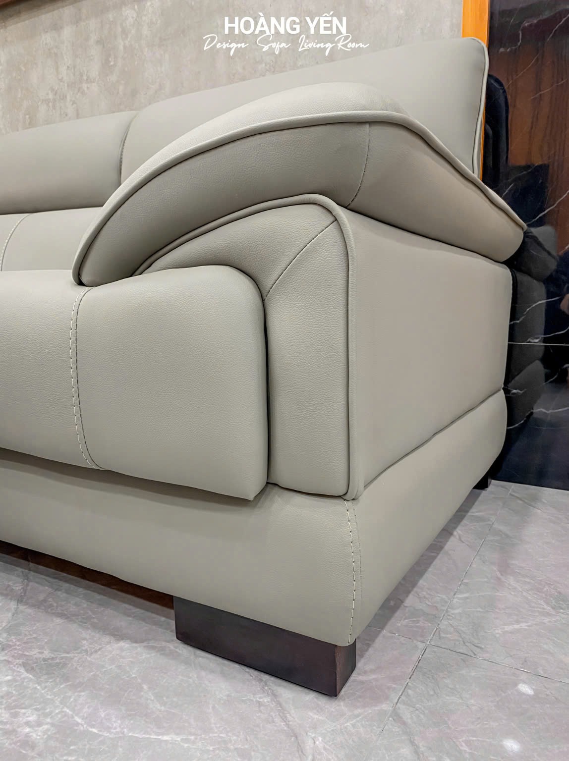 – Bề mặt da sofa phòng khách SHY405 màu ghi: