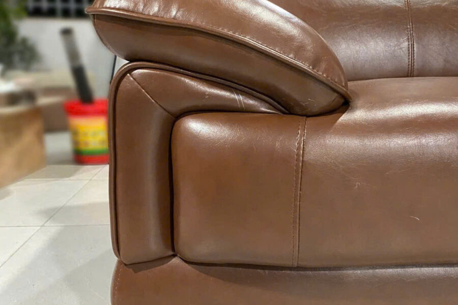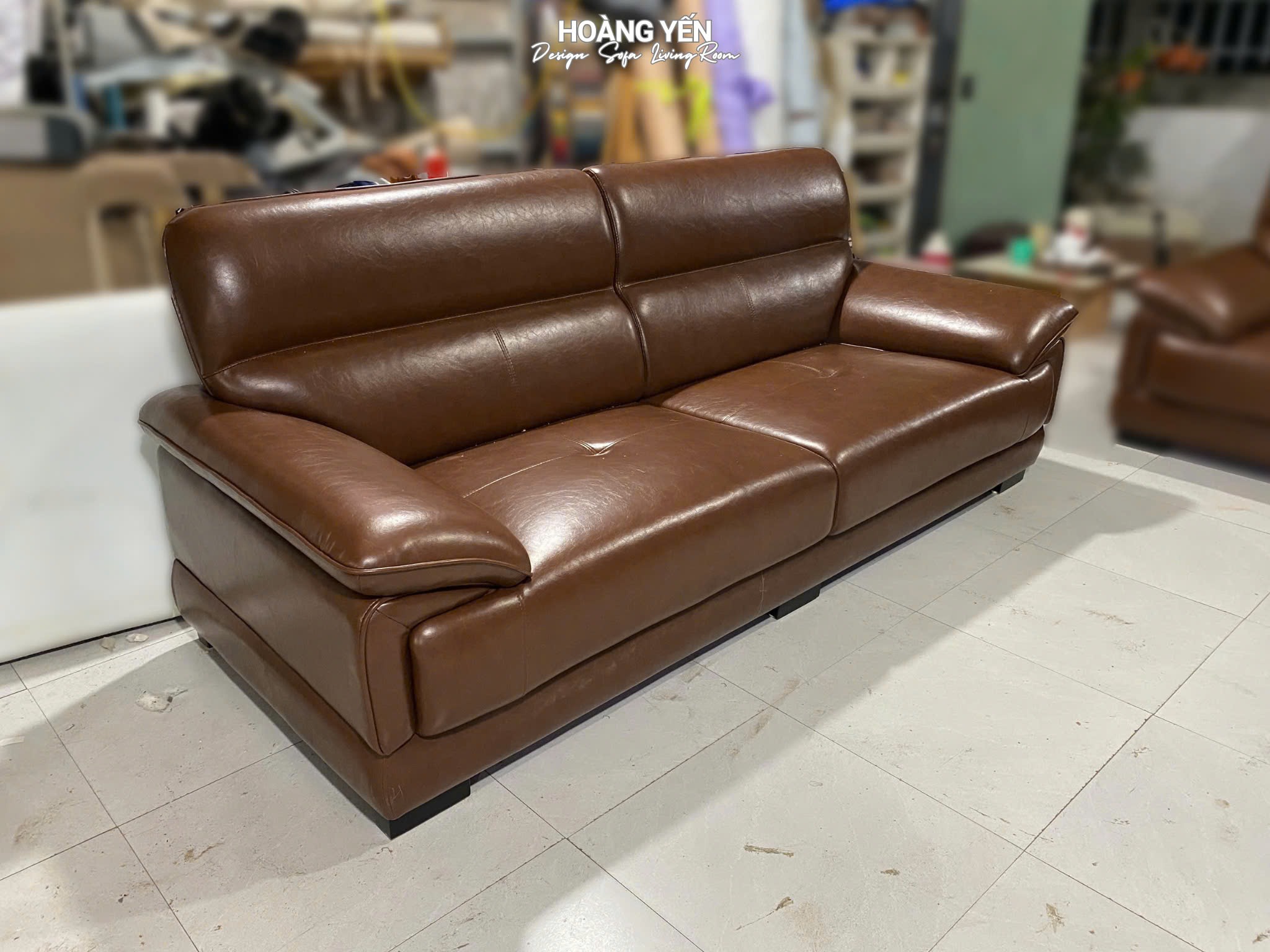 – Bề mặt da sofa phòng khách SHY405 nâu bóng: