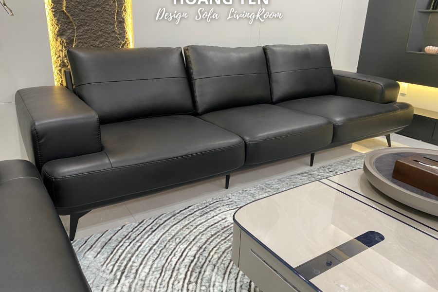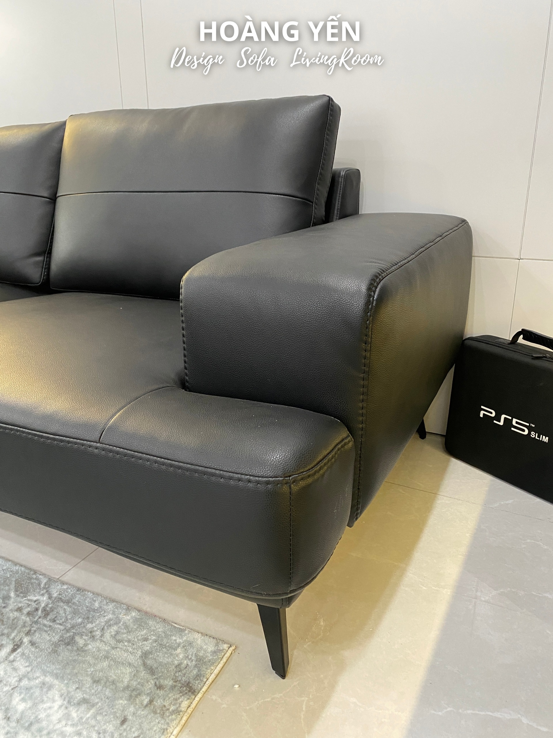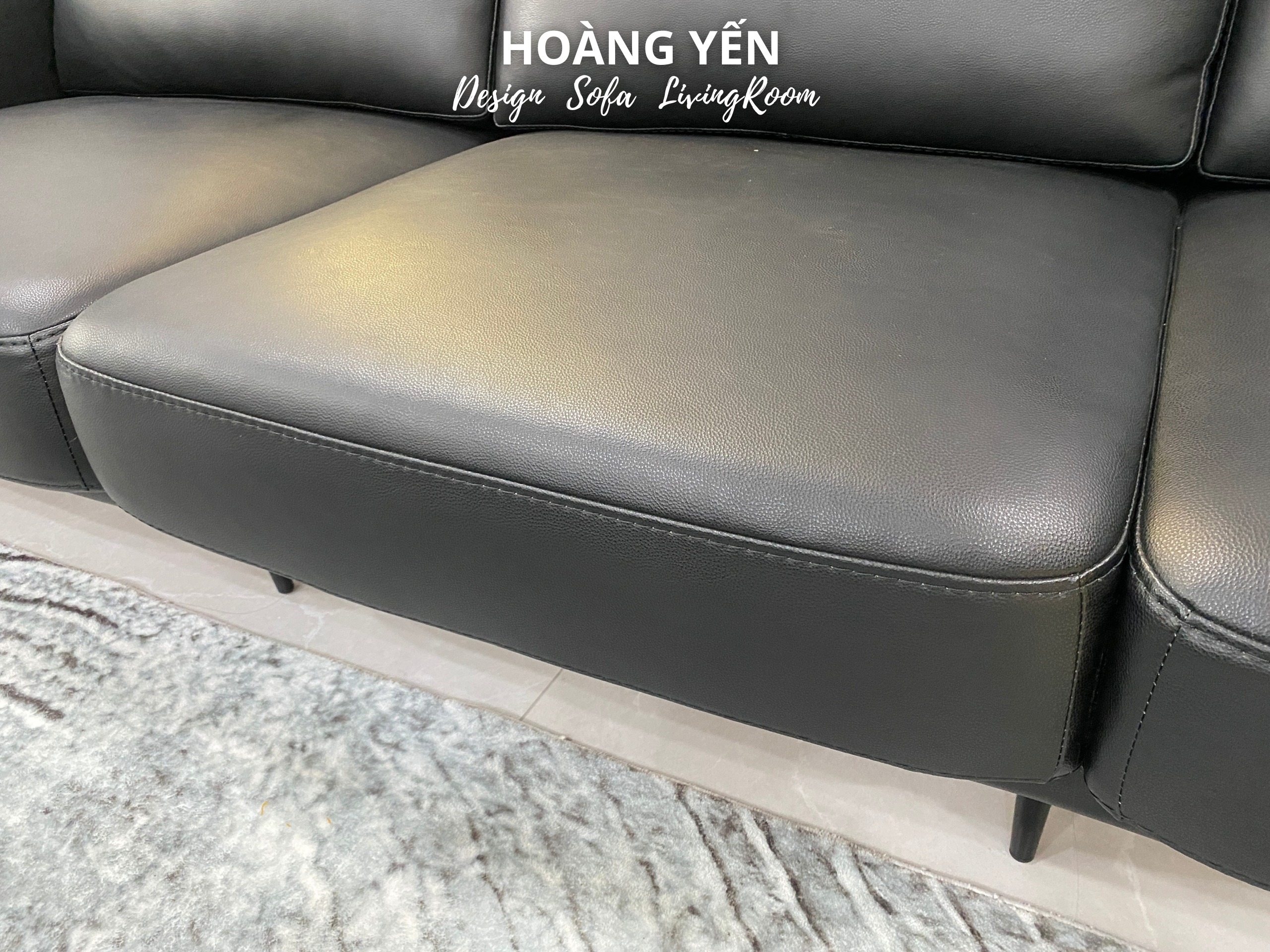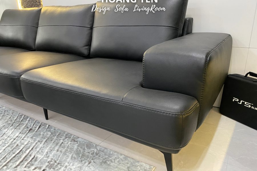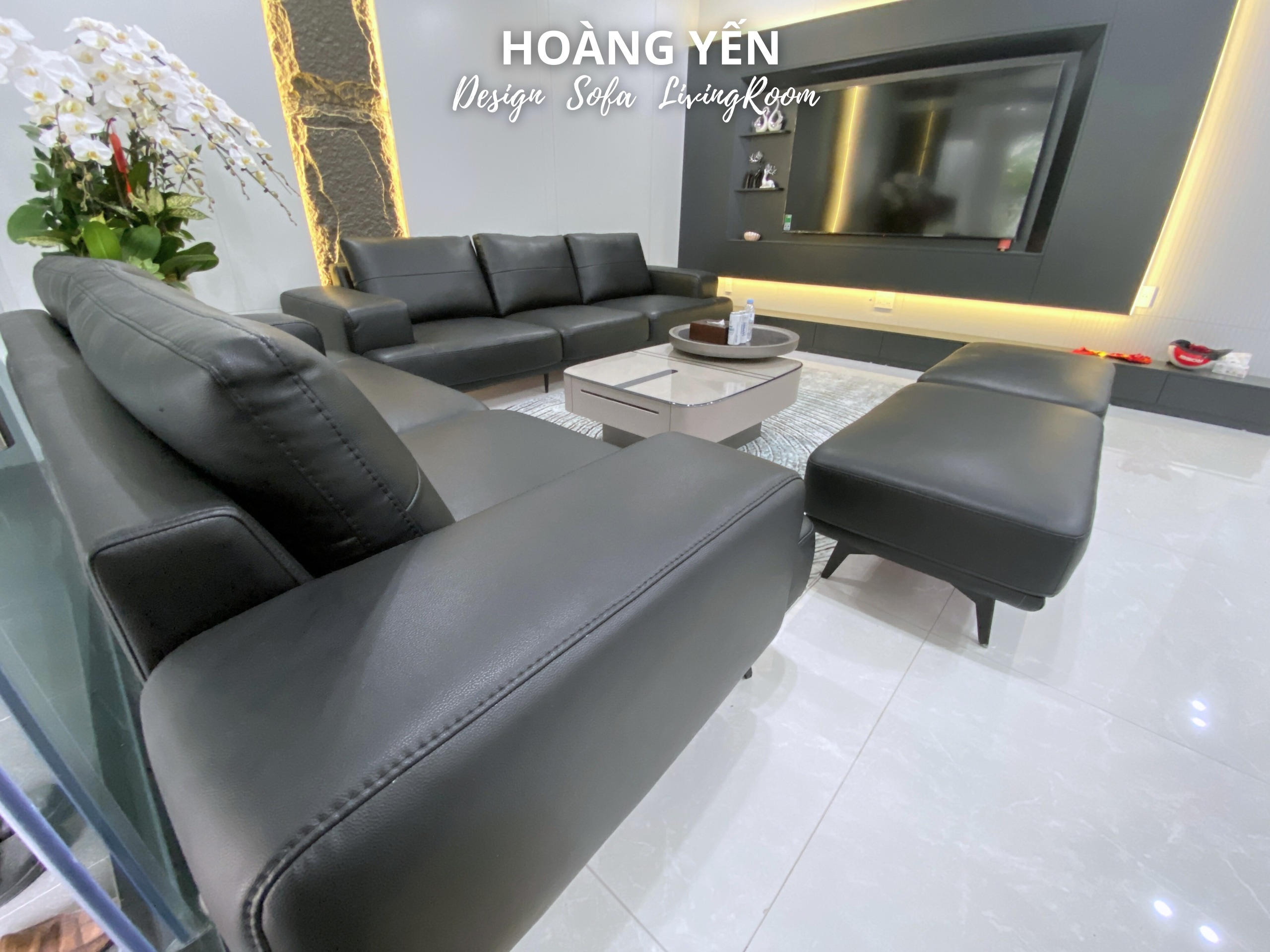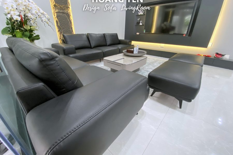 Sofa da phòng khách SHY419 màu ghi đen là điểm nhấn thị giác chính trong không gian.