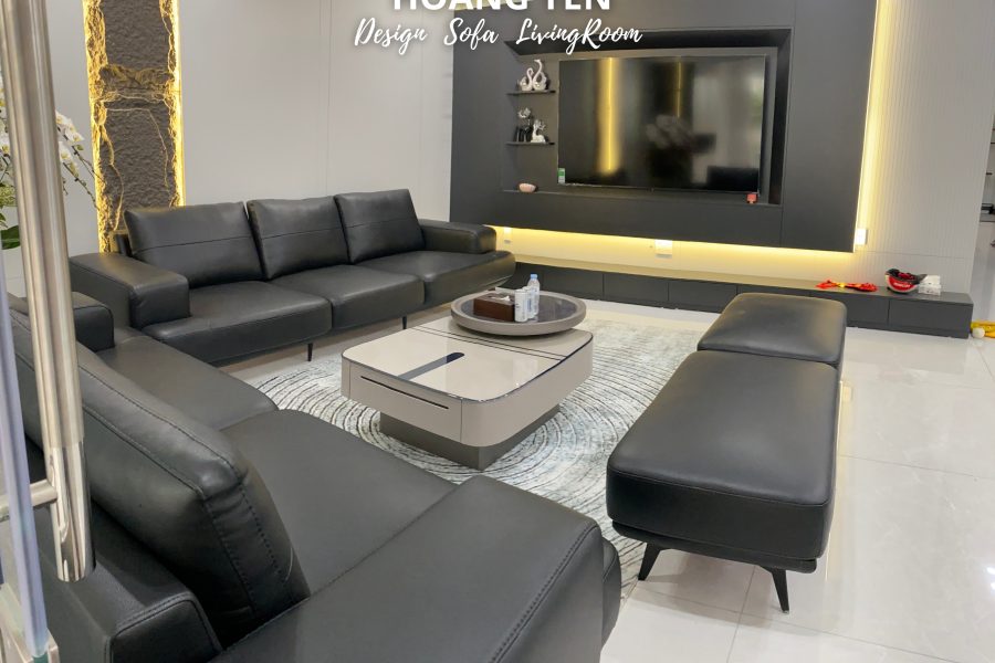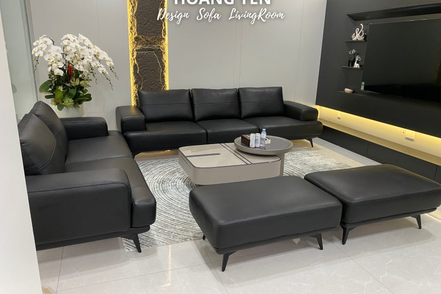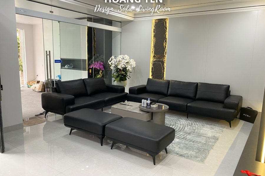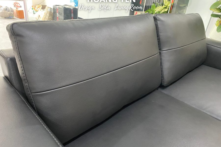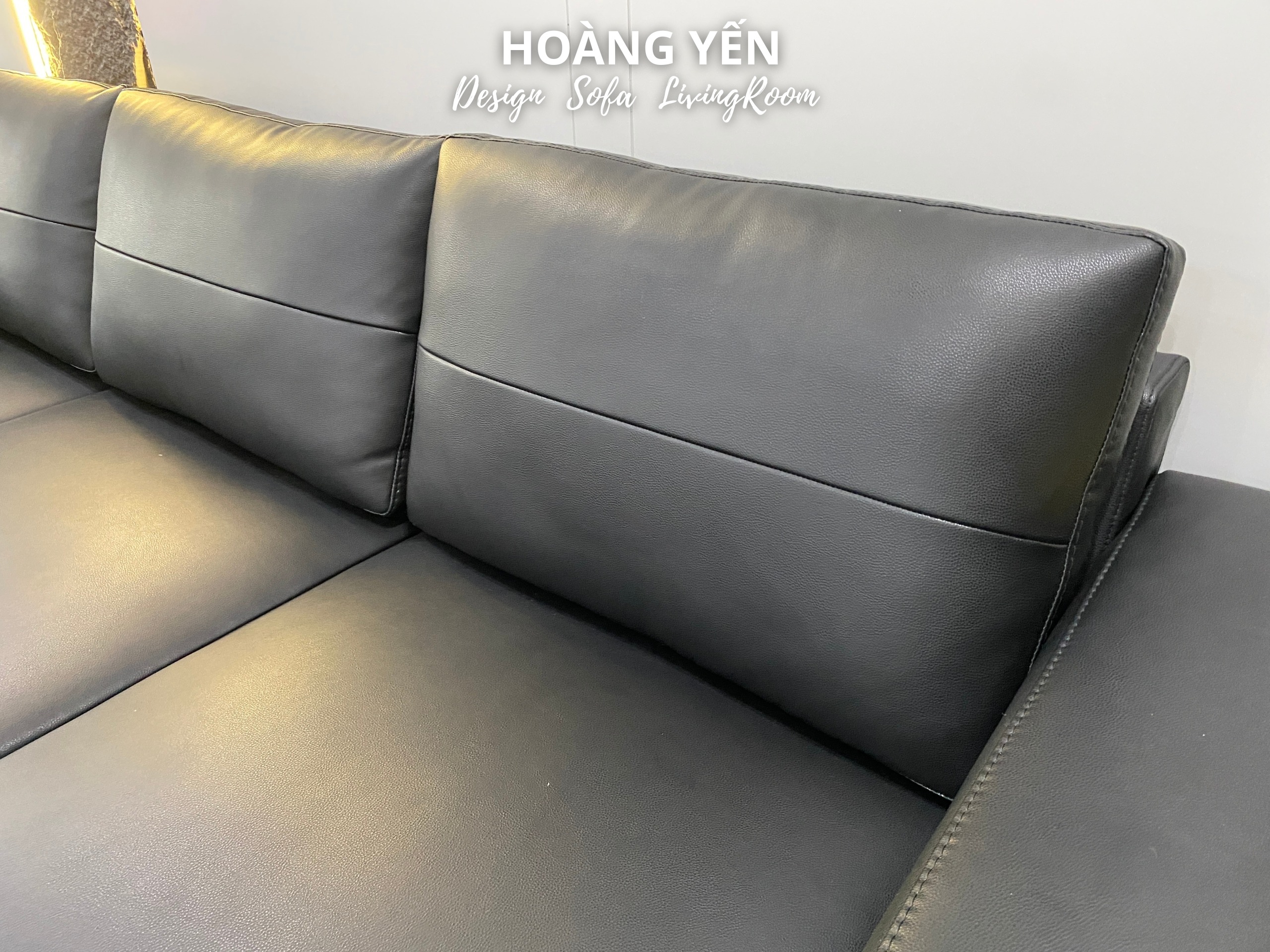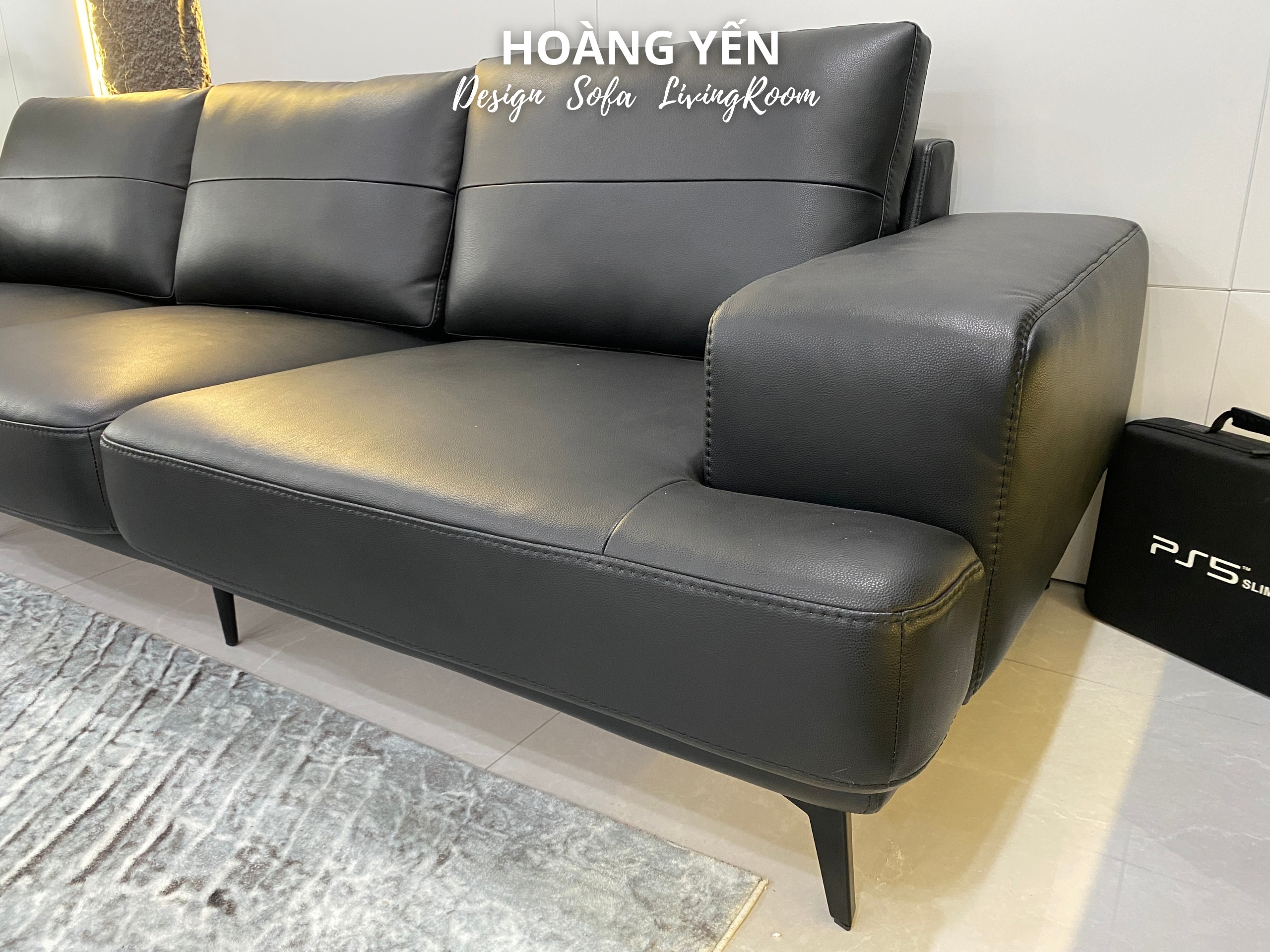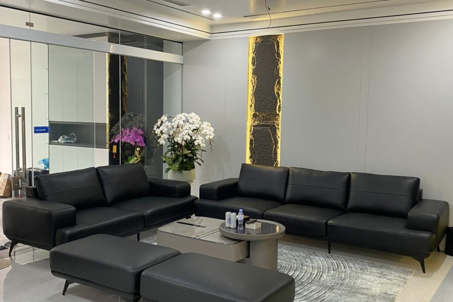 Sofa da phòng khách SHY419 màu ghi đen là điểm nhấn thị giác chính trong không gian.