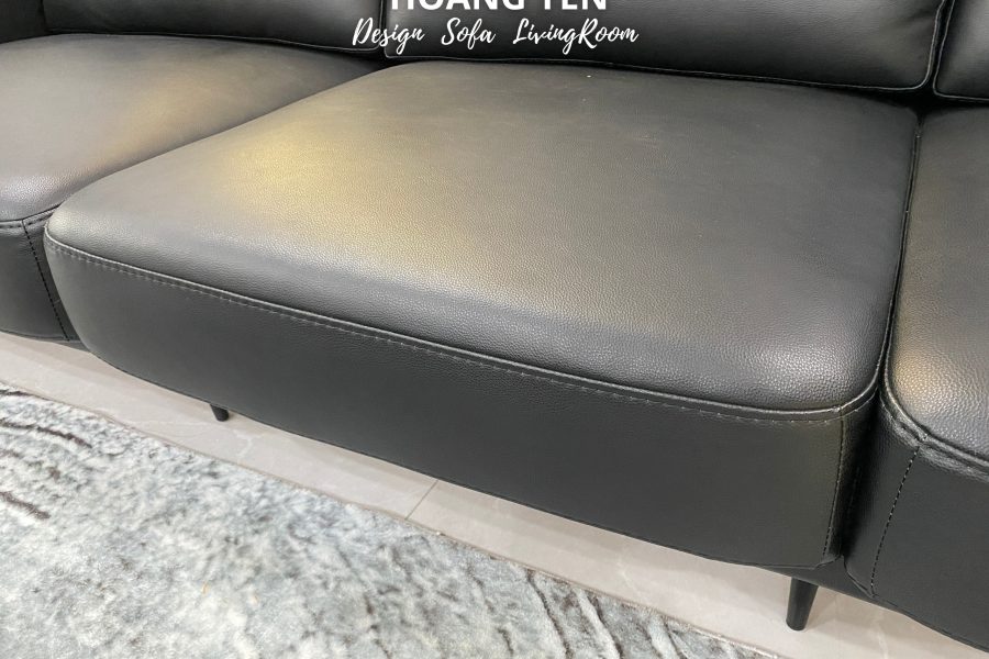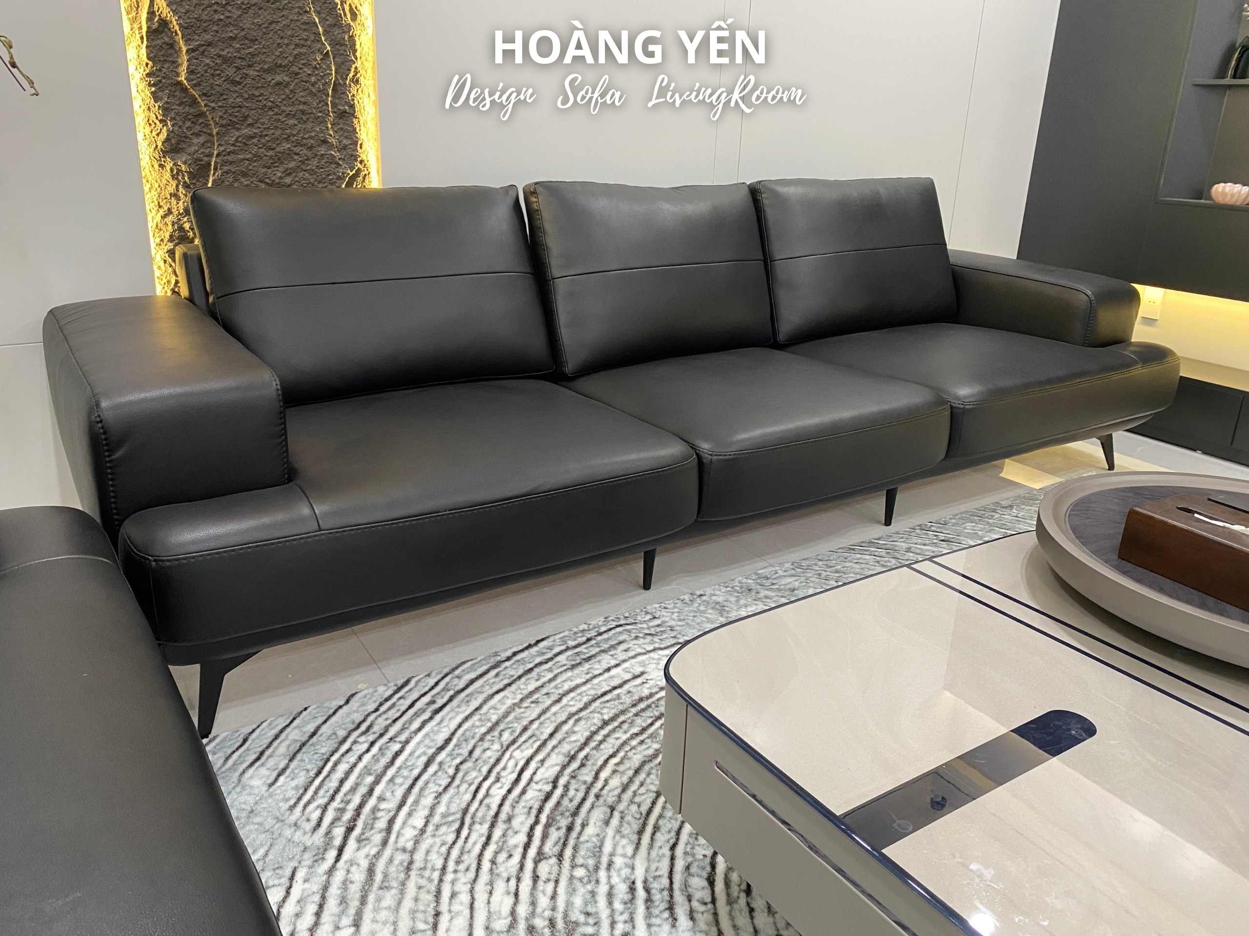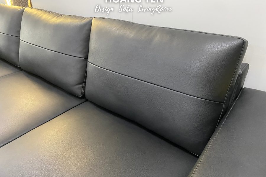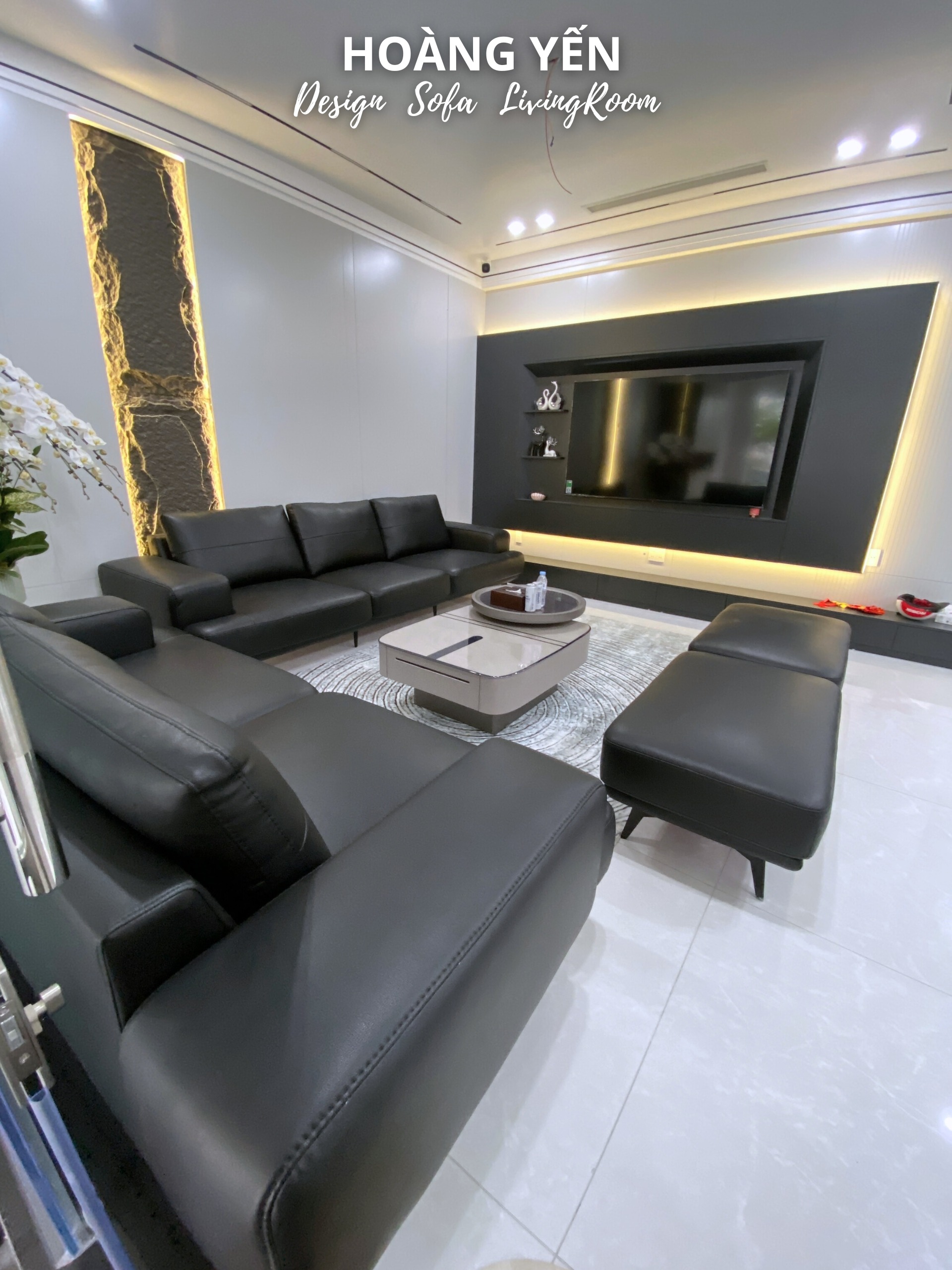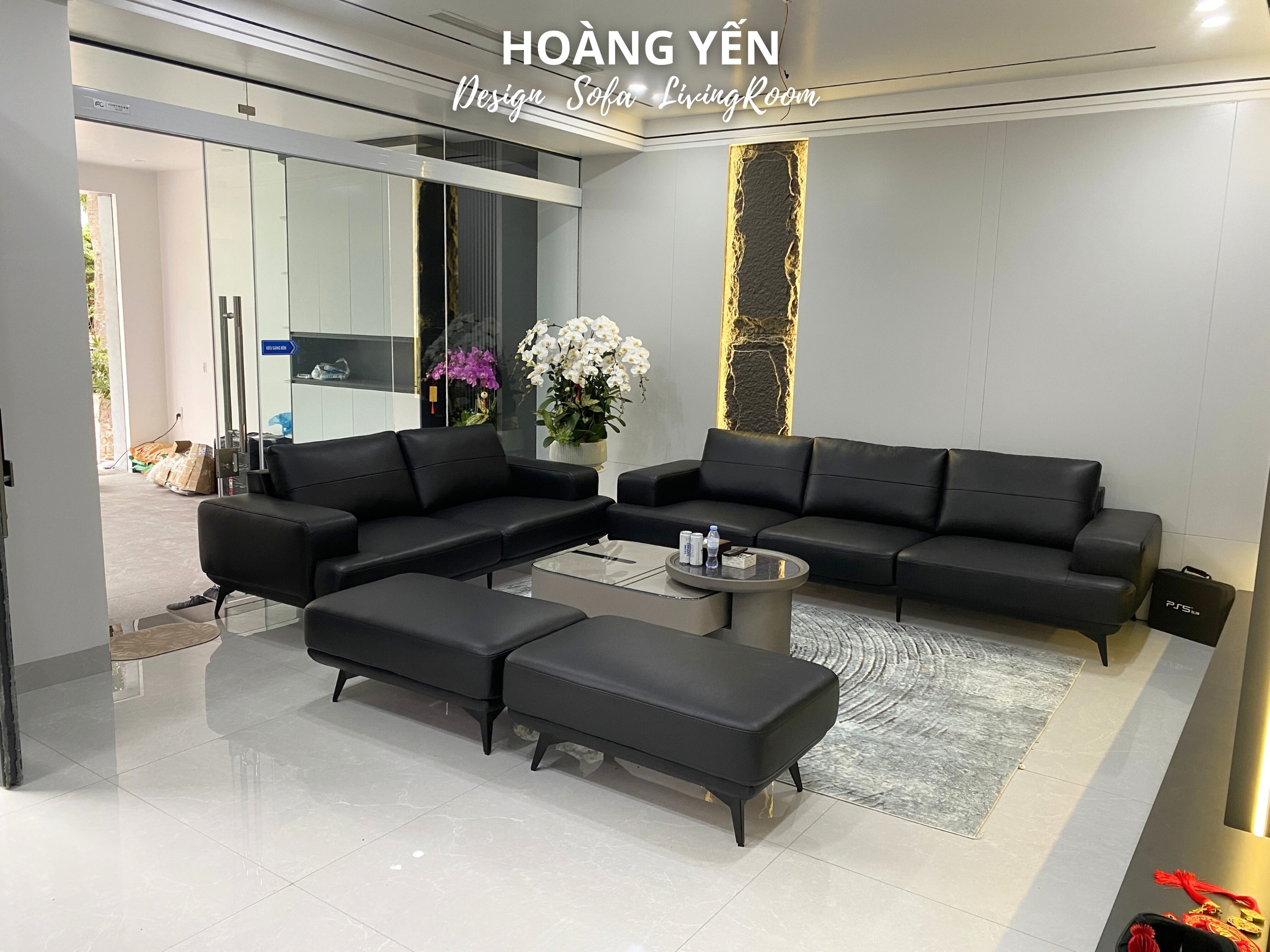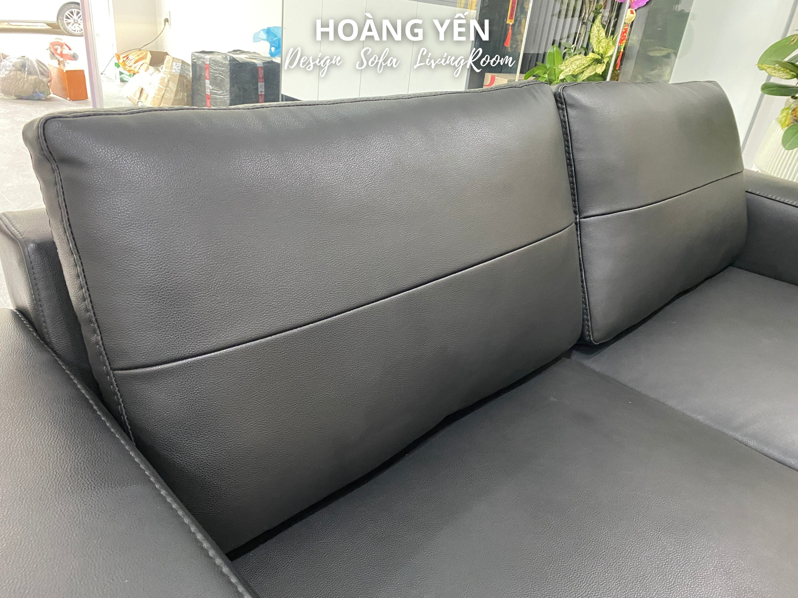 Sofa da phòng khách SHY419 màu ghi đen là điểm nhấn thị giác chính trong không gian.