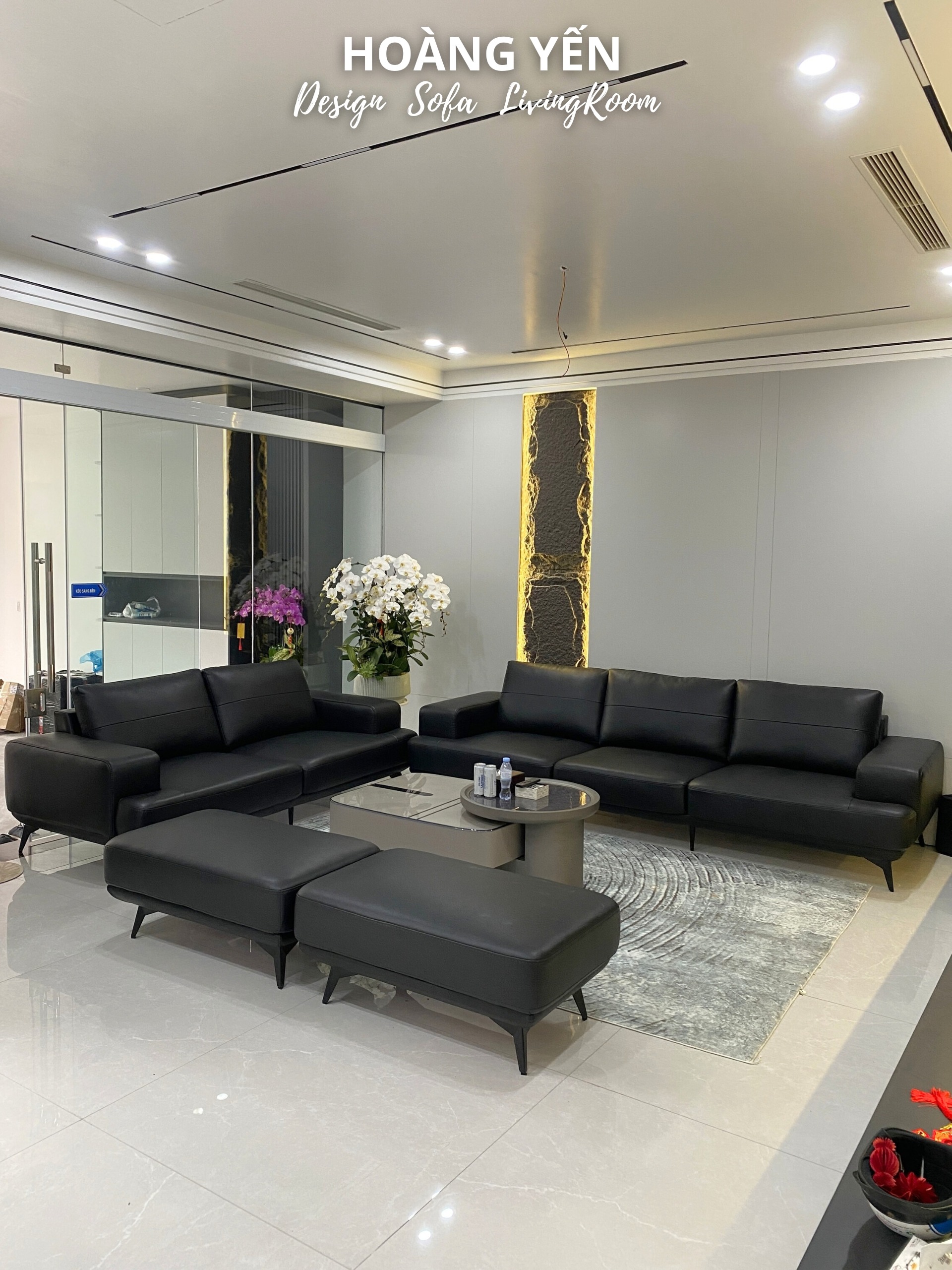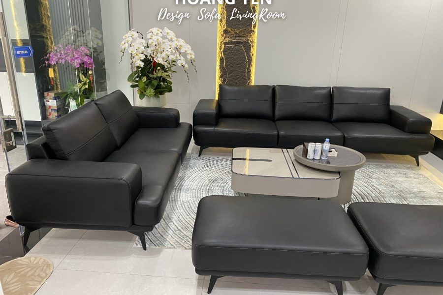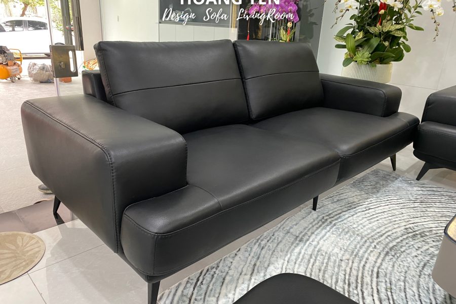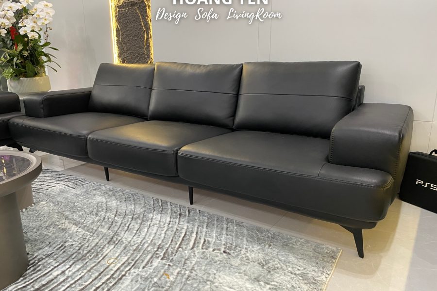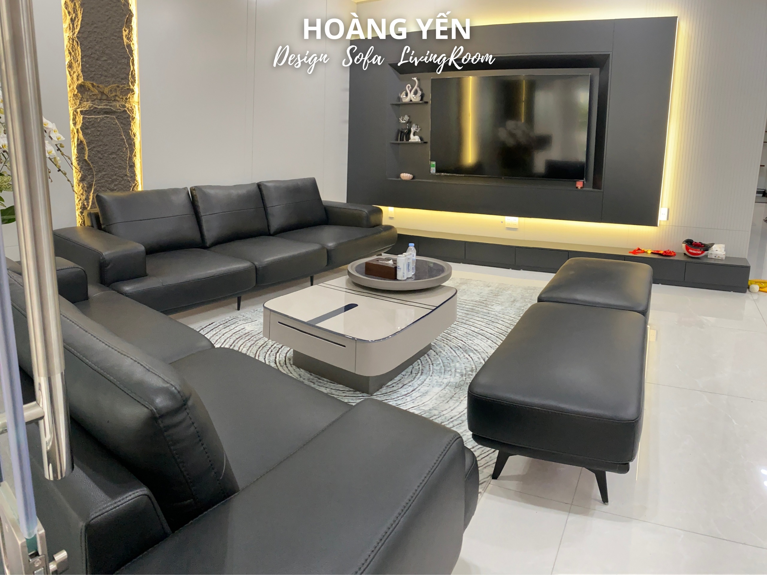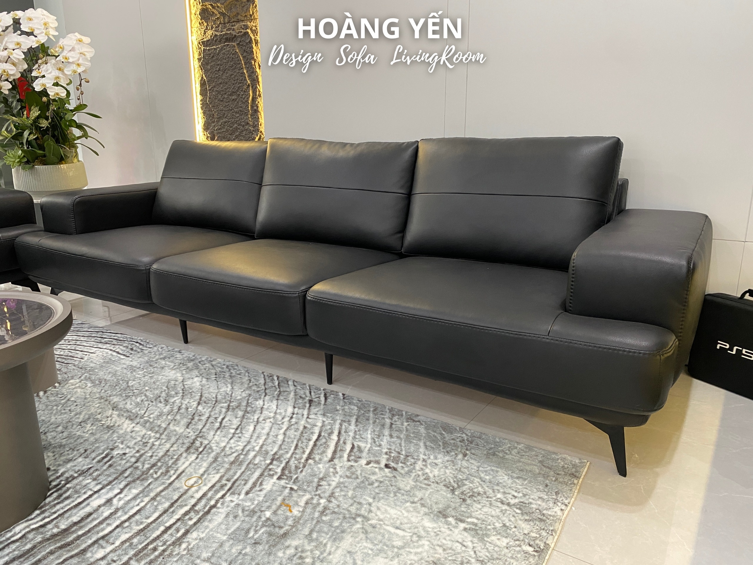 Sofa da phòng khách SHY419 màu ghi đen là điểm nhấn thị giác chính trong không gian.