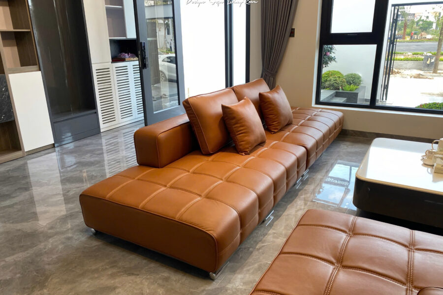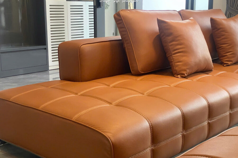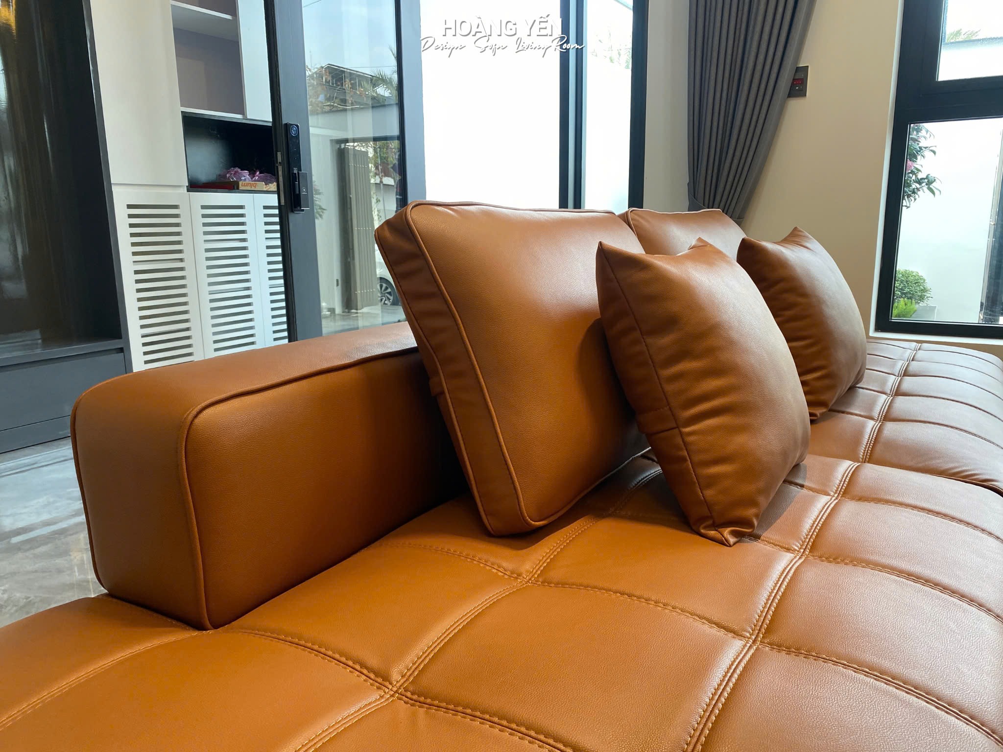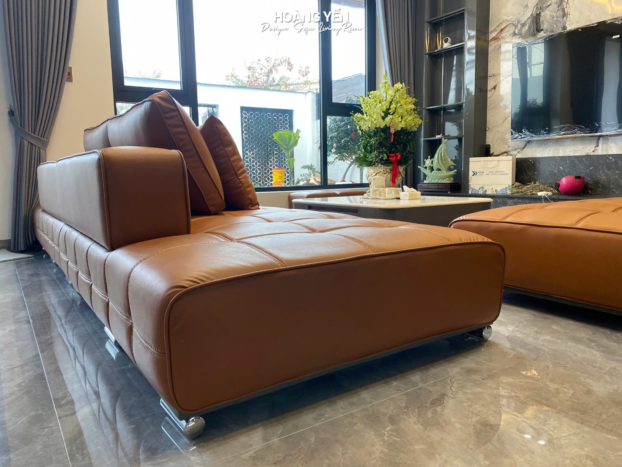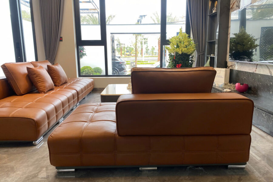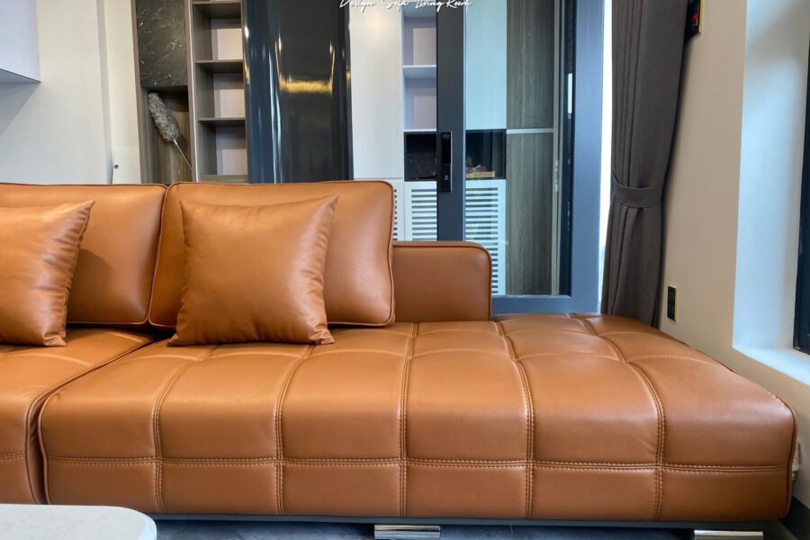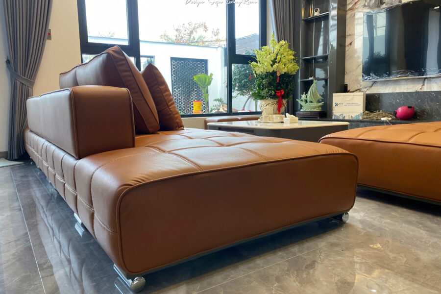 Sofa da nhấn mạnh vào trải nghiệm thoải mái của người dùng, đặc trưng trong thiết kế nội thất đương đại.