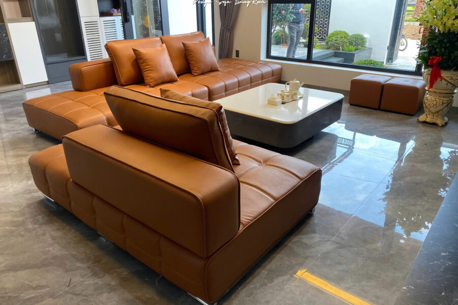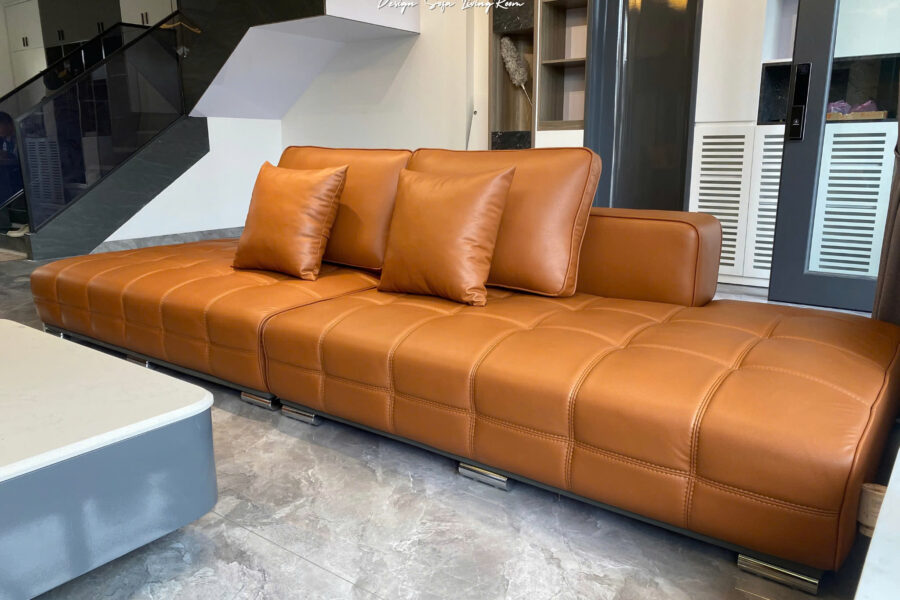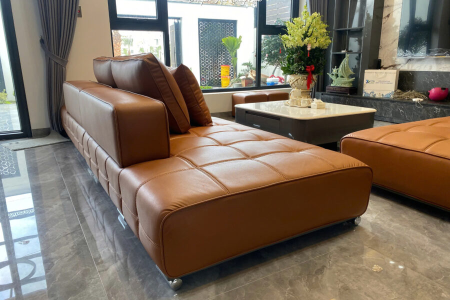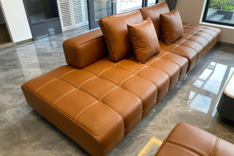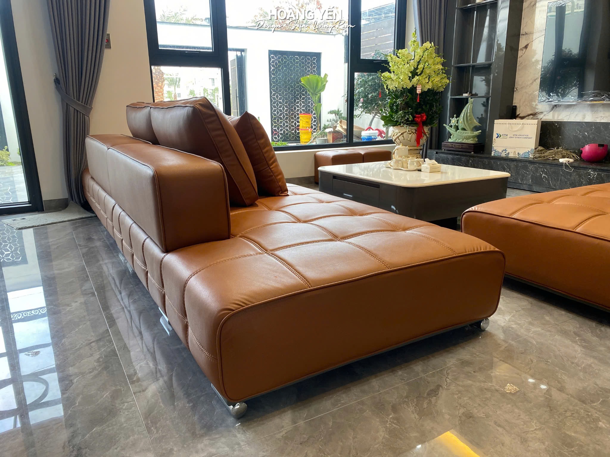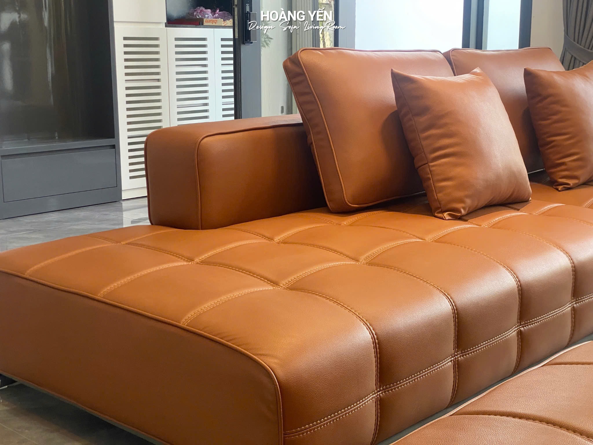 Sofa da nhấn mạnh vào trải nghiệm thoải mái của người dùng, đặc trưng trong thiết kế nội thất đương đại.