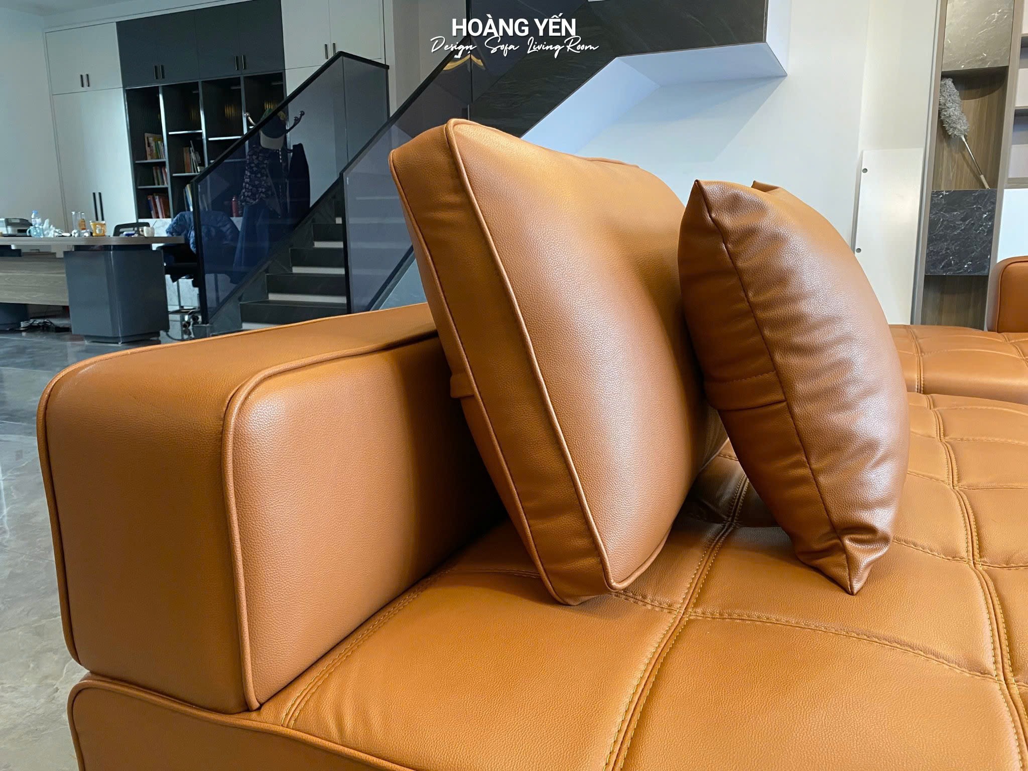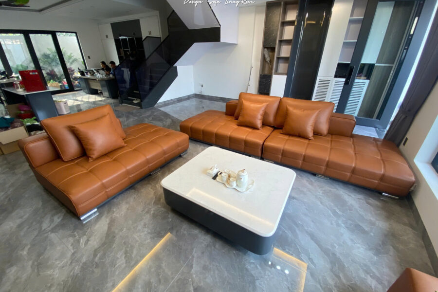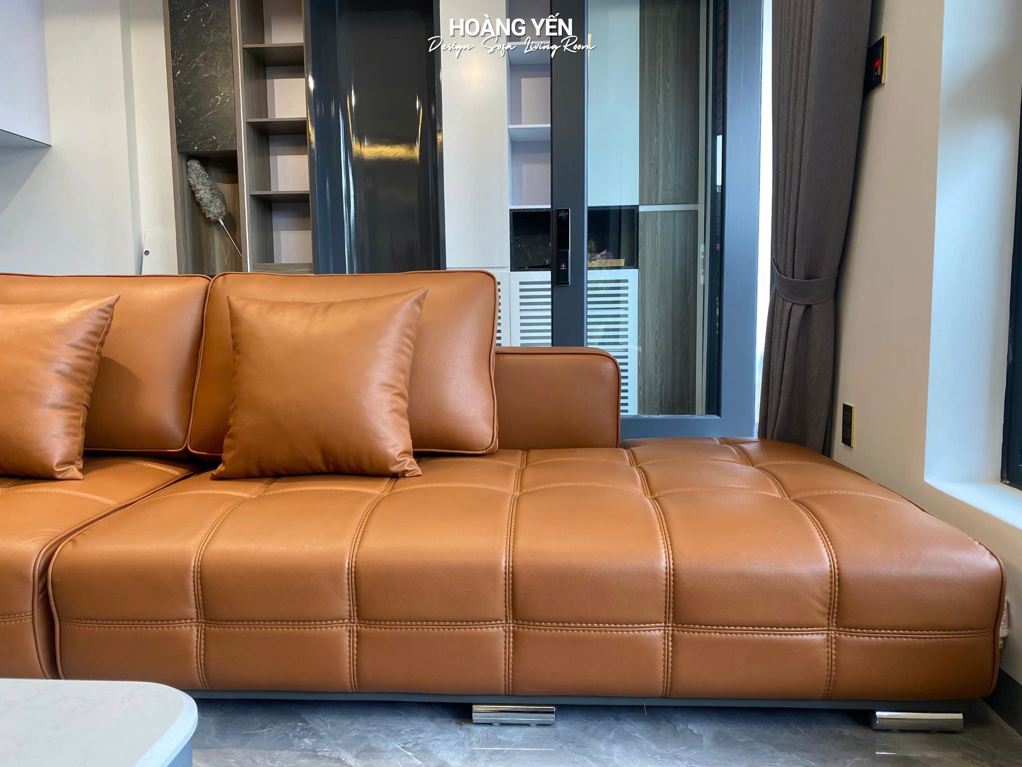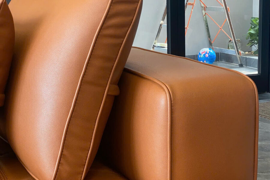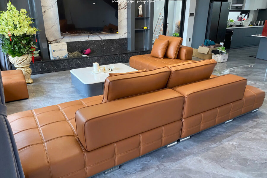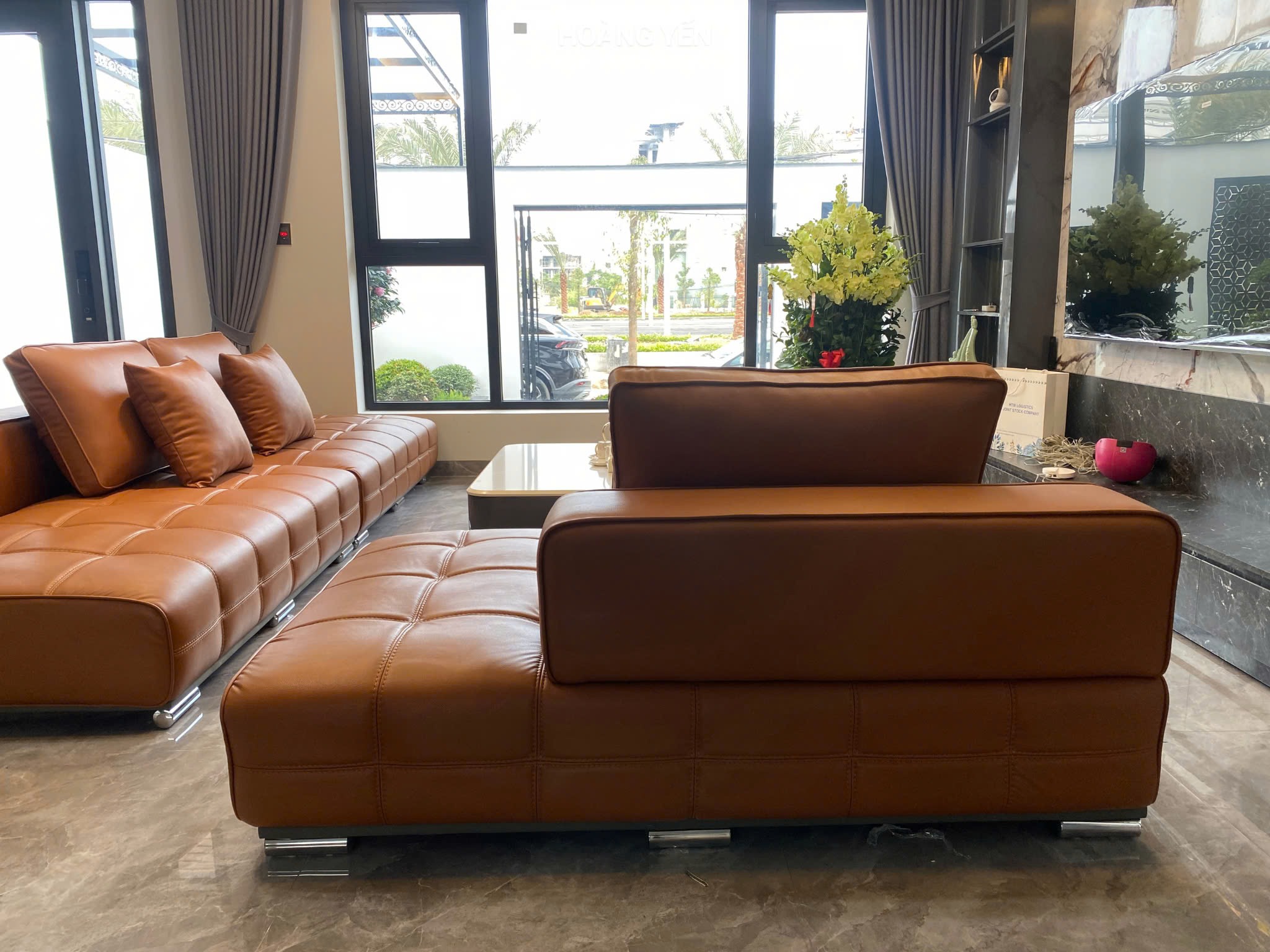 Sofa da nhấn mạnh vào trải nghiệm thoải mái của người dùng, đặc trưng trong thiết kế nội thất đương đại.