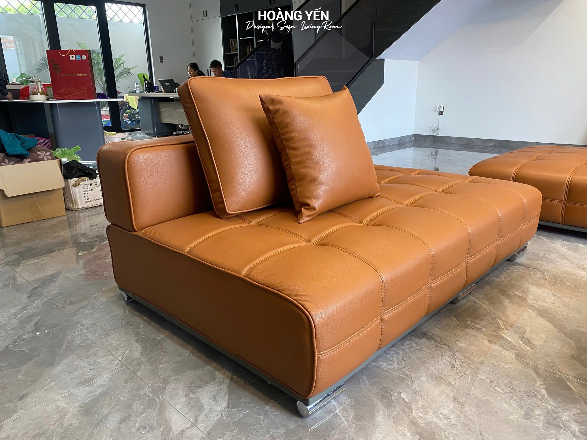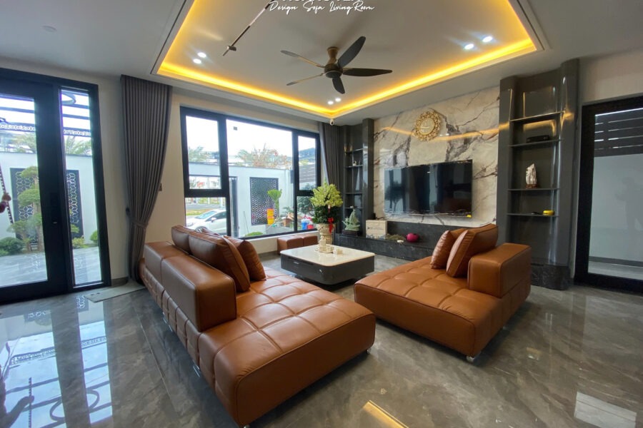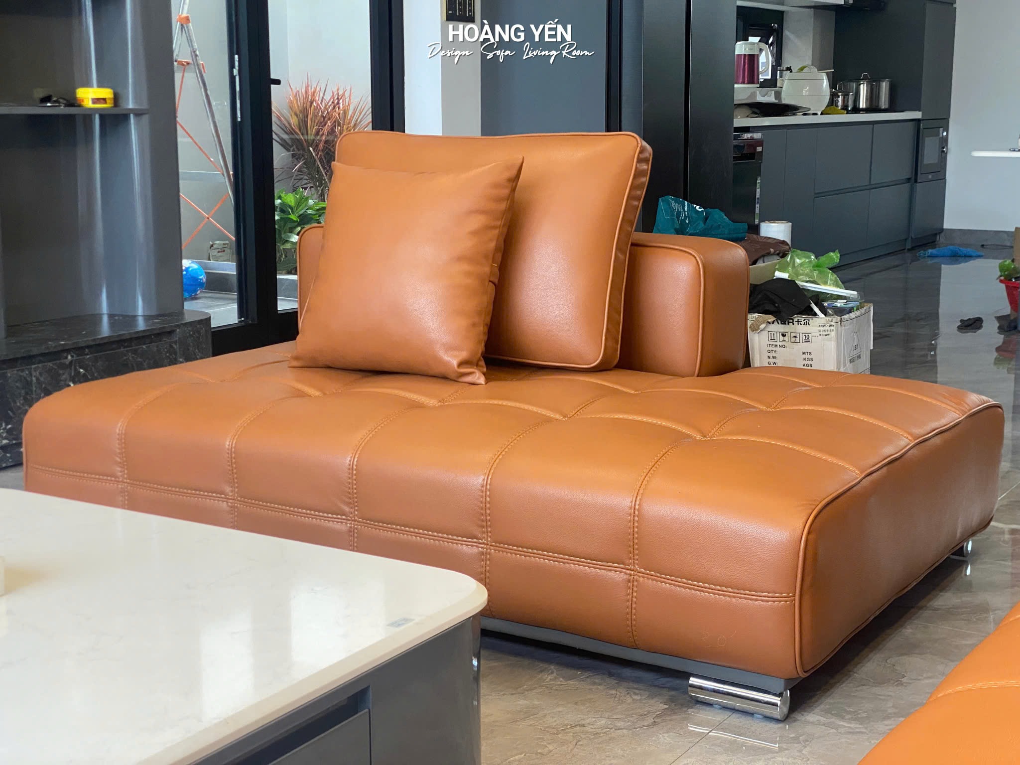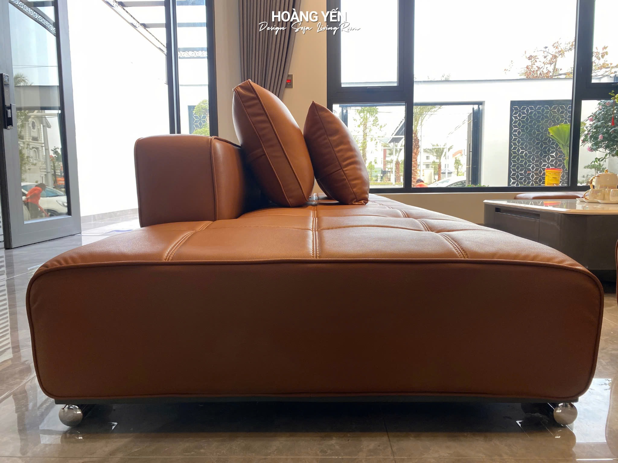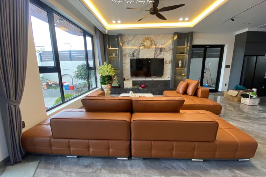 Sofa da nhấn mạnh vào trải nghiệm thoải mái của người dùng, đặc trưng trong thiết kế nội thất đương đại.