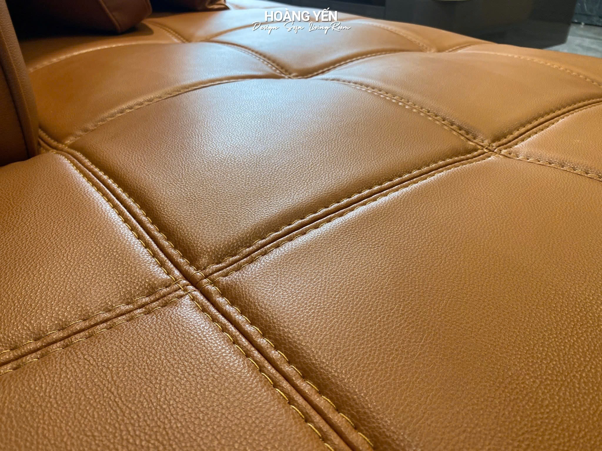 Sofa sau có mặt ngồi rộng rãi, các đường may vuông tinh tế, mang cảm giác chắc chắn, tỉ mỉ và có chiều sâu thẩm mỹ.