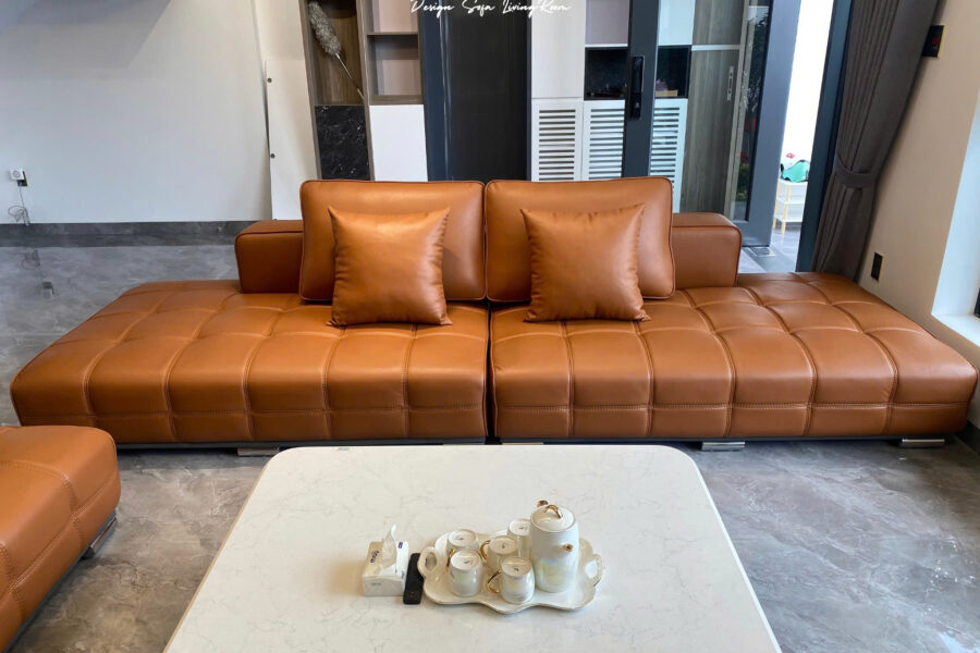 Sofa da đẹp này mang lại không gian sống cao cấp, sang trọng nhưng vẫn ưu tiên sự tối giản và tiện nghi.