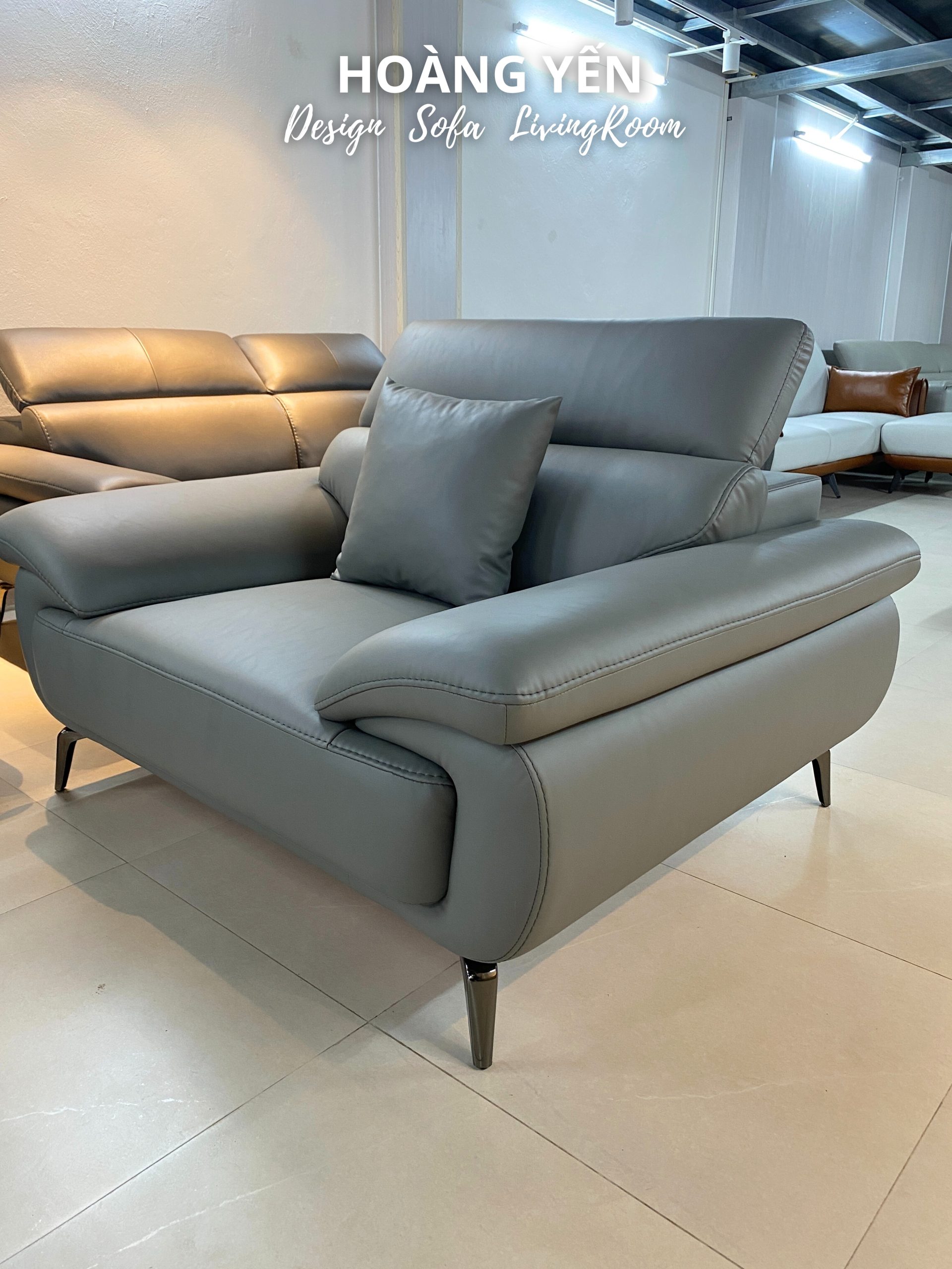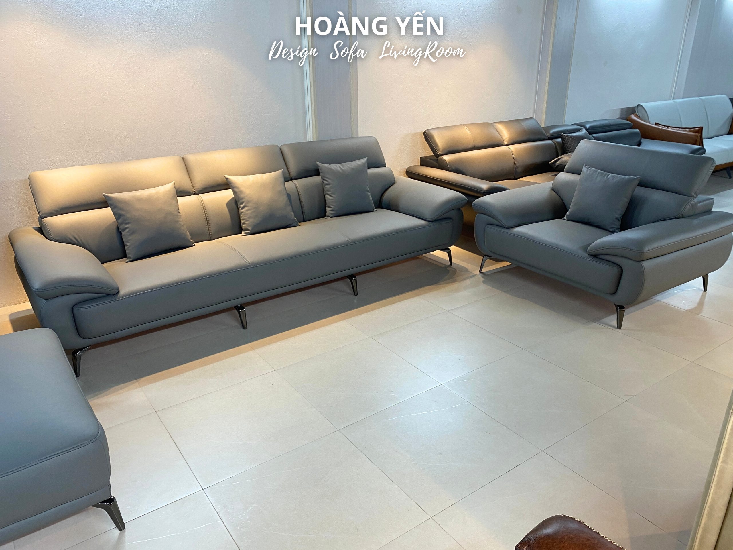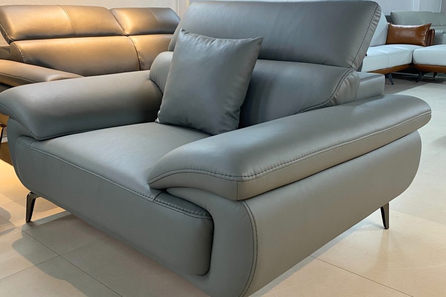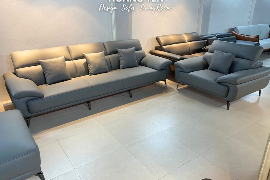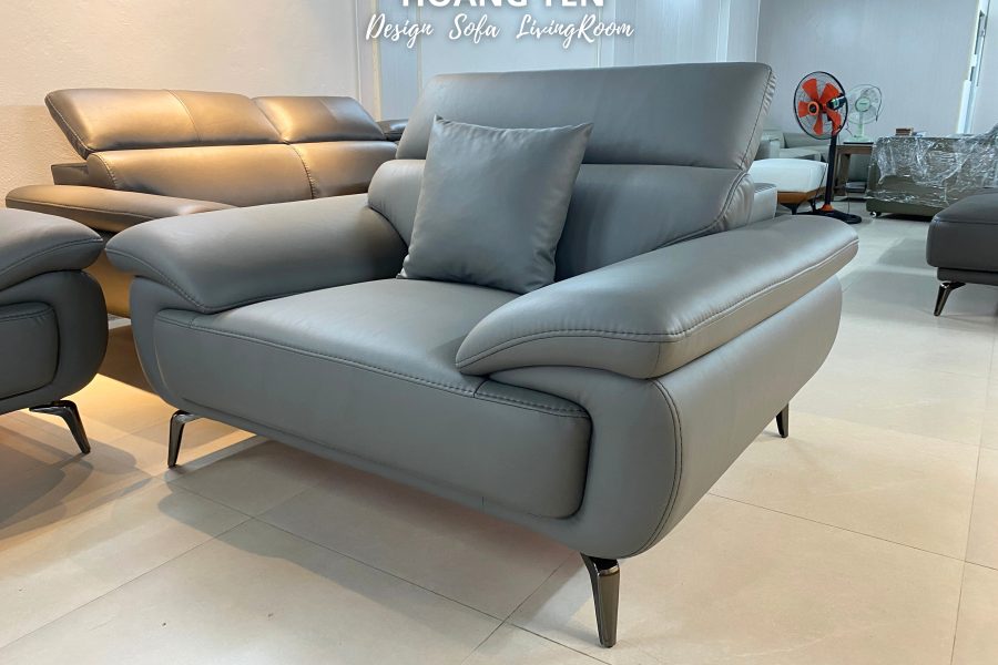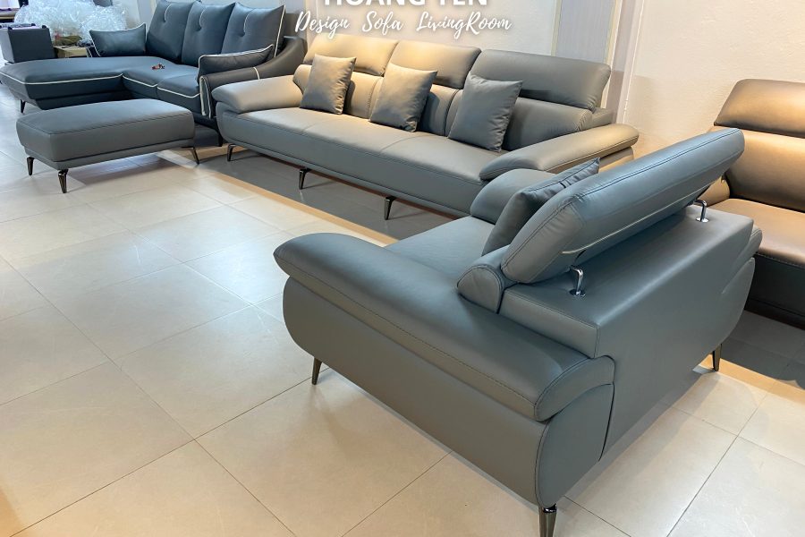 – Phong cách sofa da phòng khách SHY434 màu ghi đậm: