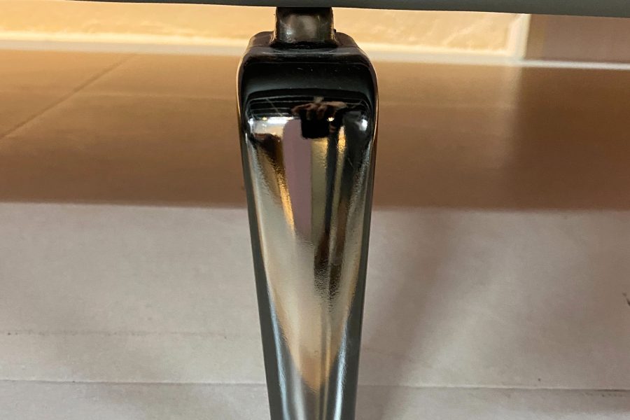 Chân ghế cao giúp thoáng gầm, hỗ trợ vệ sinh bằng robot hoặc chổi tiện lợi.