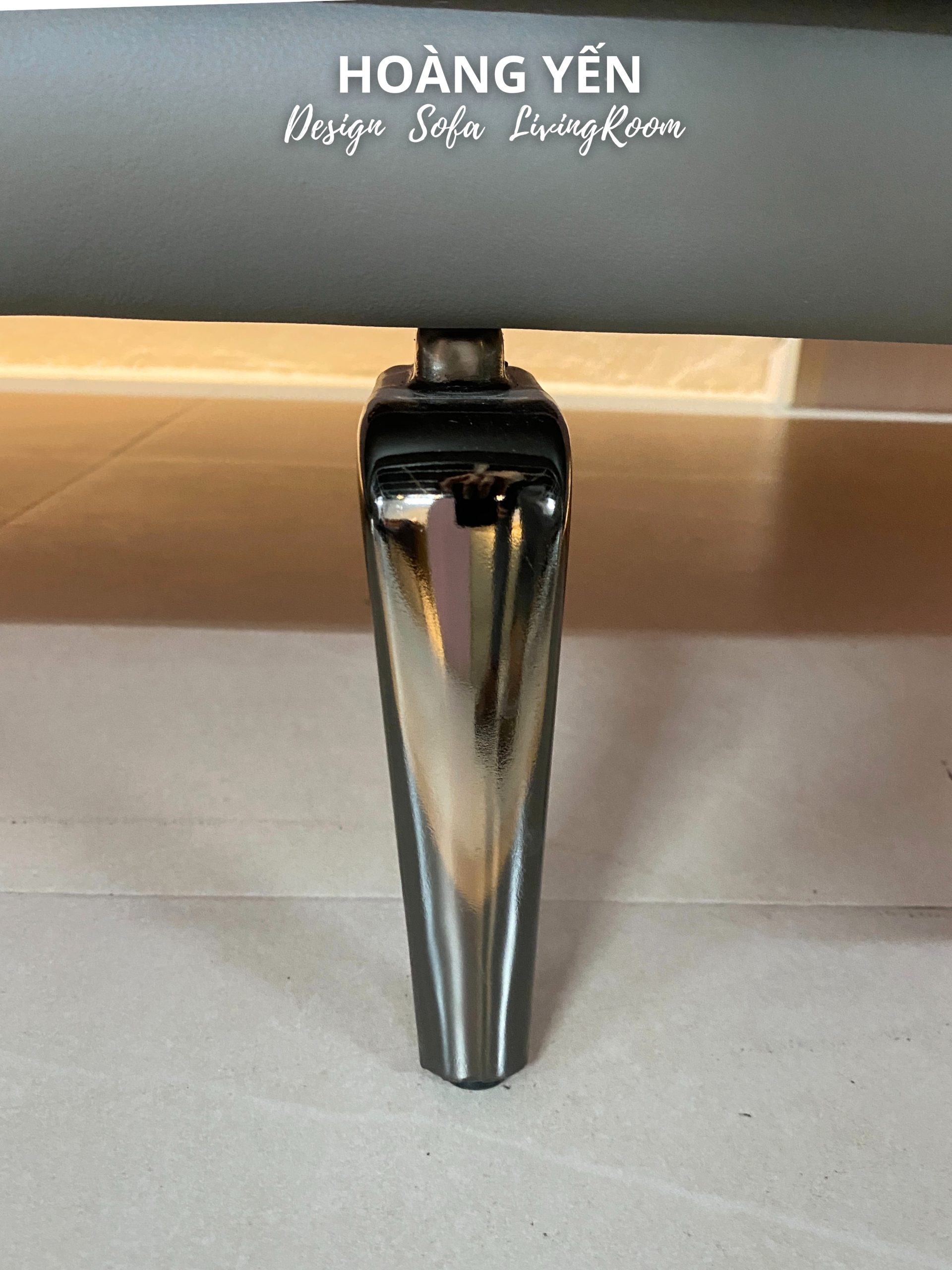 Chân sofa được làm từ chịu lực cực tốt, với tone tối sang, cân bằng với tông ghi của da.