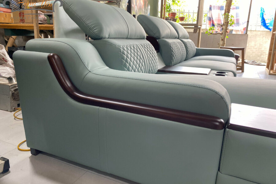 – Cách chế tạo mẫu ghế sofa màu xanh nhạt: