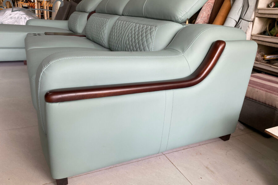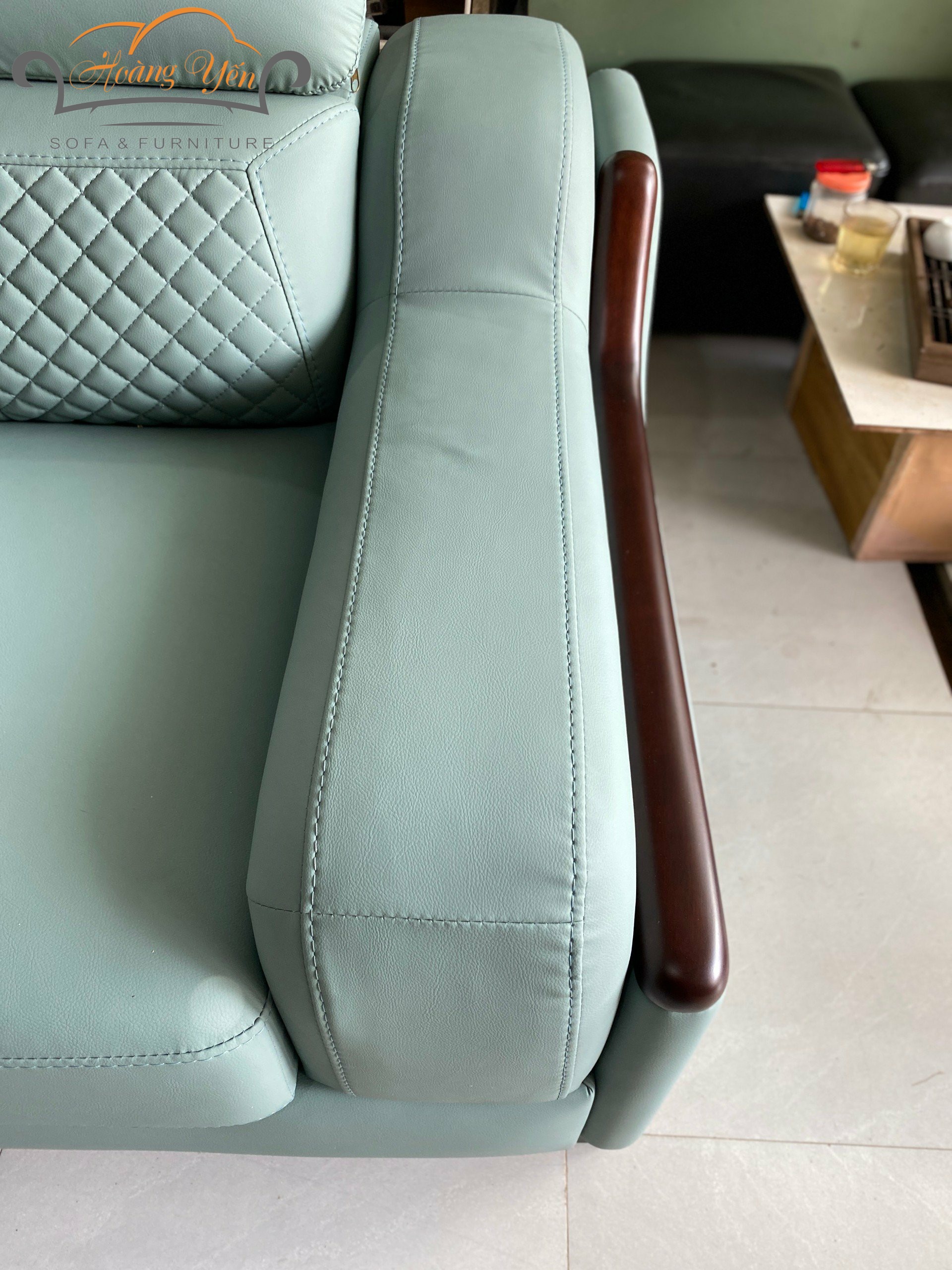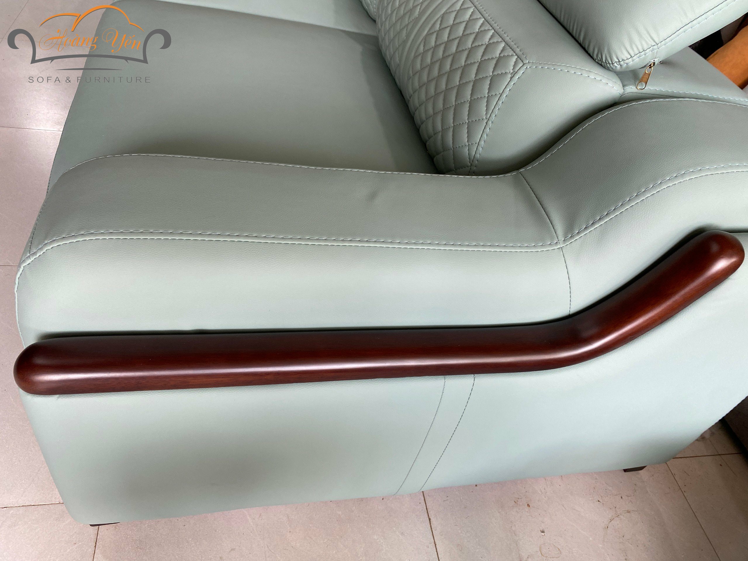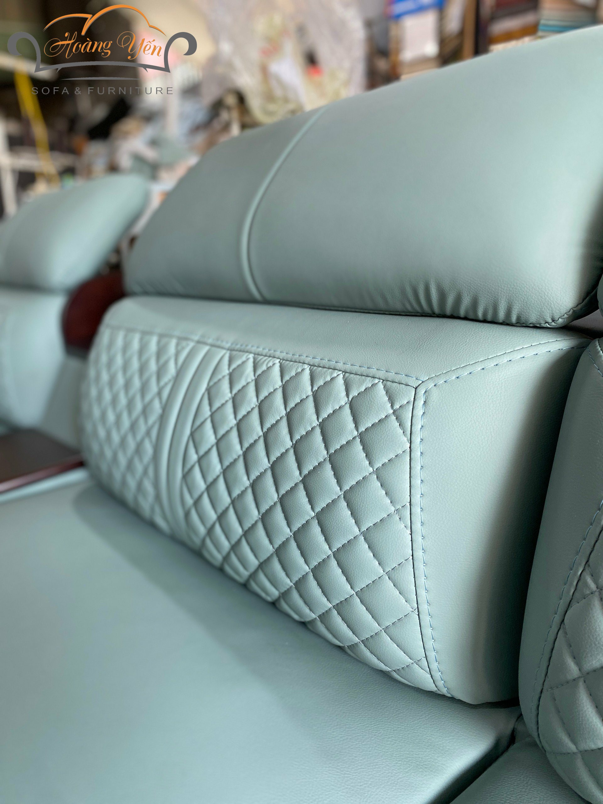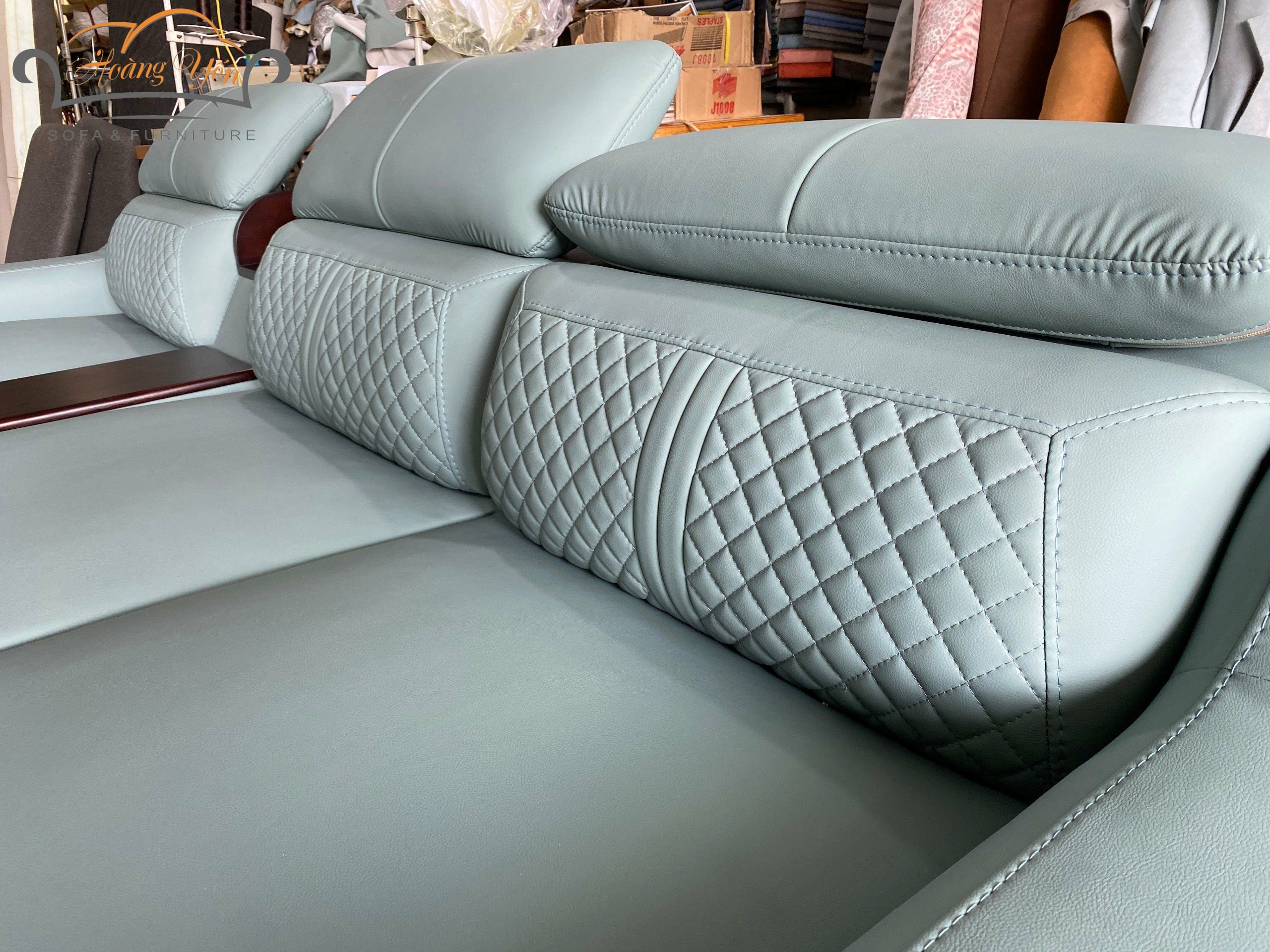 – Chất liệu da của sofa góc SHY369 màu xanh: