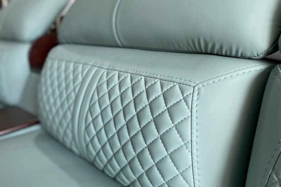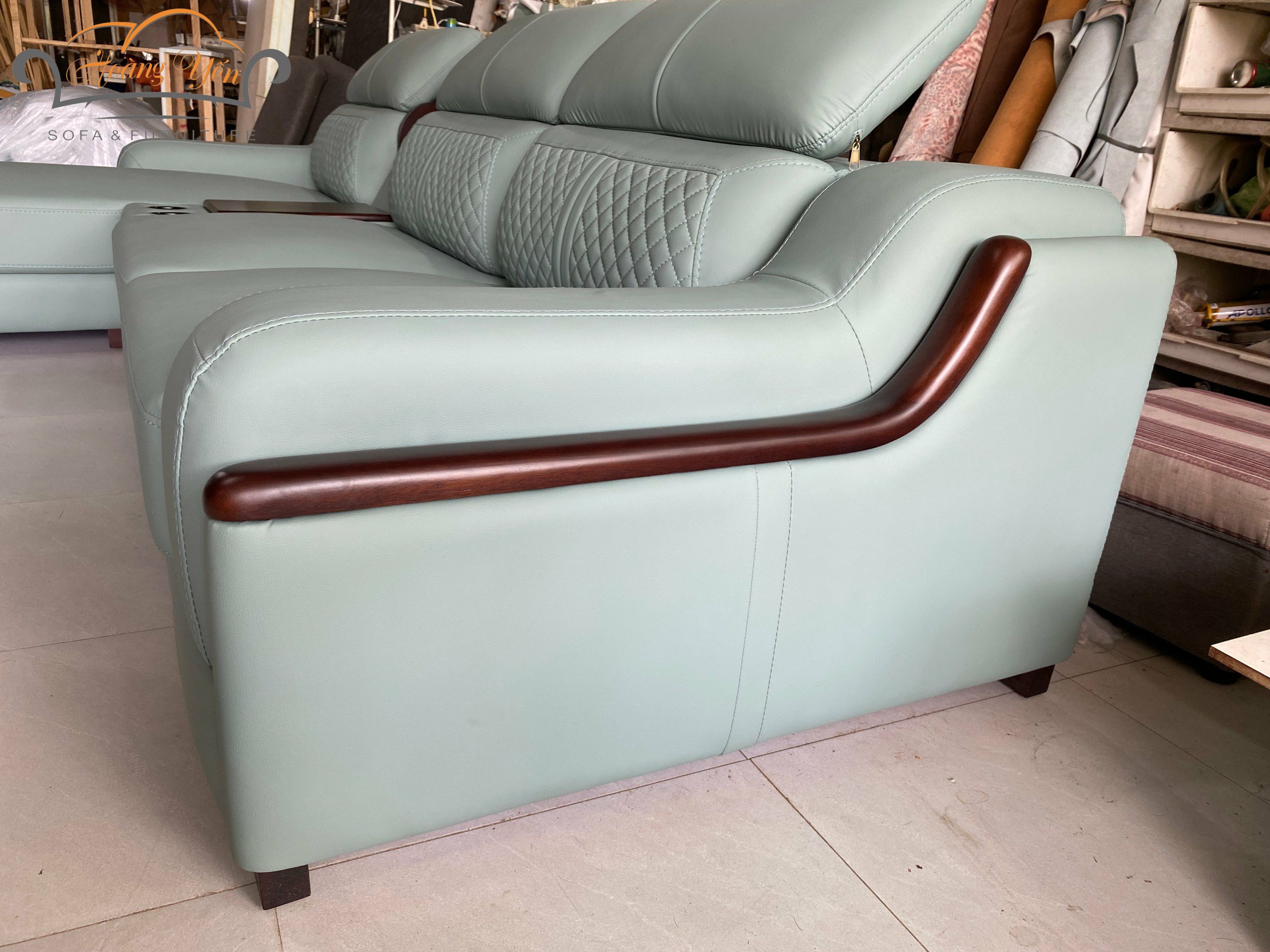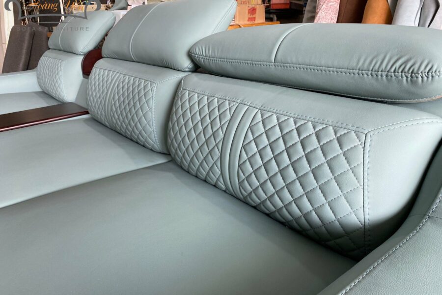 Sofa da góc L SHY369 có màu xanh nhạt, là tông màu sáng, giúp phòng khách trở nên sáng sủa và rộng rãi hơn, cũng chính tông màu xanh này giúp bộ ghế sang nhưng không già dặn.
