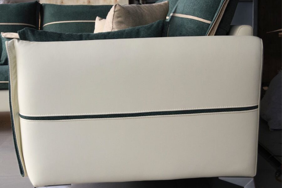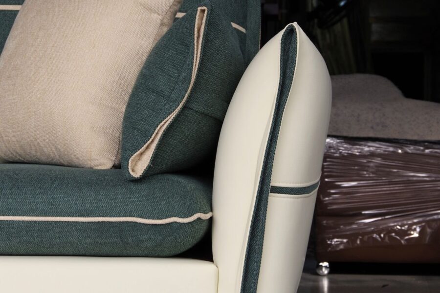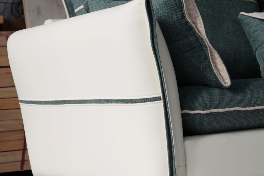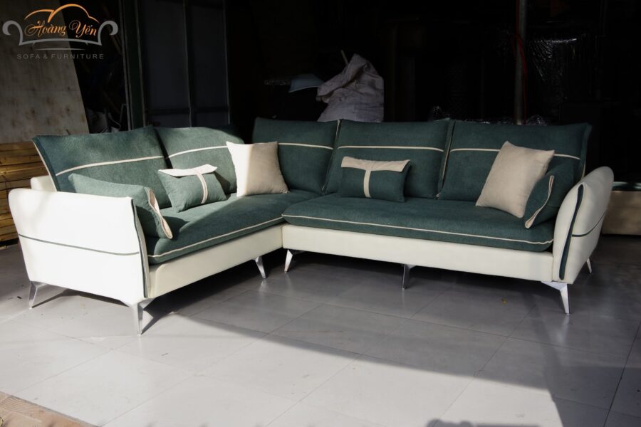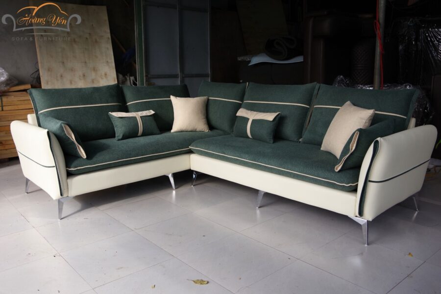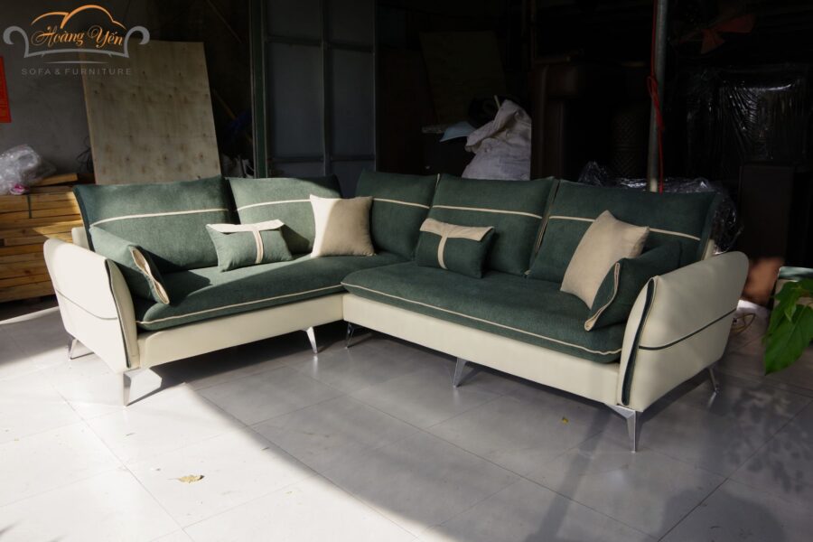 Bộ sofa phối màu xanh rêu – kem vừa thanh lịch, vừa gần gũi thiên nhiên.