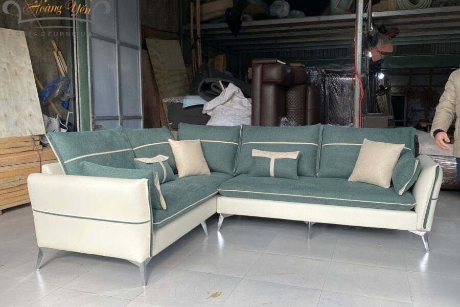 Bộ sofa nỉ HY337 với kích thước 2 văng dài kín tựa 2.6m và 2.1m, có giá 20.900.000.