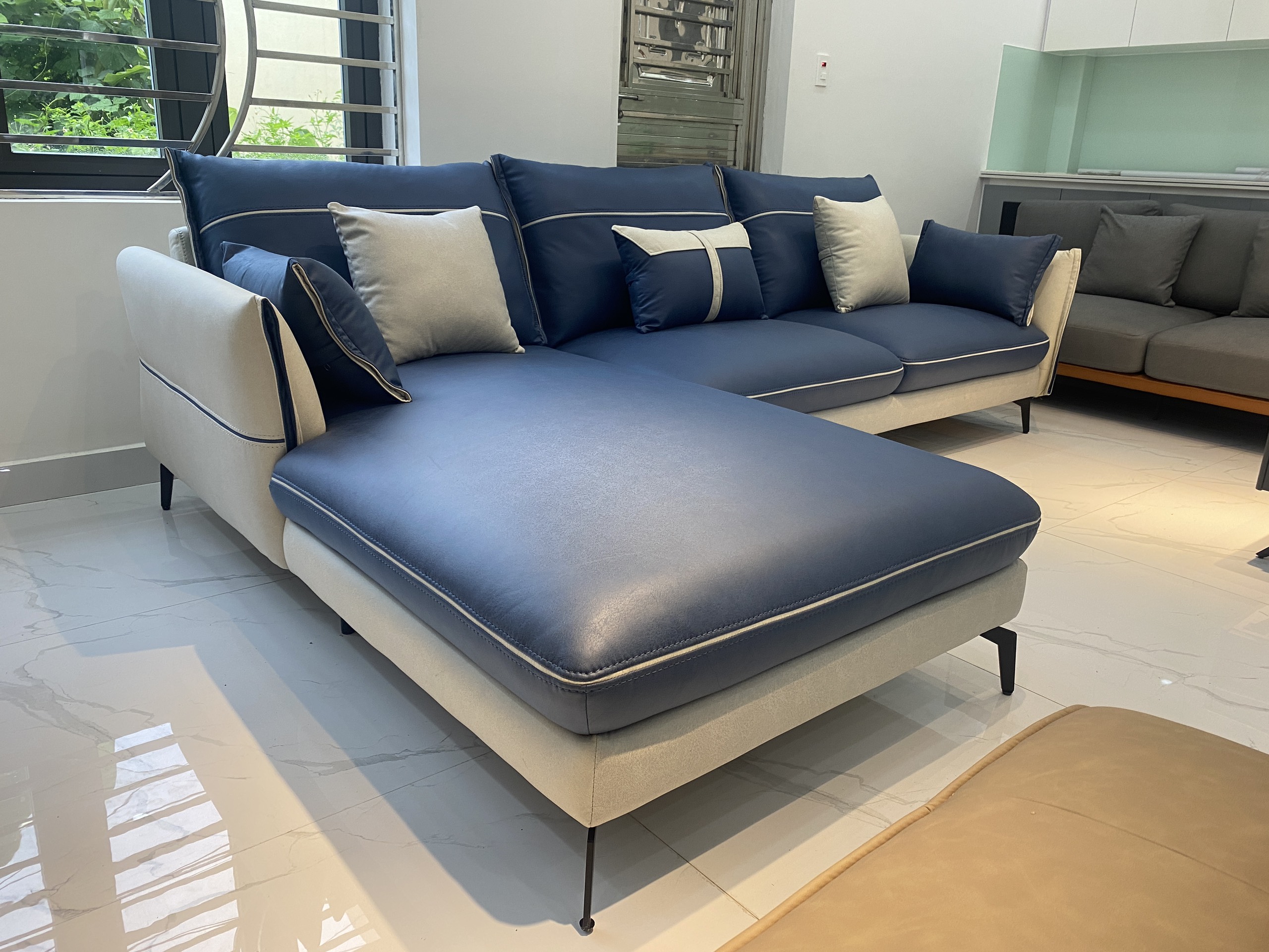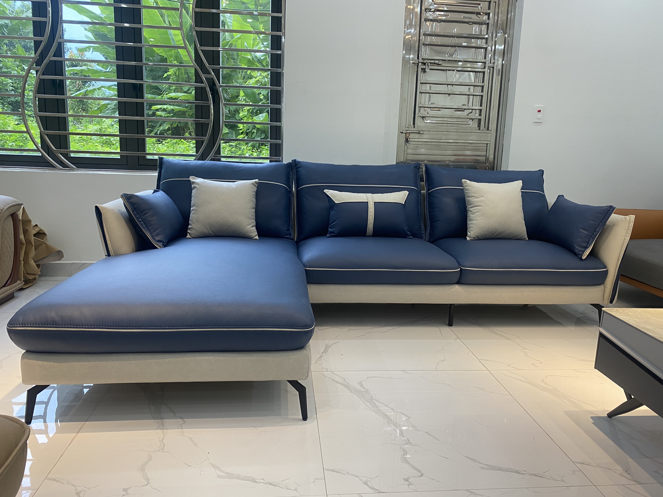 Sự kết hợp giữa màu xanh dương đậm ở phần đệm ngồi và màu be nhạt ở phần khung tạo nên sự hài hòa và hiện đại, phù hợp với nhiều không gian sống.