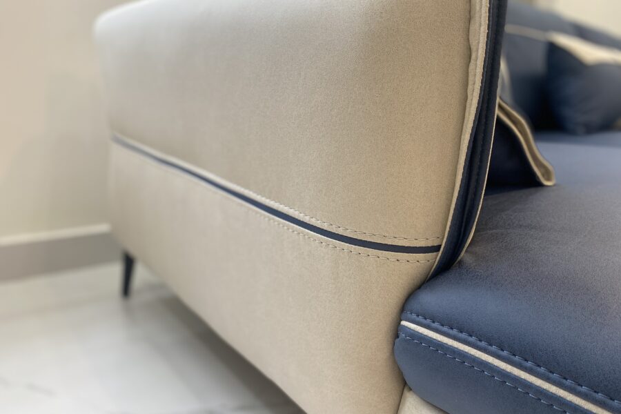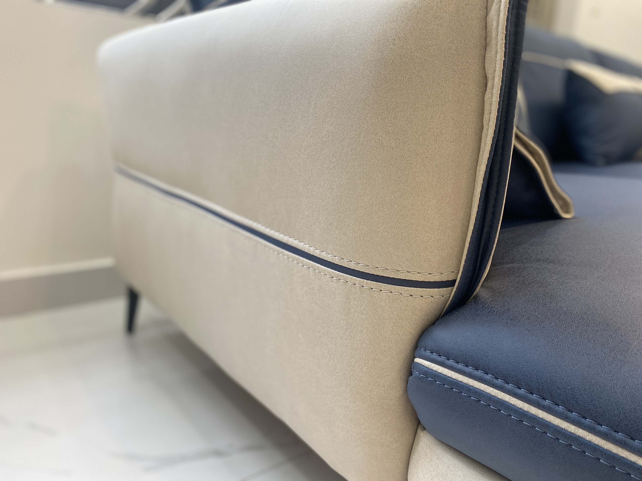 Viền chỉ trắng tinh tế, làm nổi bật các đường nét thiết kế của sofa, đồng thời tạo chiều sâu và sự gọn gàng.