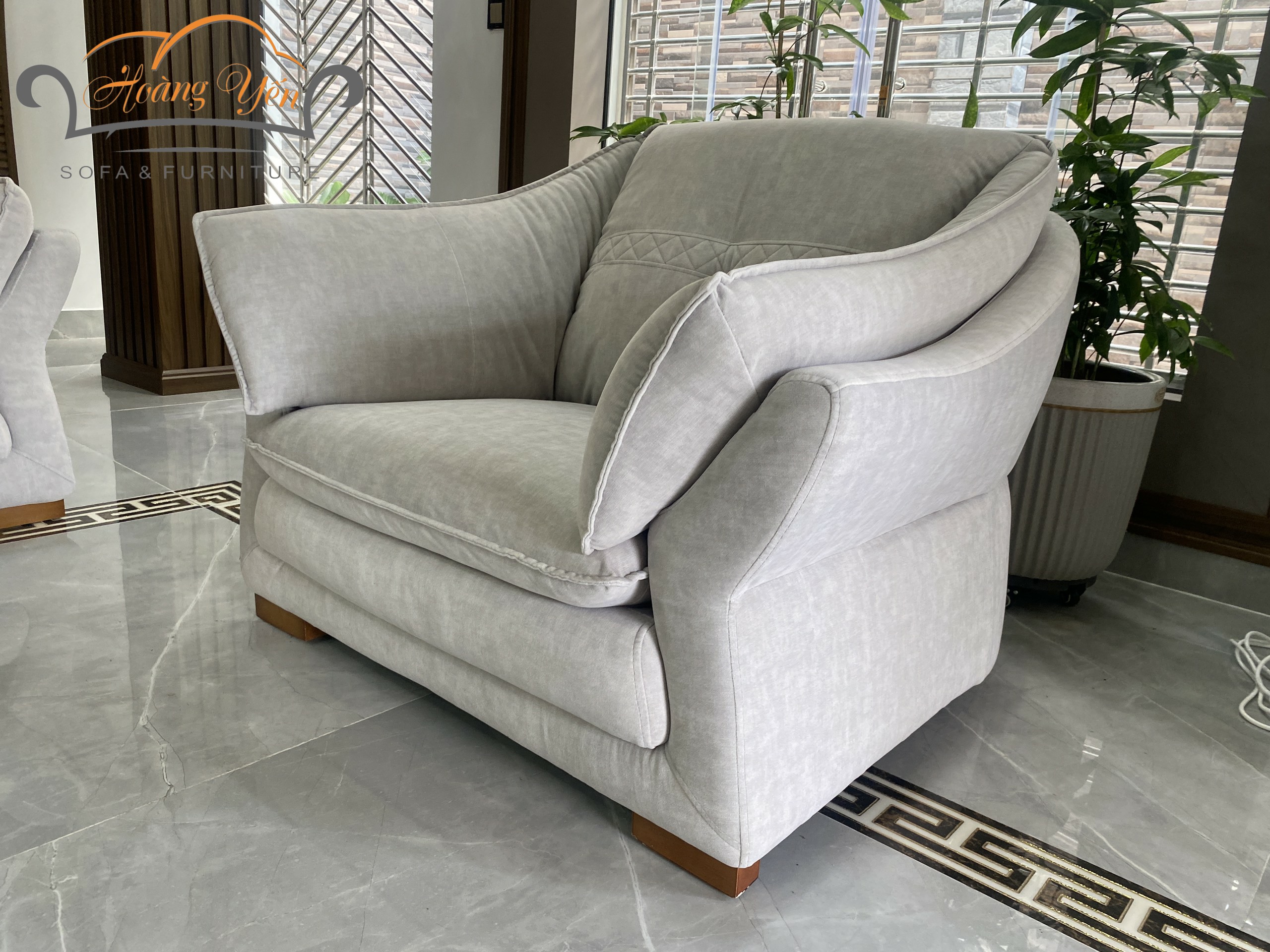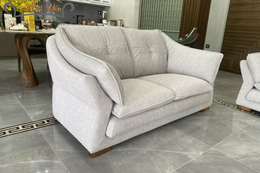 Sofa phòng khách này có thiết kế gọn gàng, mềm mại và sang trọng, với những đường nét bo cong nhẹ nhàng.