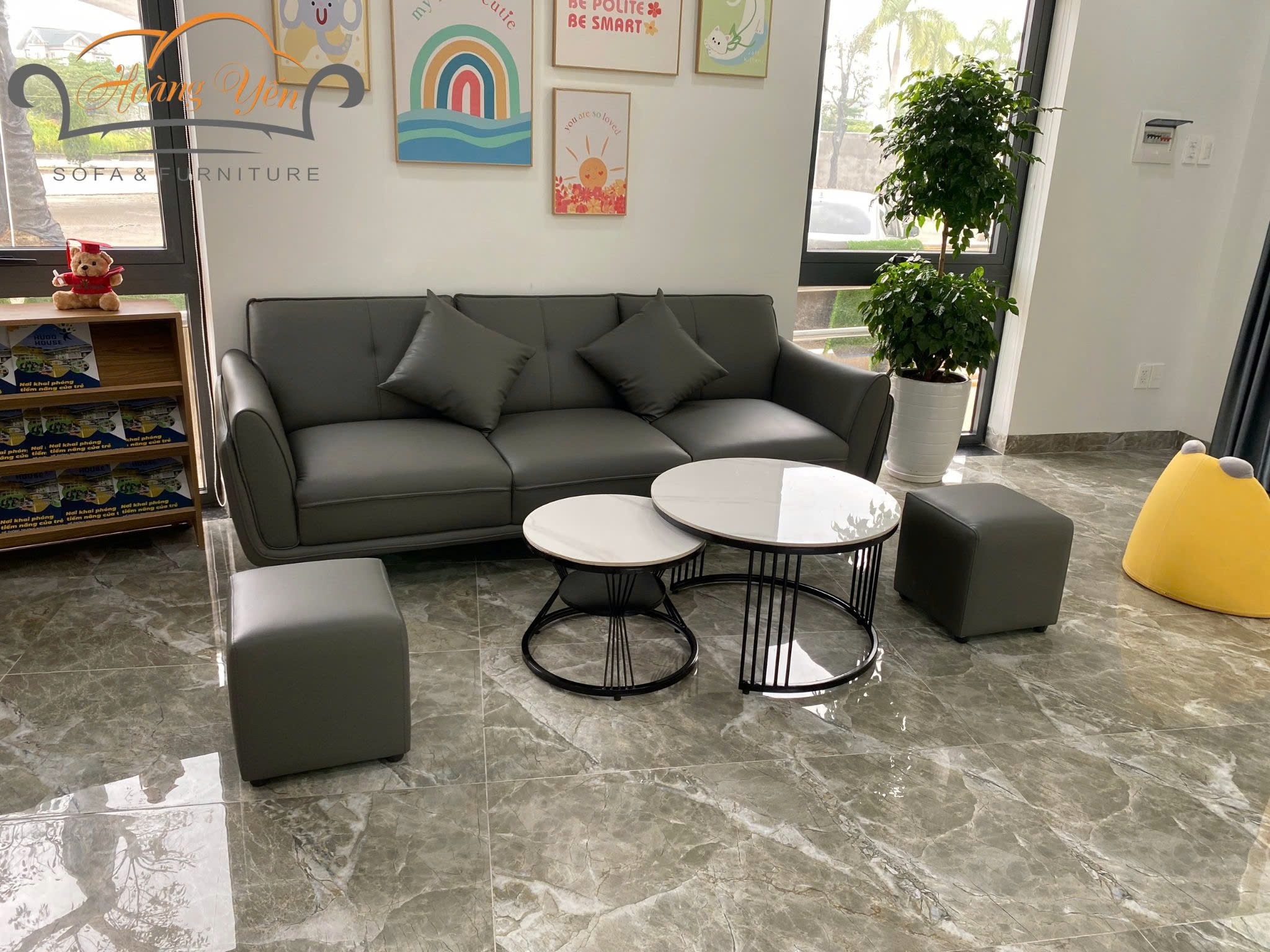 1. Kiểu dáng sofa văng da SHY366 ghi đậm.