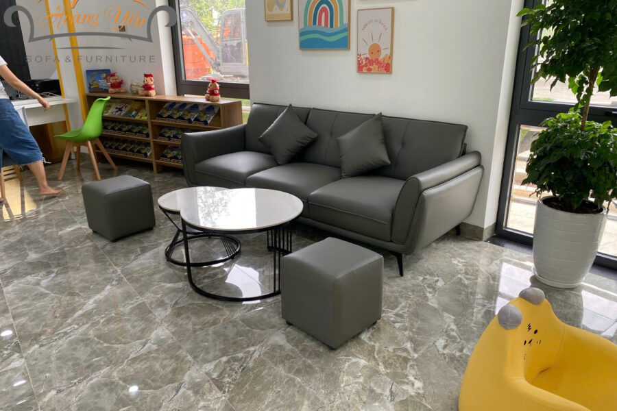 – Phong cách sofa văng da SHY366 ghi đậm: