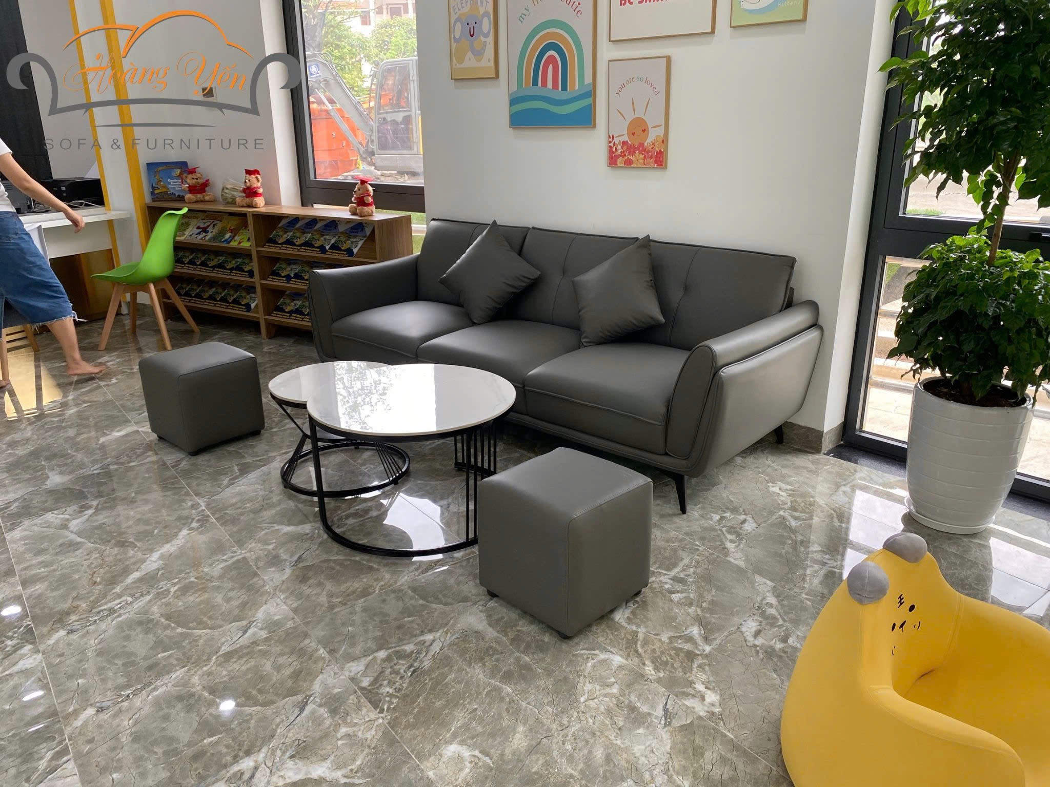 Bộ sofa văng SHY366 với kích thước 2.3m bao gồm 2 đôn nhỏ, được làm bằng dòng da 2 HC có giá là 10.400.000 quá hời.