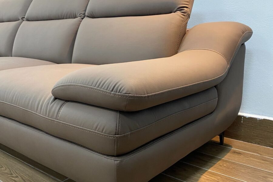 Mẫu sofa này được làm bằng da HC cao cấp 2 lớp có bề mặt trơn bóng, mềm mại, chịu được mài mòn và dễ vệ sinh.