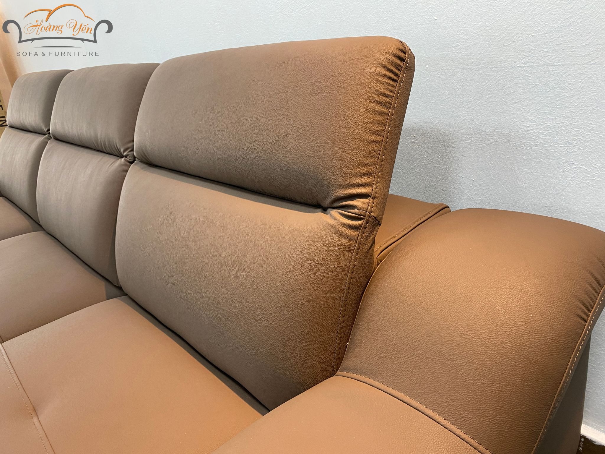 Mẫu sofa này được làm bằng da HC cao cấp 2 lớp có bề mặt trơn bóng, mềm mại, chịu được mài mòn và dễ vệ sinh.