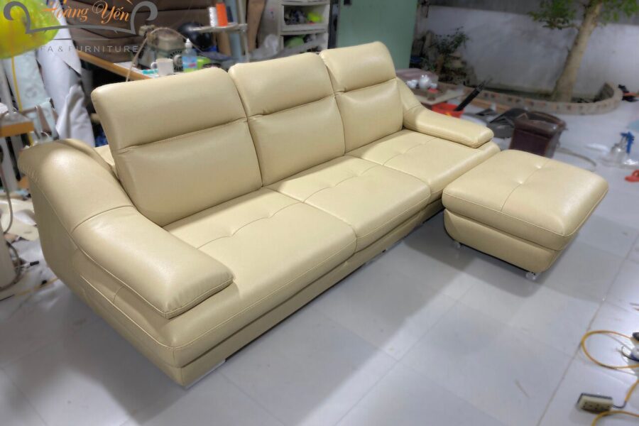 Mẫu sofa này được làm bằng da HC 2 lớp có bề mặt vân sần nhẹ, mềm mại, chịu được mài mòn và dễ vệ sinh.