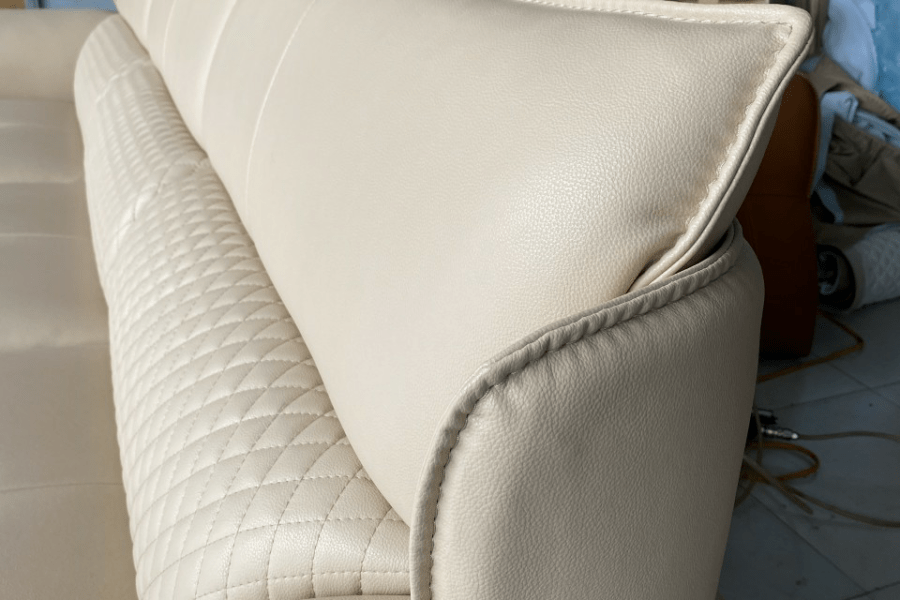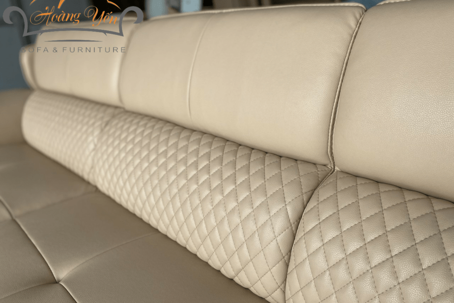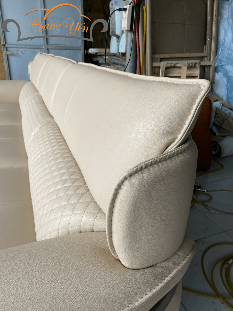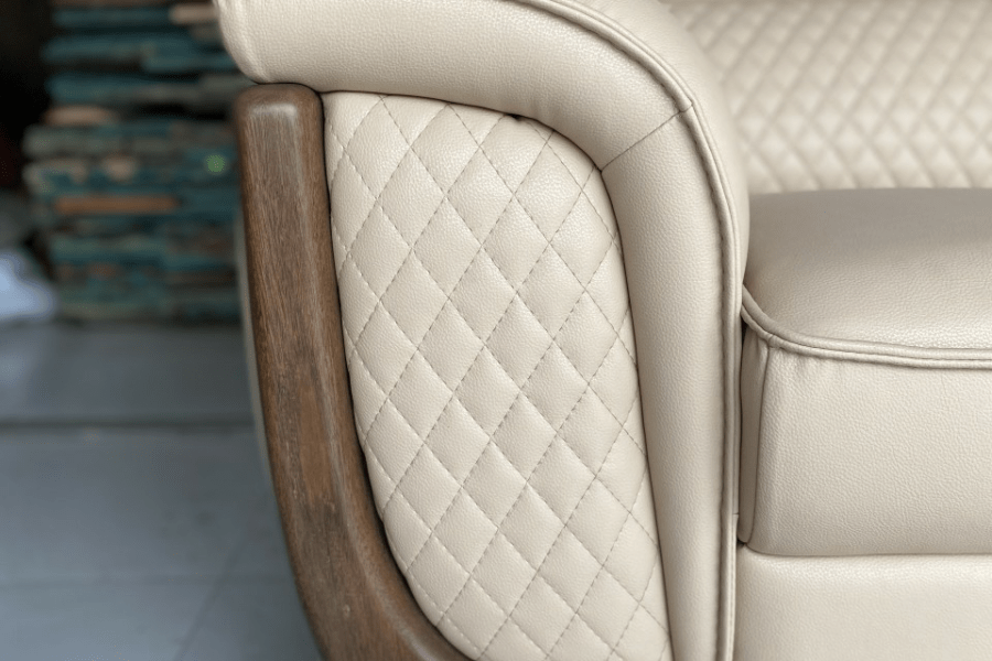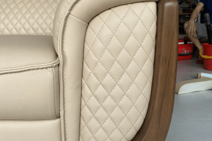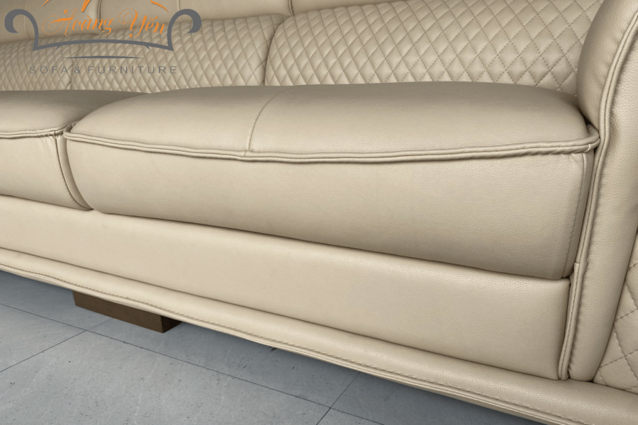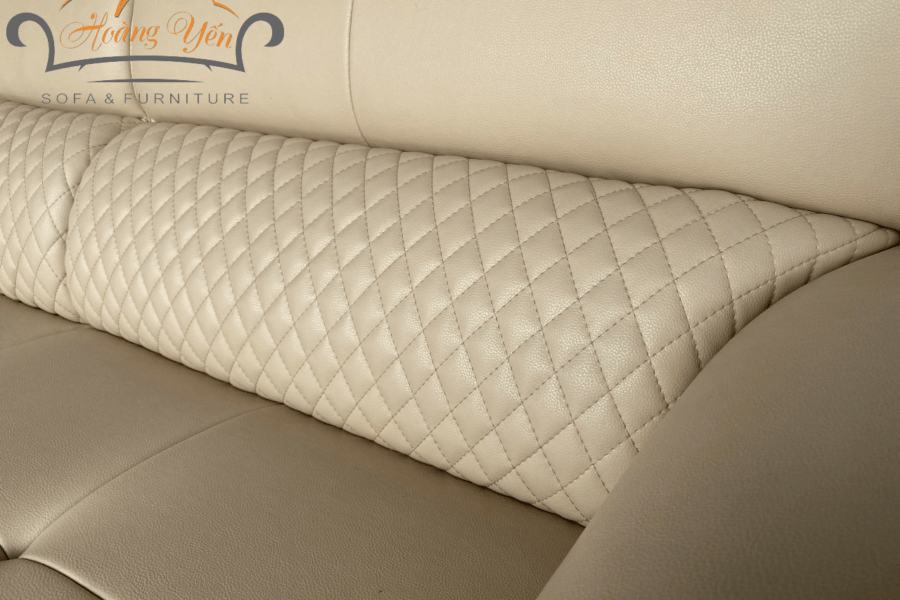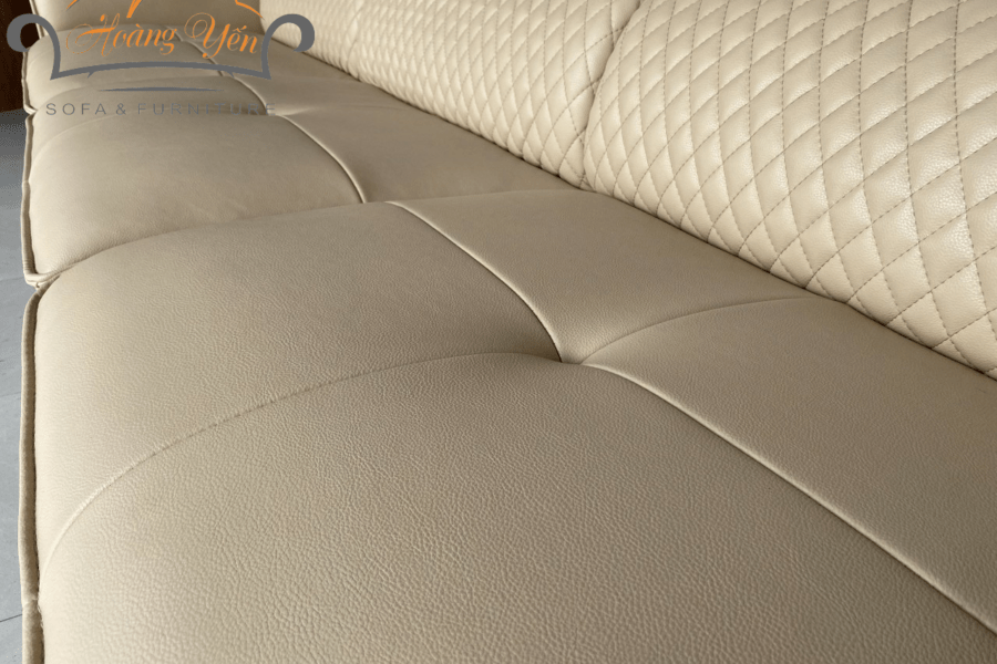 Đệm ghế văng da SHY336 phồng nhẹ, có rút núm chia ô vô cùng thẩm mỹ.