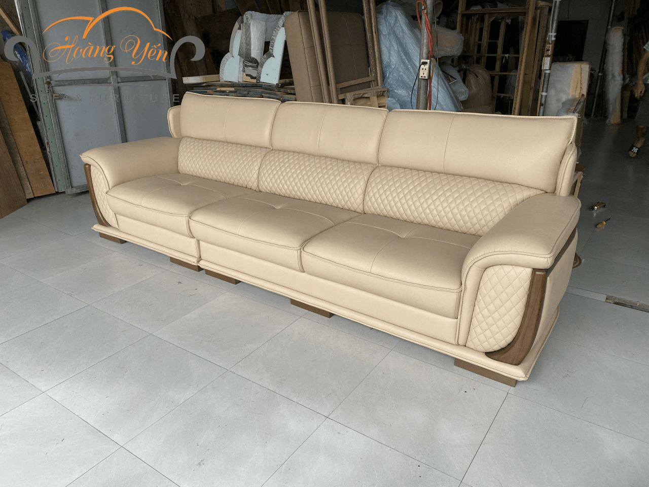 Ghế văng da SHY336 có kích thước văng dài 3m kèm theo 2 đôn nhỏ dành cho phòng khách từ 15-20m2, và ngồi được 6-7 người thoải mái.